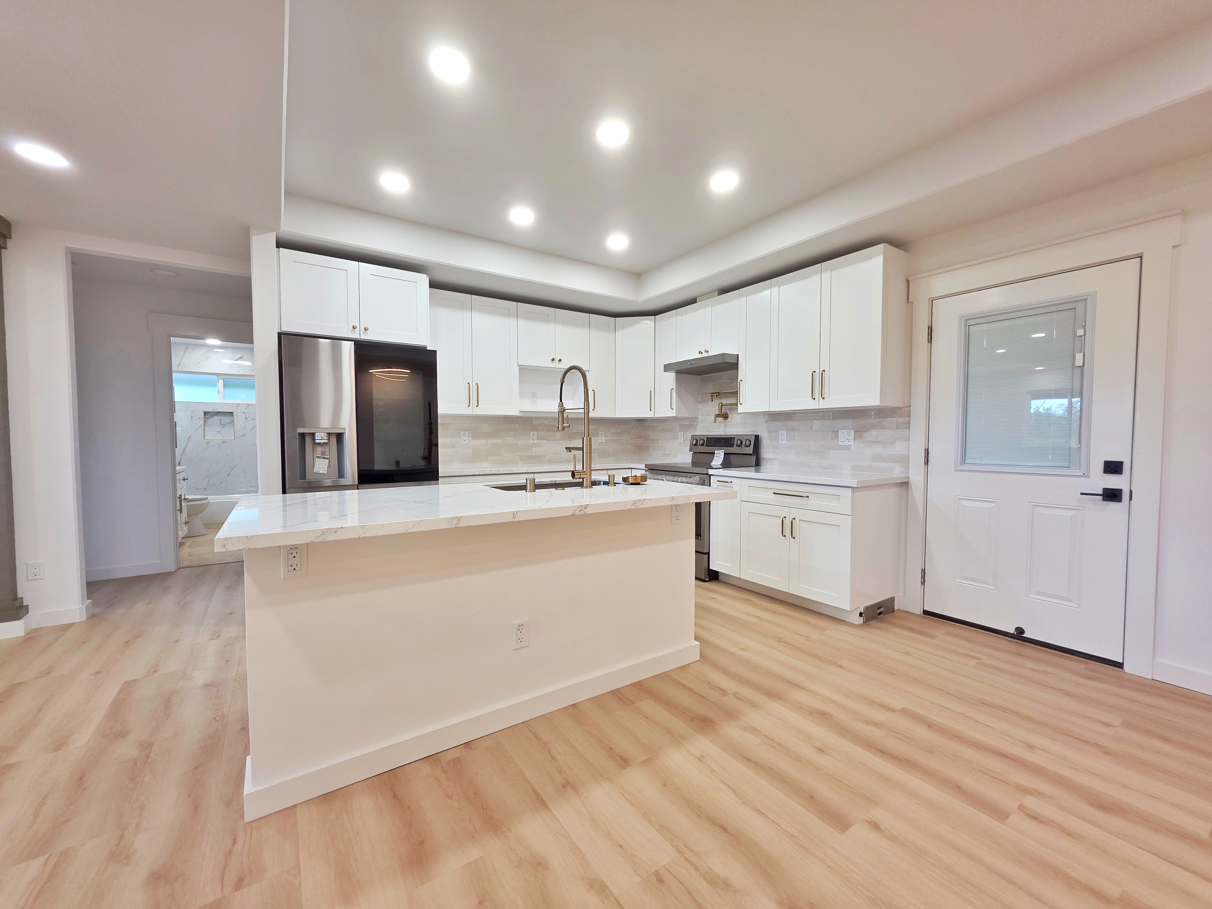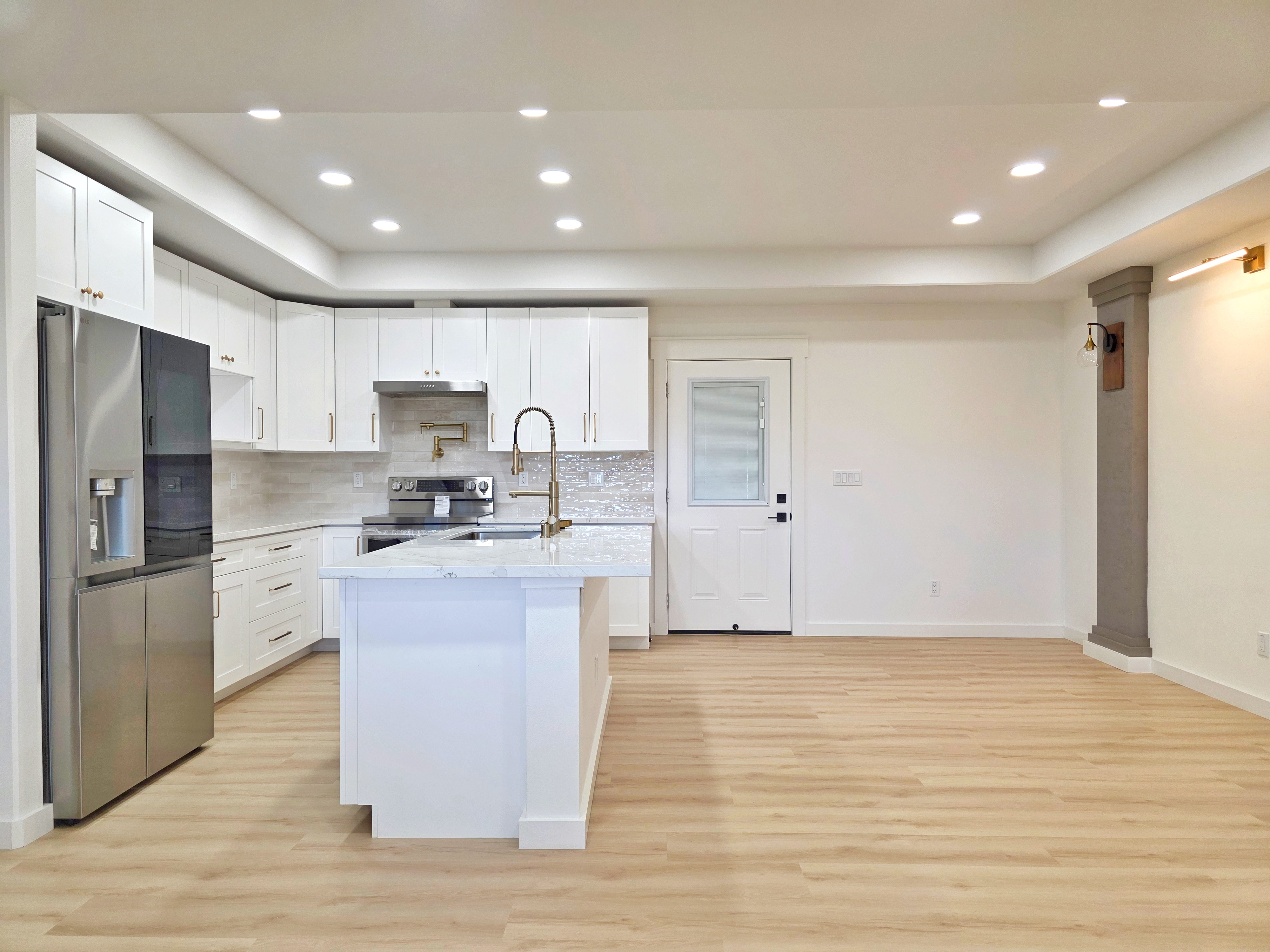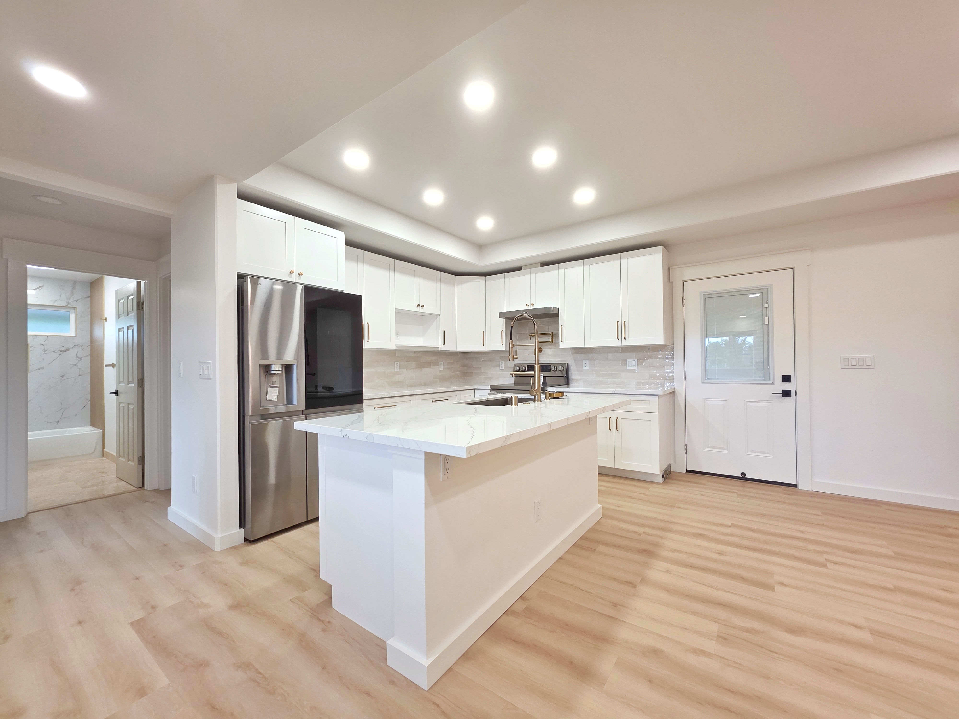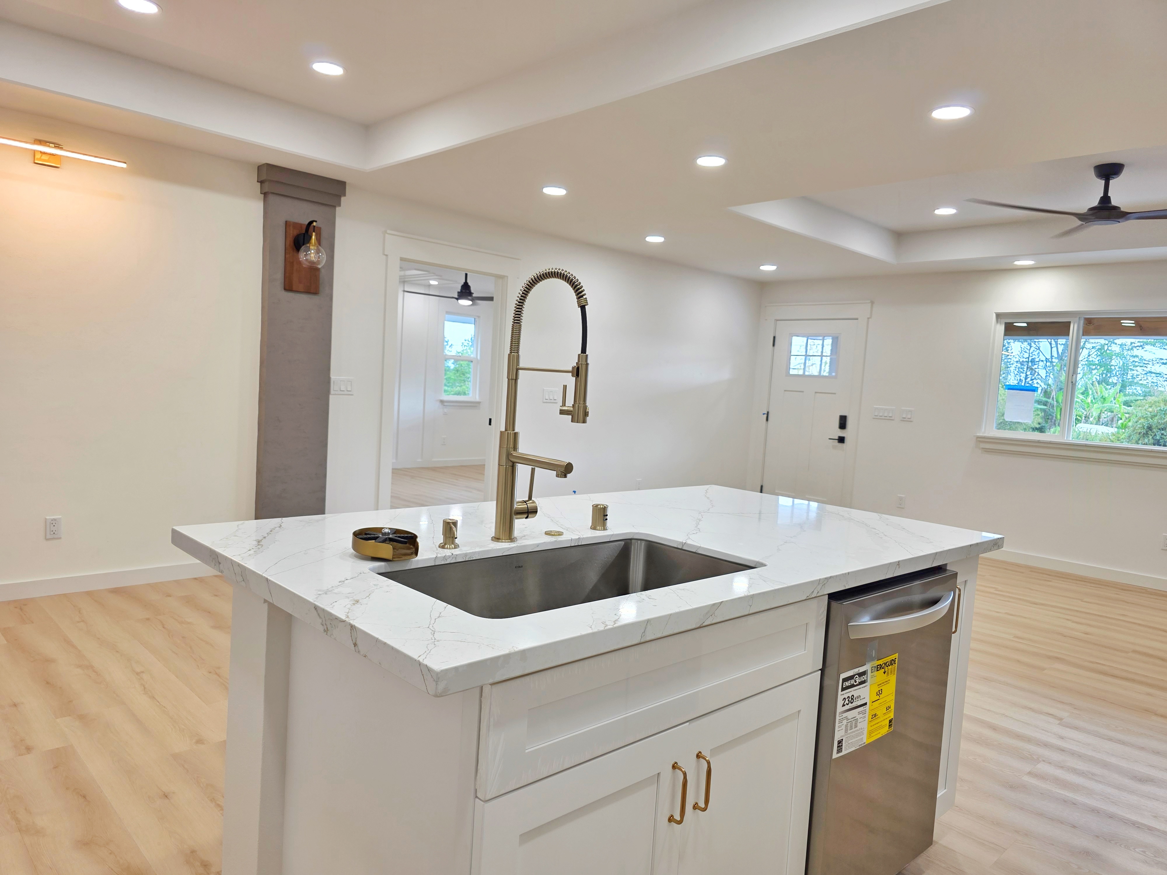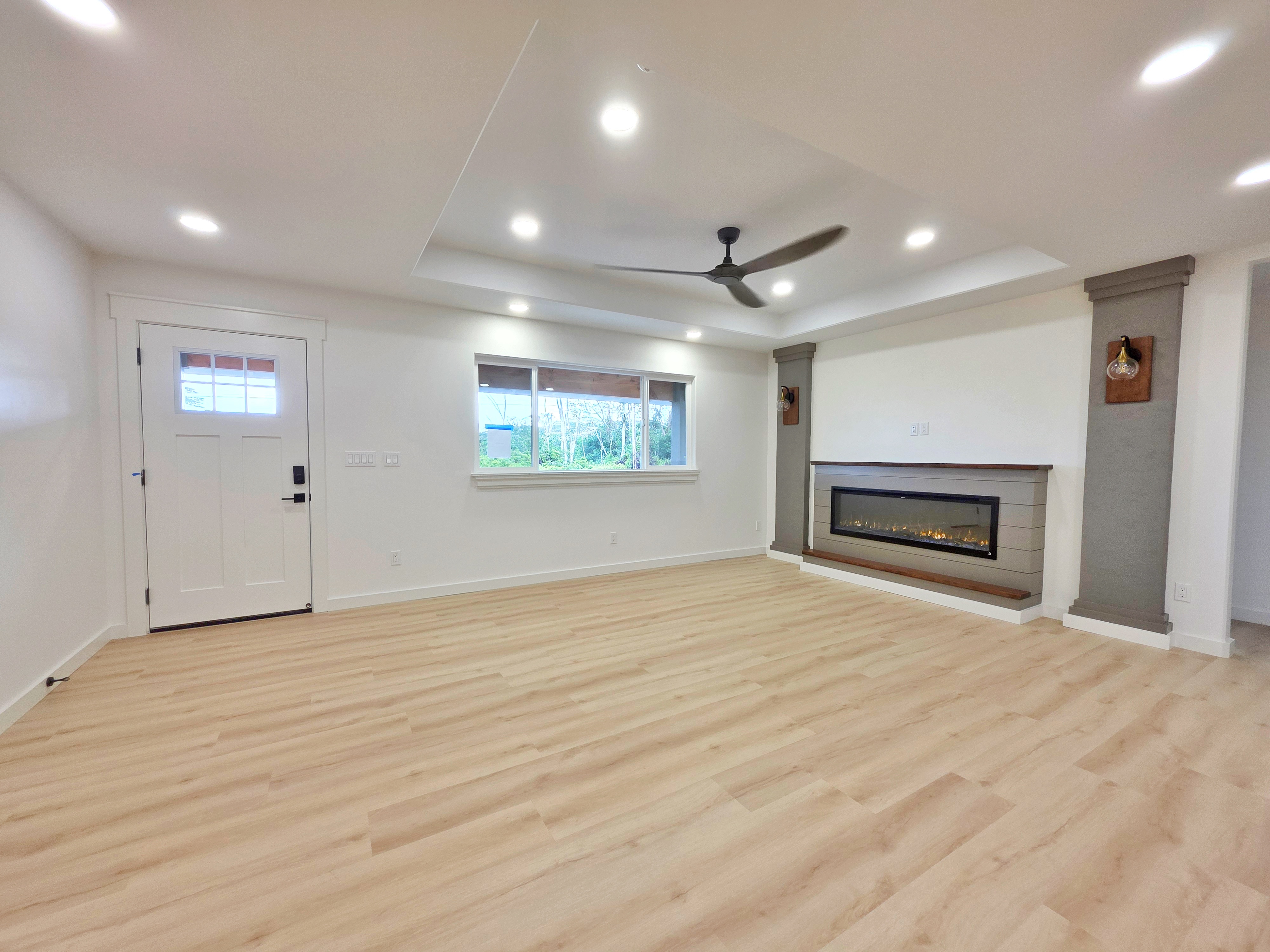 Discover this stunning new construction home in desirable Keaau, nestled within the popular Hawaiian Paradise Park subdivision. This modern 3-bedroom, 2-bath residence boasts an expansive open floor plan that seamlessly blends living, dining, and kitchen areas–perfect for relaxed island living and entertaining. Premium features include elegant lighting fixtures, stylish wall accents, ceiling fans throughout, and a chic fireplace for added ambiance. The heart of the home is the beautiful kitchen, highlighted by a large central island with integrated sink and dishwasher, plus all-new stainless steel appliances: refrigerator, range, microwave, and dishwasher. Pristine stone countertops flow throughout, complemented by gorgeous laminate flooring that beautifully mimics the look of real hardwood. The primary suite offers a generous walk-in closet and a luxurious bathroom featuring a sleek glass-enclosed shower and lighted vanity mirrors. Both bathrooms include lighted mirrors for added convenience and style. Additional highlights include a spacious carport ideal for vehicle parking or extra storage space, and a large, beautifully landscaped yard with ample room to plant a garden, add fruit trees, or create your own outdoor oasis. Located in a well-established community–this home provides the perfect blend of tranquility and accessibility. Enjoy a short drive to Hilo for schools, dining, shopping, a mall, and movie theater, or head the opposite direction to Pahoa for additional conveniences and local charm.