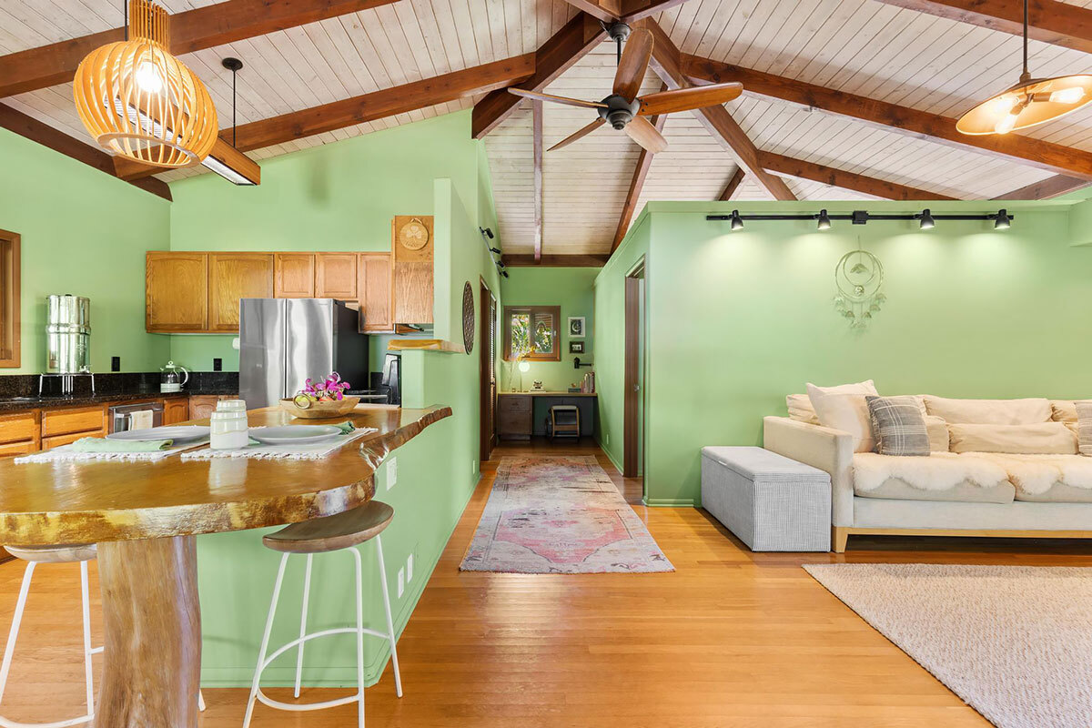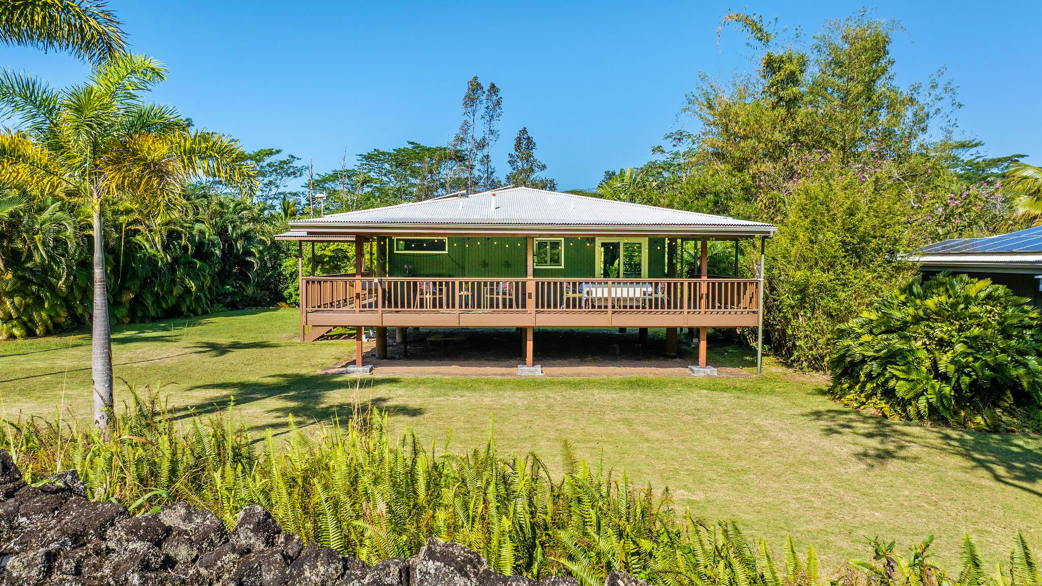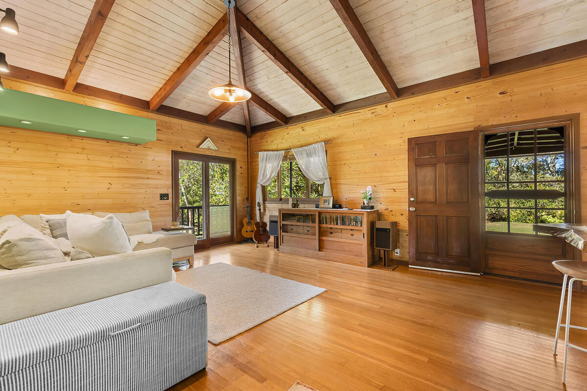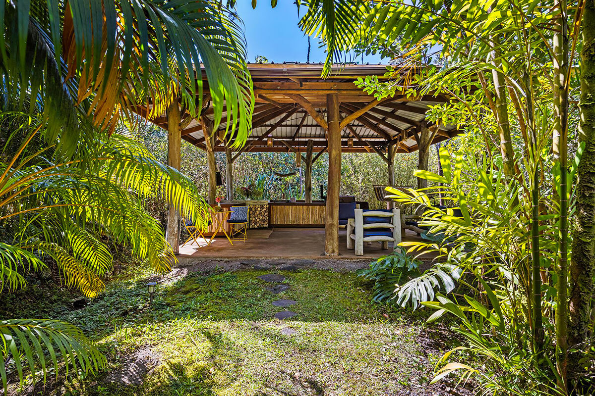 Experience serene island living on this exceptional 3-acre homestead comprised of 3 separate adjoining lots. Tucked away at the end of a quiet cul-de-sac the property is bordered by a Hawaiian rock wall & State land, offering privacy & a peaceful setting. The main acre features 2 distinct living spaces. The primary residence is a custom one-bedroom, one-bath post & pier house showcasing open-beam ceilings, white oak floors, mango wood countertops, wood-framed windows/sliding glass doors, & wrap-around lanai. There is also a charming ohana-style dwelling with half bath & outdoor shower. Originally designed as an office/workshop, it easily serves as guest accommodation. Completing this portion of the property is an above-ground pool with Trex decking, lush lawn, & an abundance of mature fruit trees including citrus, coconut, avocado, rambutan, lychee, starfruit, soursop, white pineapple & breadfruit. The additional 2 acres offer winding jungle walking paths leading to 2 beautifully crafted, standalone cabins with electricity & water. Each cabin provides privacy & features a front lanai, kitchenette, sleeping area, loft, outdoor bathroom & shower. Nearby, an outdoor kitchen creates an inviting space to relax & entertain while enjoying the natural surroundings. Ornamental landscaping & additional fruit trees are found throughout this area. Additional highlights: Granite counter tops, custom wood details Pond with rock wall accents Owned net-metered 5.57 kW grid-tied solar system 10,000-gallon catchment tank supplying all structures, with filtration Located in the sunbelt region of HPP, 9 blocks from the ocean Smoke house The Pacific coastline is just a short drive away, where you can enjoy Hawaiian sunrises, seasonal whale watching, & cooling trade winds. Shopping/amenities & airport are within a 15—30 minute drive. A truly one-of-a-kind property–ideal for an extended family, business venture, or a unique rental opportunity.
