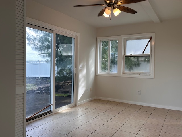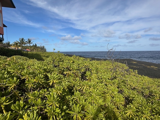 This Oceanfront home has it all. Excellent location, good neighbors, two stories with excellent views and under a million bucks. Very rare underground water tank that holds more than 10K gallons. Floor to ceiling windows on the ocean side. Clean easy to maintain yard. Upstairs suite has an open feel and private lanai to watch the sunrise. Yup, it has it all.
