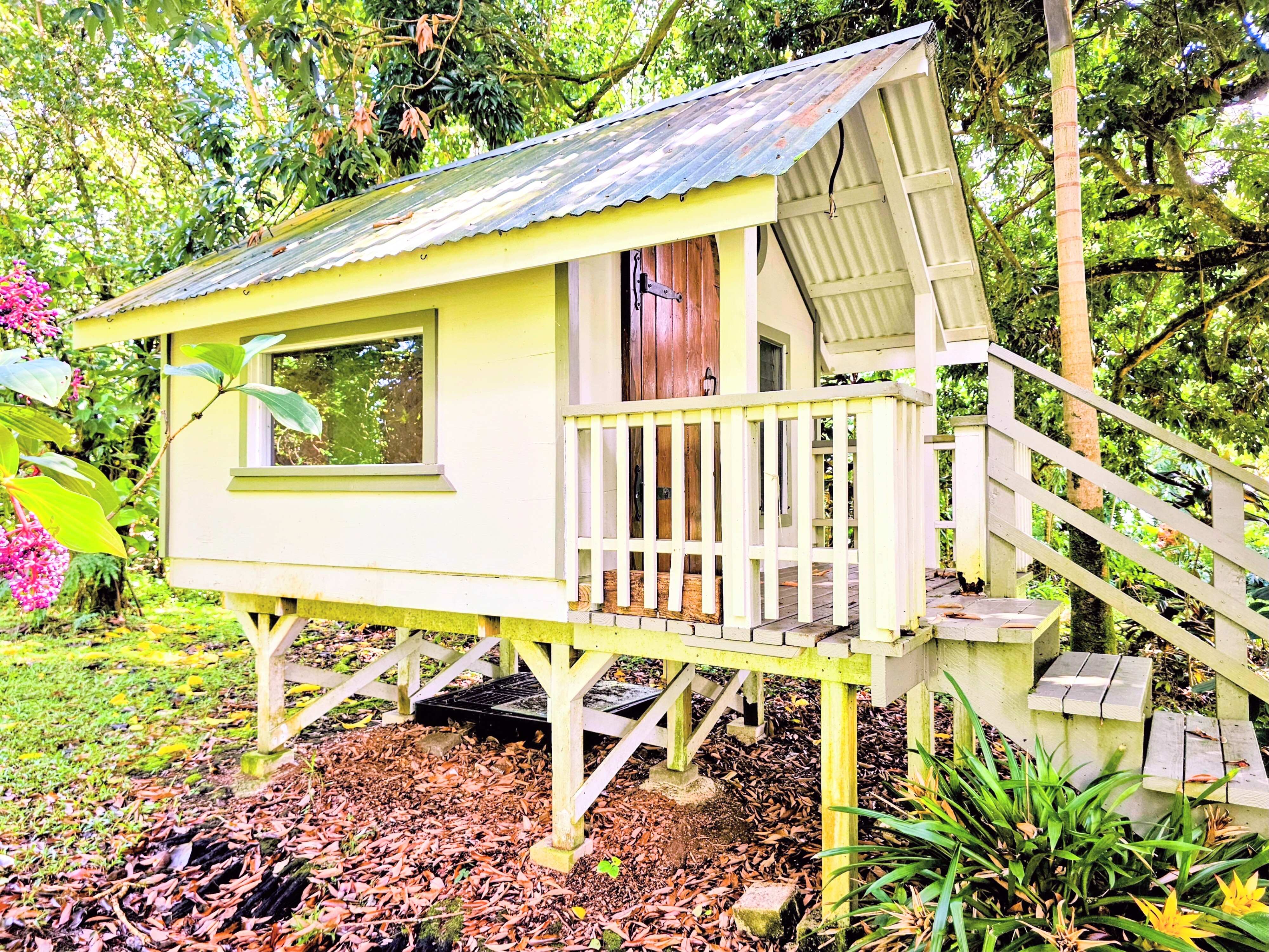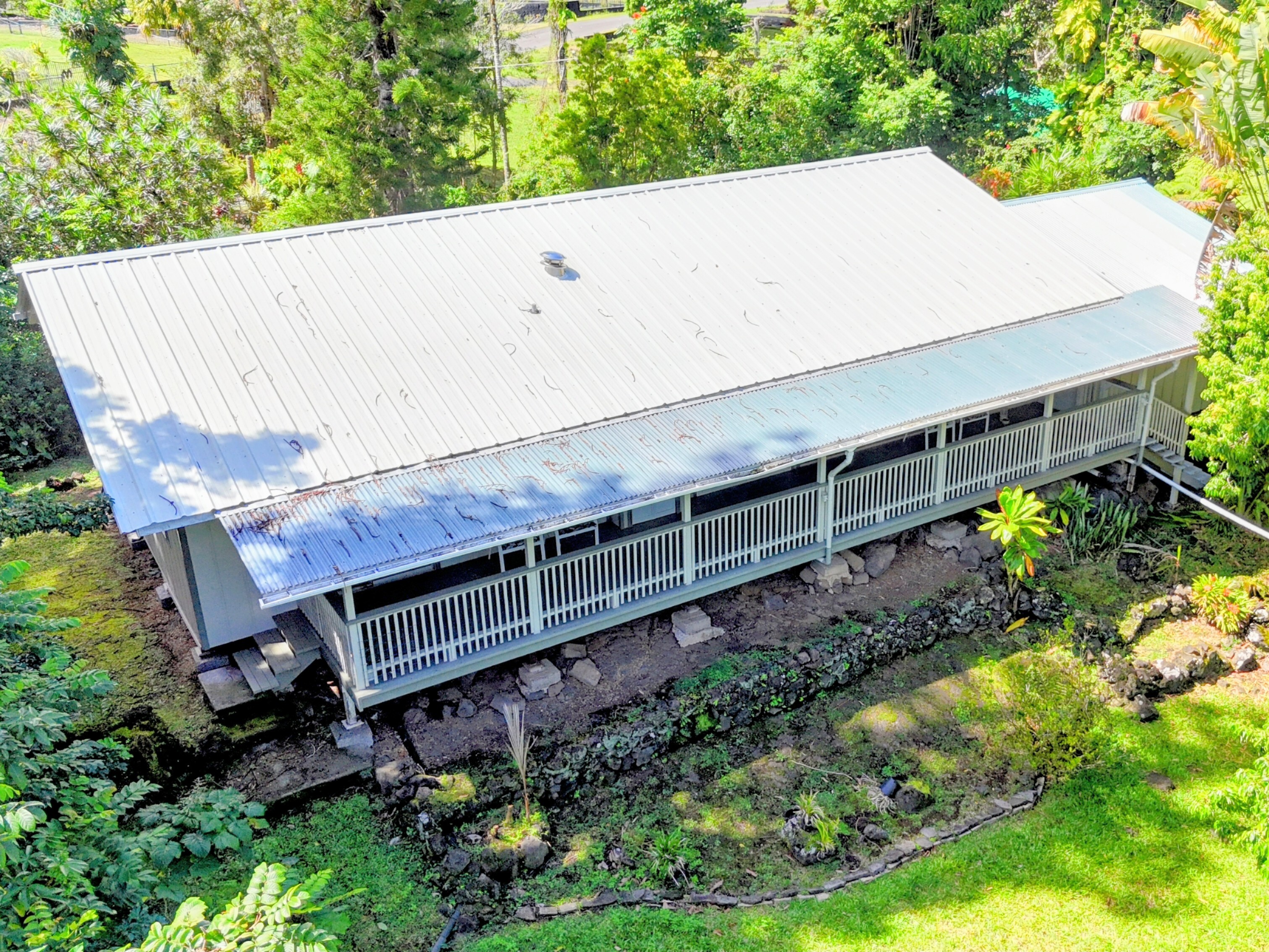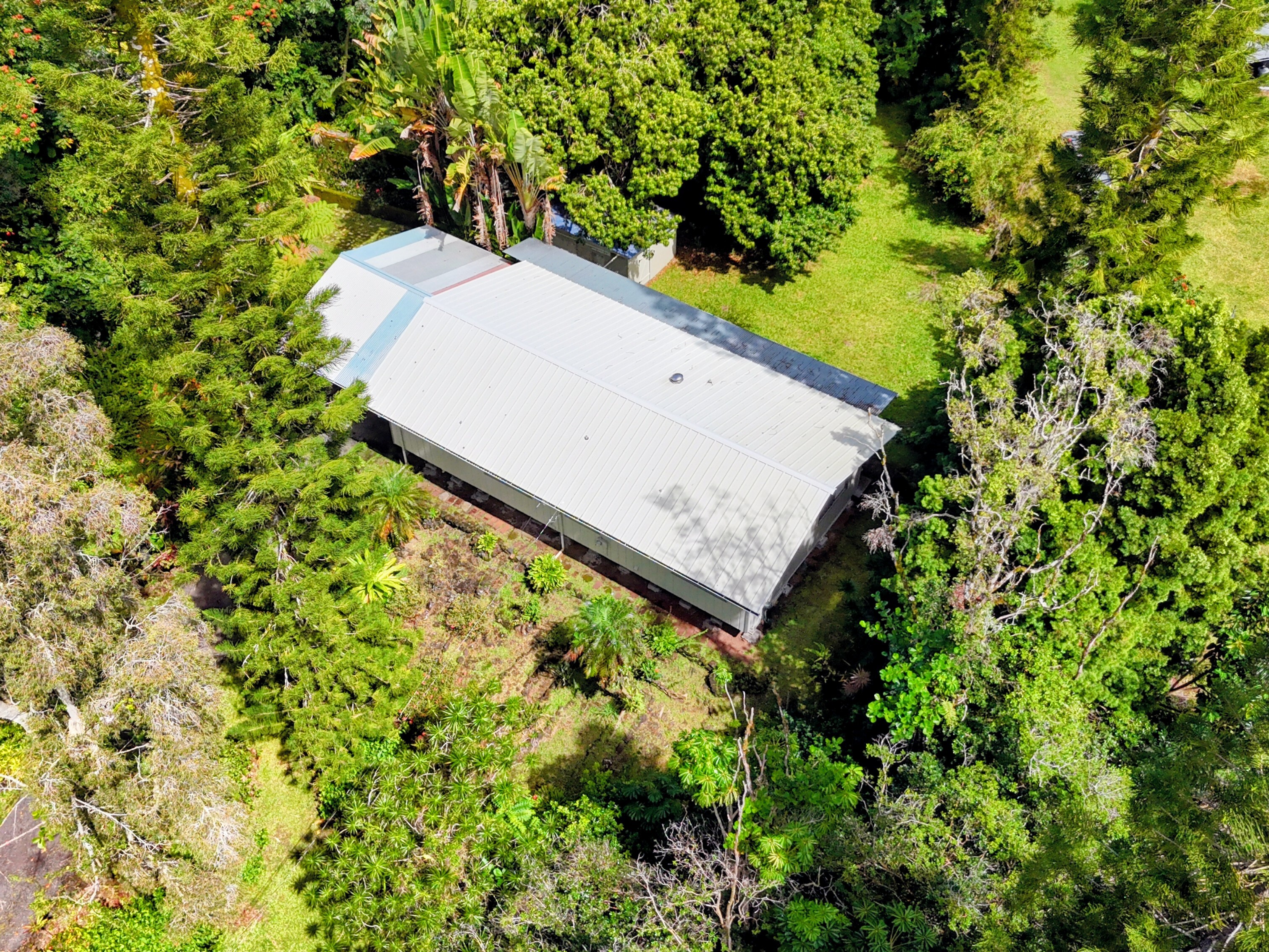 Hawaiian Paradise Park above, or mauka side of, Hwy 130 is one of the "neighborhoods within the neighborhood". Often overlooked or considered a part of Orchid Land Estates, the Pohaku Circle enclave has all the desirable qualities of a great neighborhood: quiet, paved roads, well maintained homes, established landscaping, grid power, close to main roads, public transportation, and a convenient location. The neighborhood location couldn't be any more ideal: halfway between Keaau and Pahoa towns making it convenient to get to restaurants, cafes, groceries, post office, and emergency services. A little further to Hilo and there are the conveniences of a small city; government offices, the University of Hawaii Hilo, and the Hilo International Airport, not to mention the Pacific ocean, swimming, canoeing, sailing, fishing and surfing. The property itself is a rare find. Located in the middle of the block, the lot is extremely private: mature trees at the perimeter and a subtle, but paved, driveway entrance create a tranquil environment. Tropical landscaping all around are daily reminders that you are in Hawaii; monstera, palms. bromeliads, lychee, and more. The three bedroom house sits on top of a small rise allowing views to both the front and back of the property. Making the home even more attractive, a thoughtful remodel of the property was completed, including: bathrooms, kitchen, painting, flooring, roof replacement, and reconstruction of what was an open deck to a completely covered lanai - across the back of the entire house. Features, fixtures, price - this property checks all the boxes.