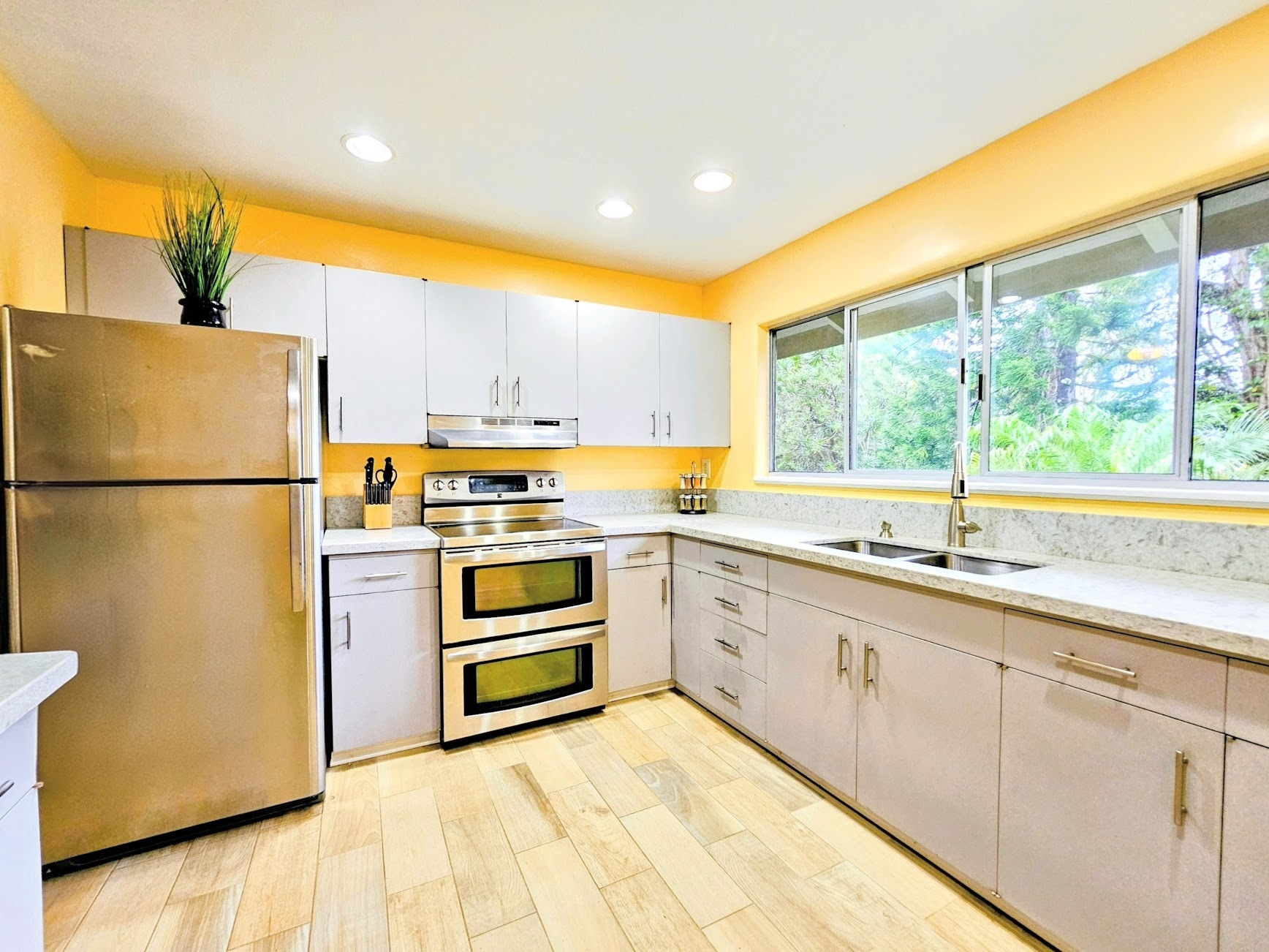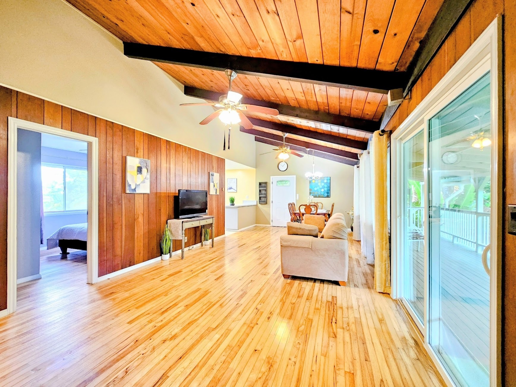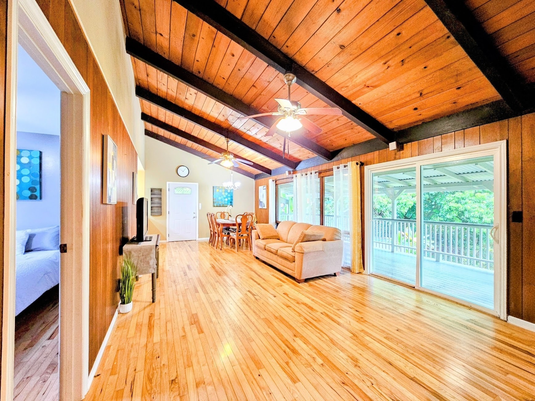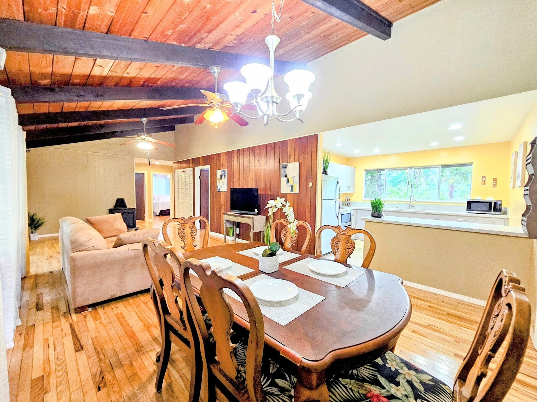 Hawaiian Paradise Park above, or mauka side of, Hwy 130 is one of the "neighborhoods within the neighborhood". Often overlooked or considered a part of Orchid Land Estates, the Pohaku Circle enclave has all the desirable qualities of a great neighborhood: quiet, paved roads, well maintained homes, established landscaping, grid power, close to main roads, public transportation, and a convenient location. The neighborhood location couldn't be any more ideal: halfway between Keaau and Pahoa towns making it convenient to get to restaurants, cafes, groceries, post office, and emergency services. A little further to Hilo and there are the conveniences of a small city; government offices, the University of Hawaii Hilo, and the Hilo International Airport, not to mention the Pacific ocean, swimming, canoeing, sailing, fishing and surfing. The property itself is a rare find. Located in the middle of the block, the lot is extremely private: mature trees at the perimeter and a subtle, but paved, driveway entrance create a tranquil environment. Tropical landscaping all around are daily reminders that you are in Hawaii; monstera, palms. bromeliads, lychee, and more. The three bedroom house sits on top of a small rise allowing views to both the front and back of the property. Making the home even more attractive, a thoughtful remodel of the property was completed, including: bathrooms, kitchen, painting, flooring, roof replacement, and reconstruction of what was an open deck to a completely covered lanai - across the back of the entire house. Features, fixtures, price - this property checks all the boxes.
