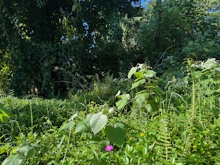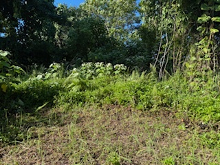 This 15,077 square foot lot has a small trail leading to a cleared grassy area towards the center of the lot.