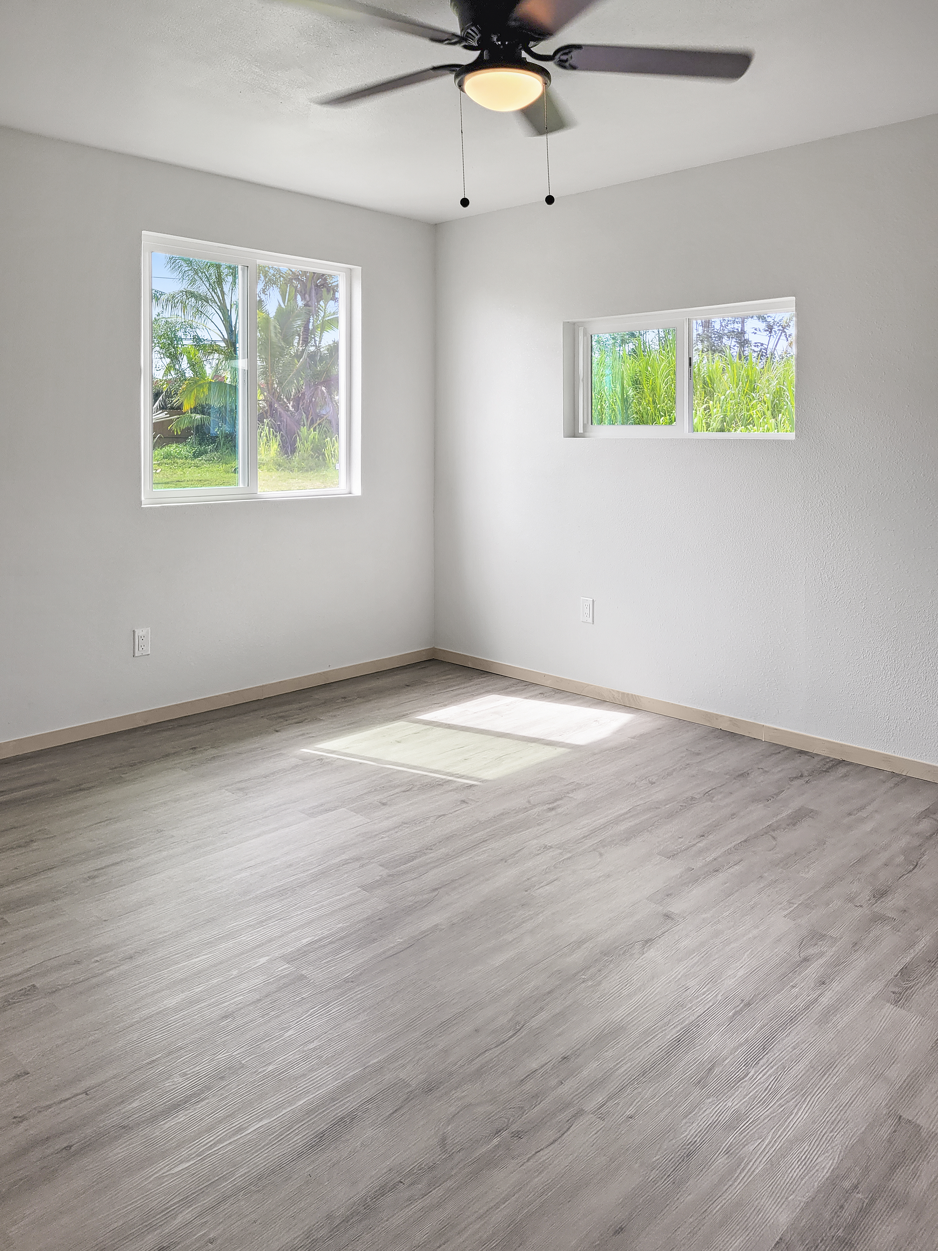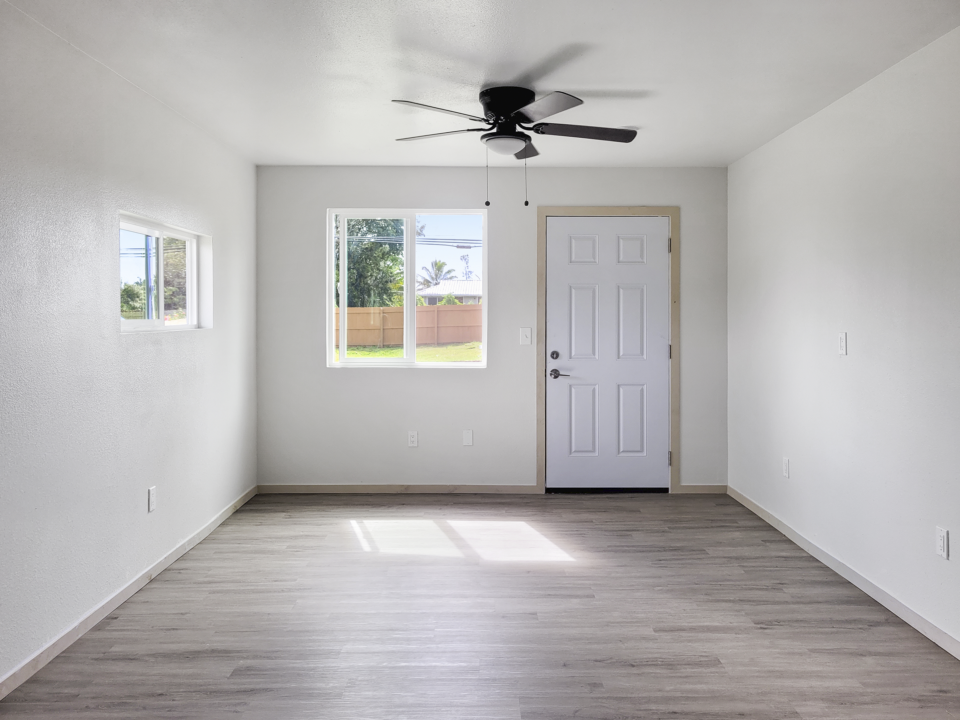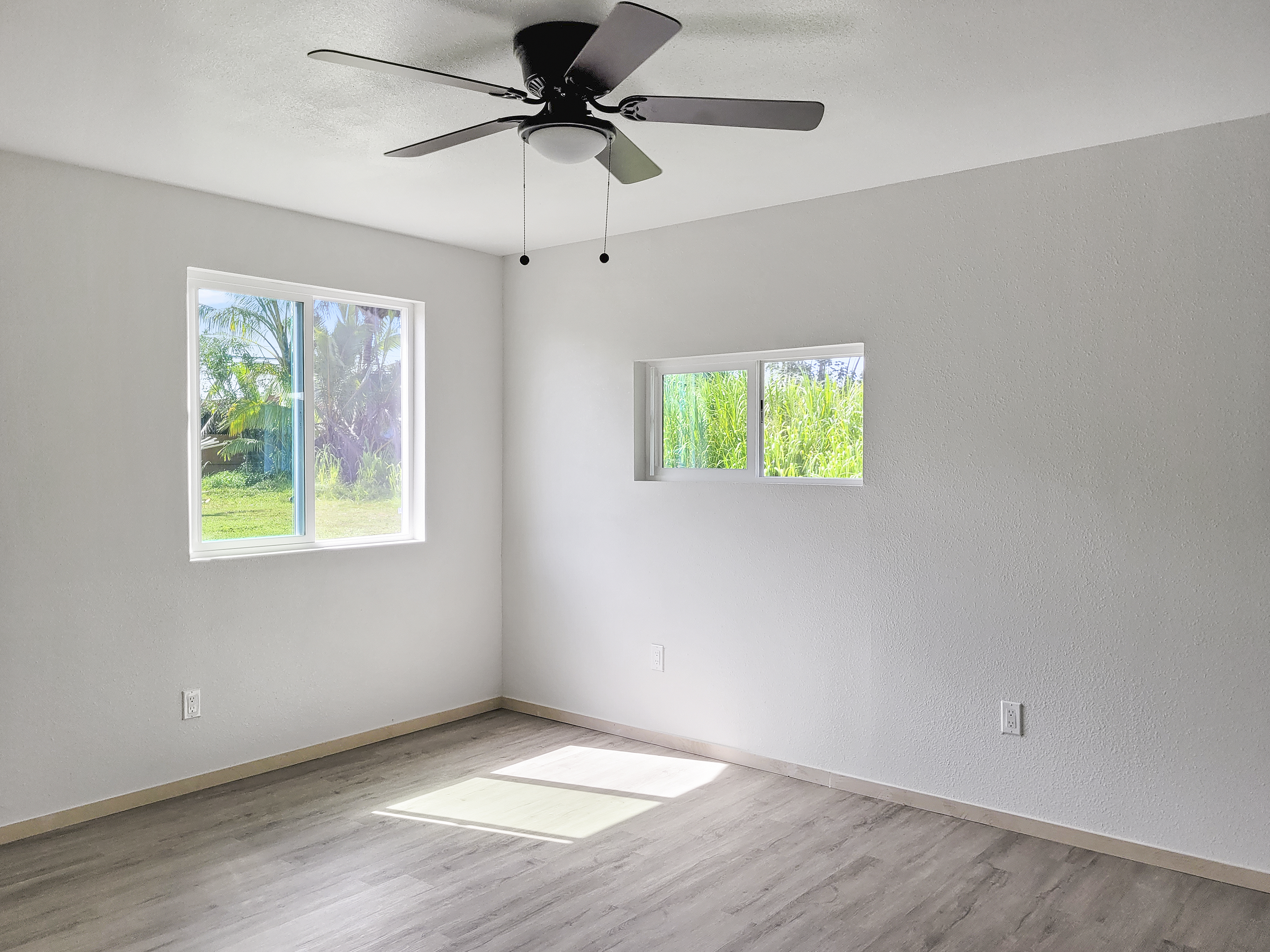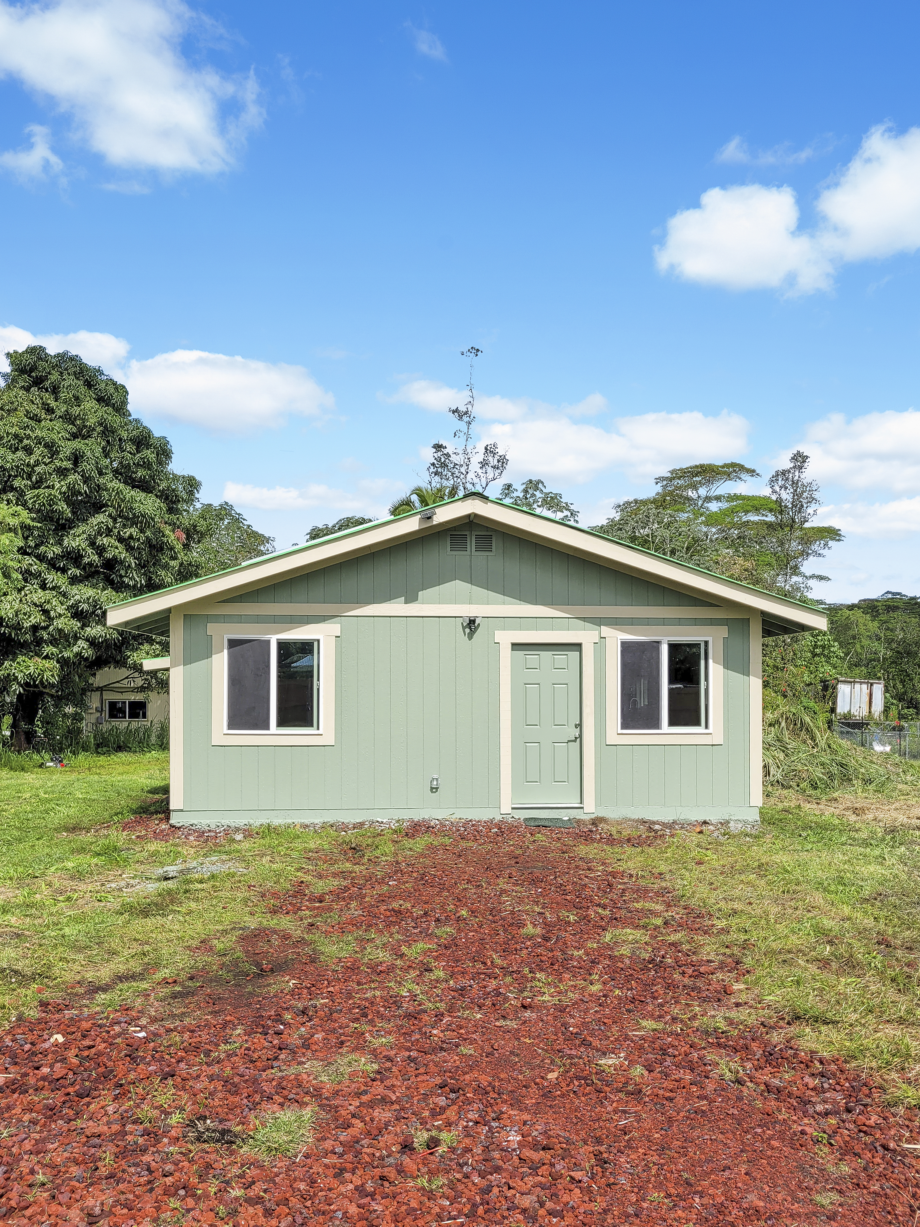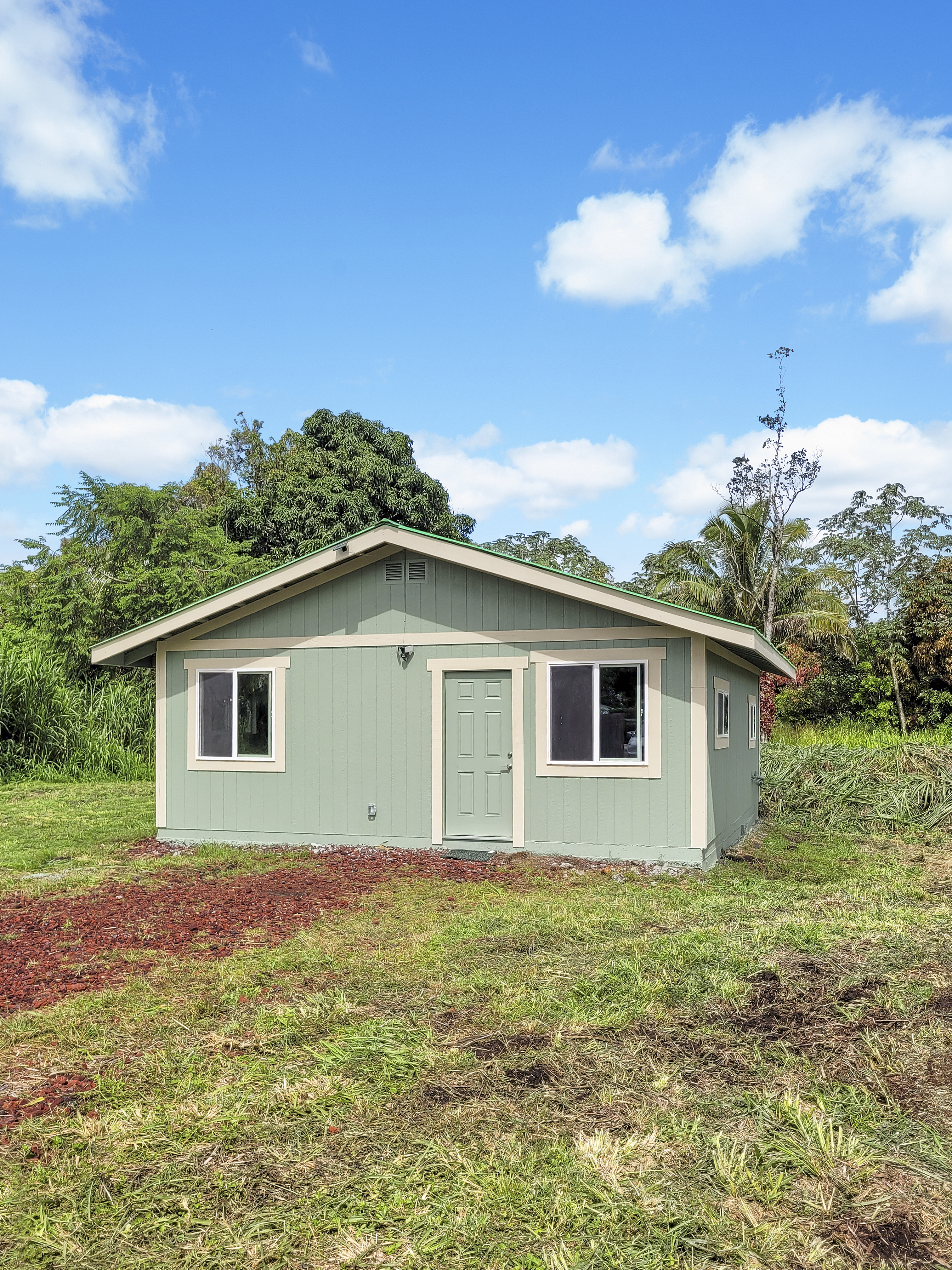 Thus custom crafted brand new build is your start to simple living in Hawaii. Nestled on almost a half an acre of lush land with large mango tree, kumquats, coconut tree & avocado tree all protected by a 6 ft cedar privacy fence. The build quality is at the highest level with cedar wood trim used for windows and doors. Entire house is built with T1-11 siding and Hi-Bor® lumber is pressure treated to protect against rot, fungal decay, and termites. Covered from wall to wall with greenboard drywall, which provides extra protection from moisture, mildew and high fire rating.