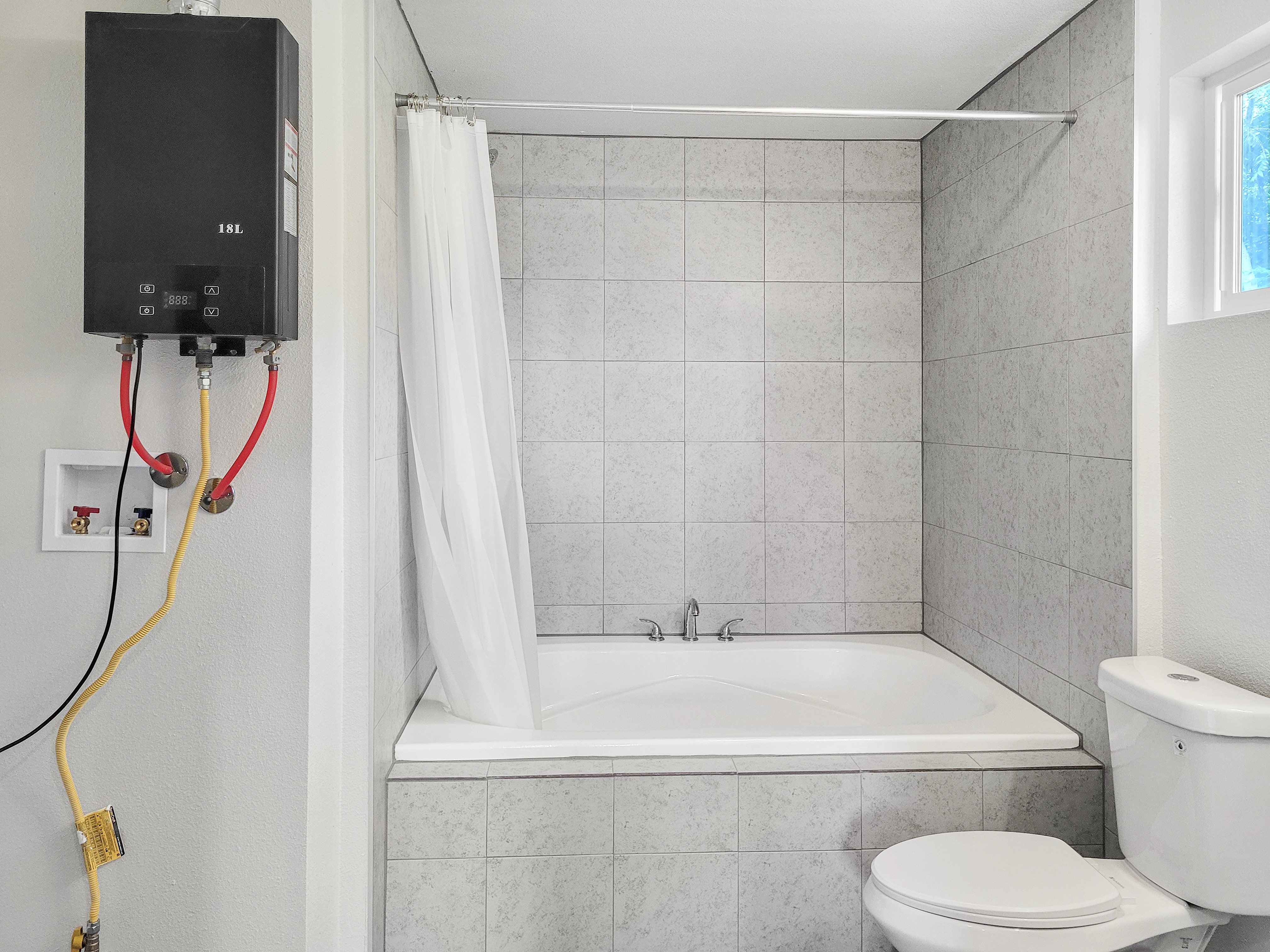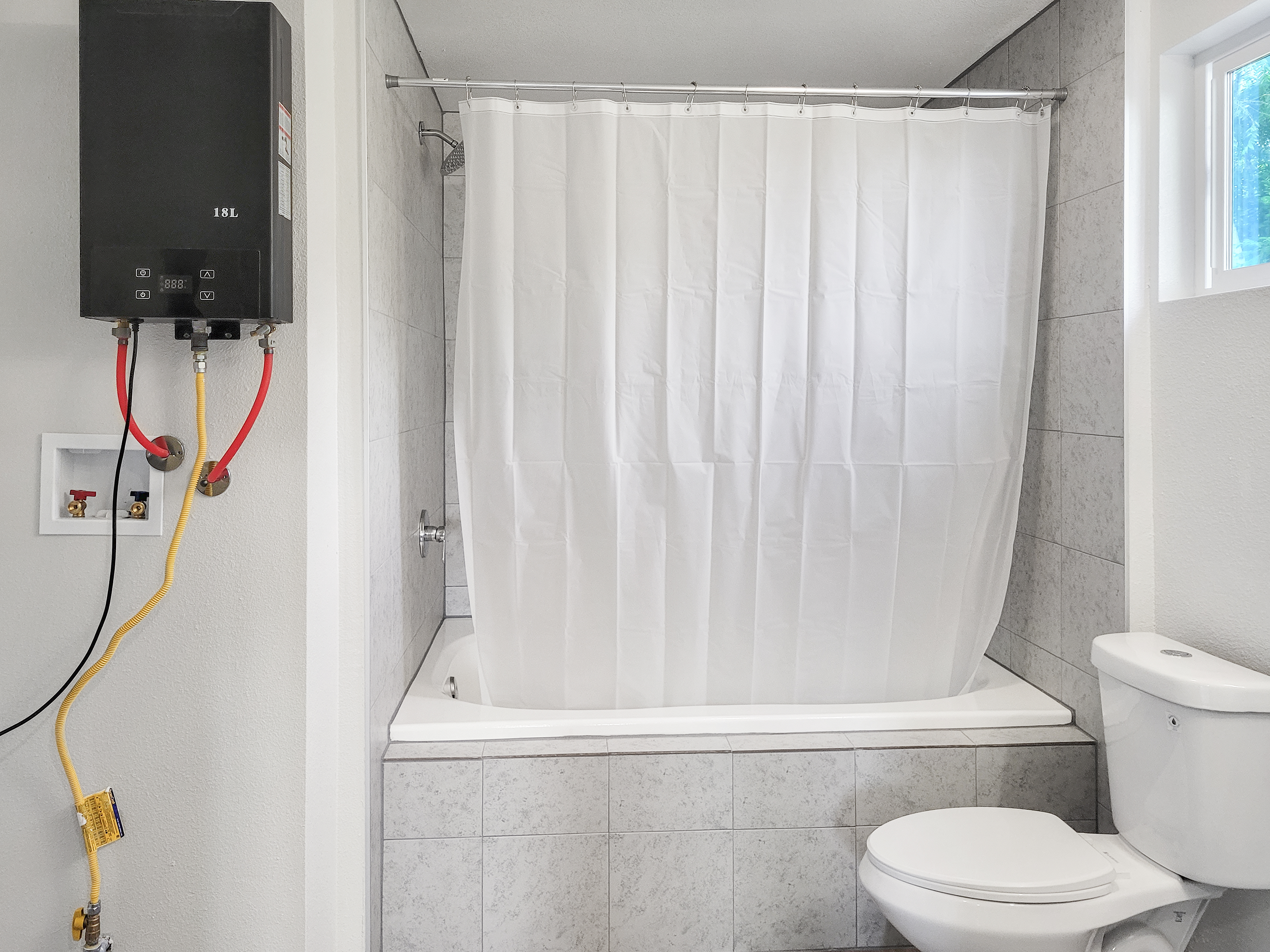 Additional amenities include propane hot water, enormous bathtub and hook-ups for washer and propane dryer. Located at the top of Hawaiian Beaches subdivision where you can get mail delivery, county water and high-speed internet.