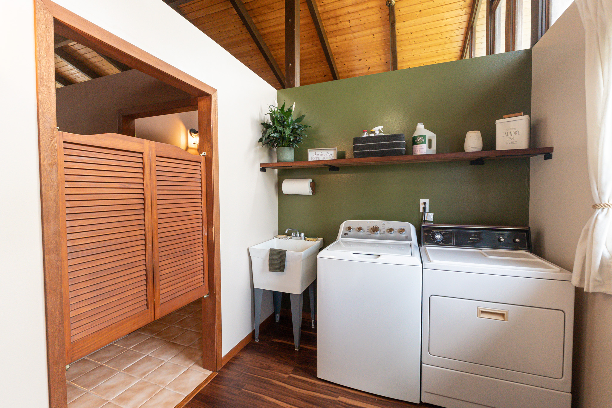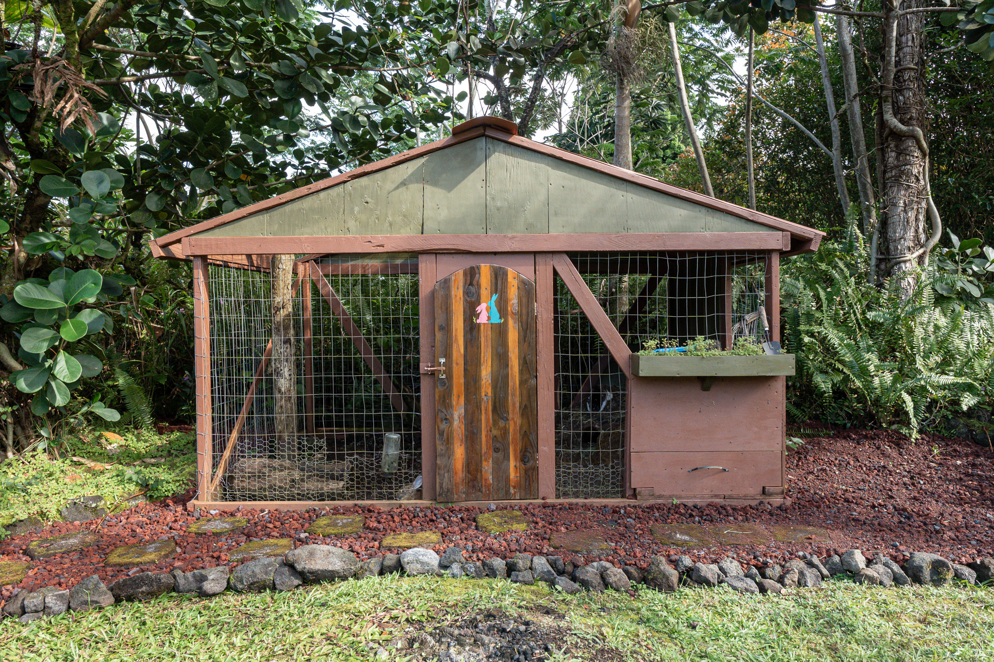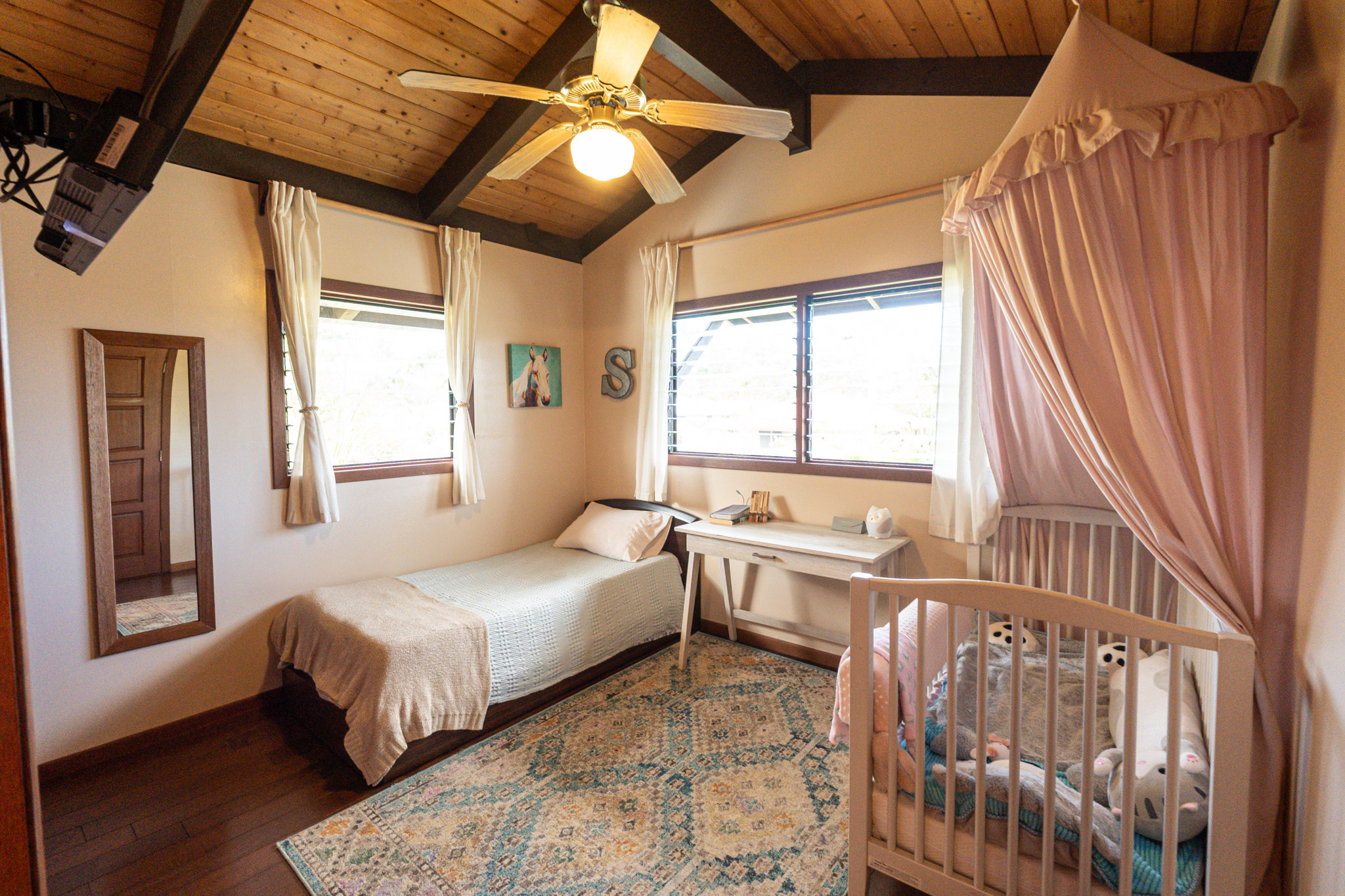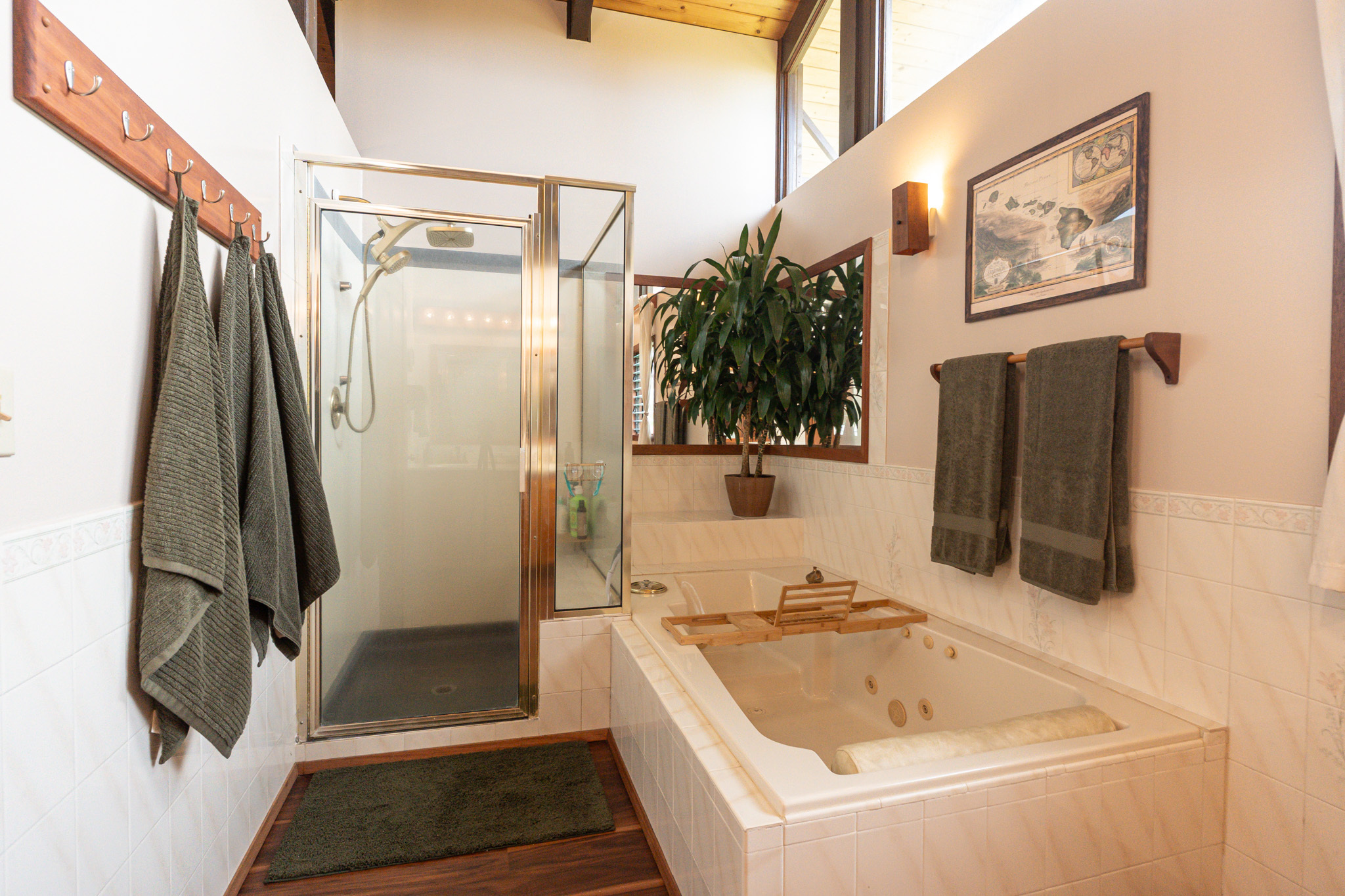 This turnkey, fully furnished home is being sold with the lot next door (MLS 728694) for a total of 1 acre. The elevated design captures refreshing trade winds throughout the day. It is located on a quiet, paved, dead-end street, which is ideal for privacy. The interior features solid mahogany doors and trim, new laminate flooring, fresh premium paint, attic fans, remodeled butler walk-through pantry, and updated bathrooms with both a walk-in shower and a jacuzzi tub. The kitchen includes a gas stove, dishwasher, microwave, disposal, and trash compactor. The spacious laundry room offers propane dryer, utility sink, freezer, second fridge, custom cabinetry, and sewing station. The guest suite has a private entry, lanai, and bath. A flex room with AC overlooks the garden. The primary bedroom includes dual closets, two lanai doors, and AC. Exterior updates include freshly painted roof, siding, railings, garage doors, new fans, refreshed covered lanai, and upgraded landscaping with lava-stone bird bath and grill. The home is wired for alarm system and has a paved driveway. A rare 1260 sqft 3-car garage plus 480 sqft carport includes industrial garage doors, air-compressor lines, attic fan, and tall ceilings for large trucks or a lift. The third bay features its own bathroom, AC, 220-volt hookups, propane access, and private entry–perfect for a studio, gym, or apartment. It is solar-ready with a dedicated breaker box connected to 22 solar panels. Beautiful landscaping includes avocado, mango, coconut, dragon fruit, guava, and mulberry, plus rare yellow and orange ?ohi?a, hibiscus, orchids, heliconias, and anthuriums. Wrap-around lanai offers 825 sqft of outdoor living with new stain, custom gates, hardwood benches, and updated lighting. The HOA community center offers a pool, playground, pickleball courts, BBQ pavilion, grassy field, and “The Stables” with monthly activities. Each lot has its own mailbox and piped water.