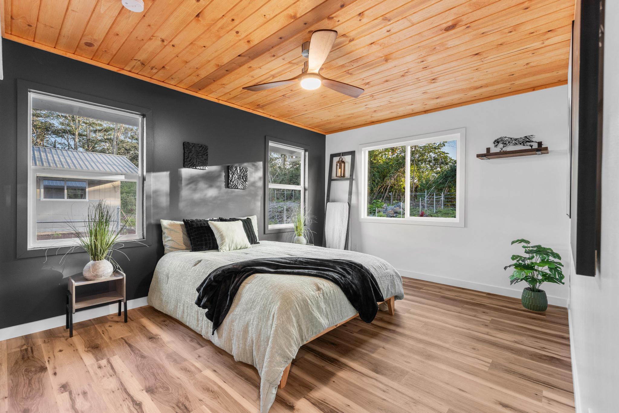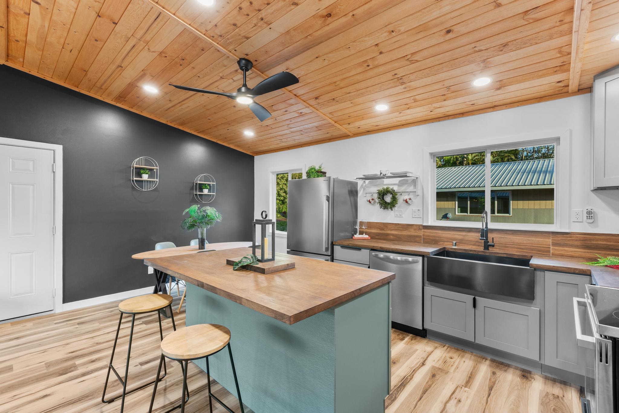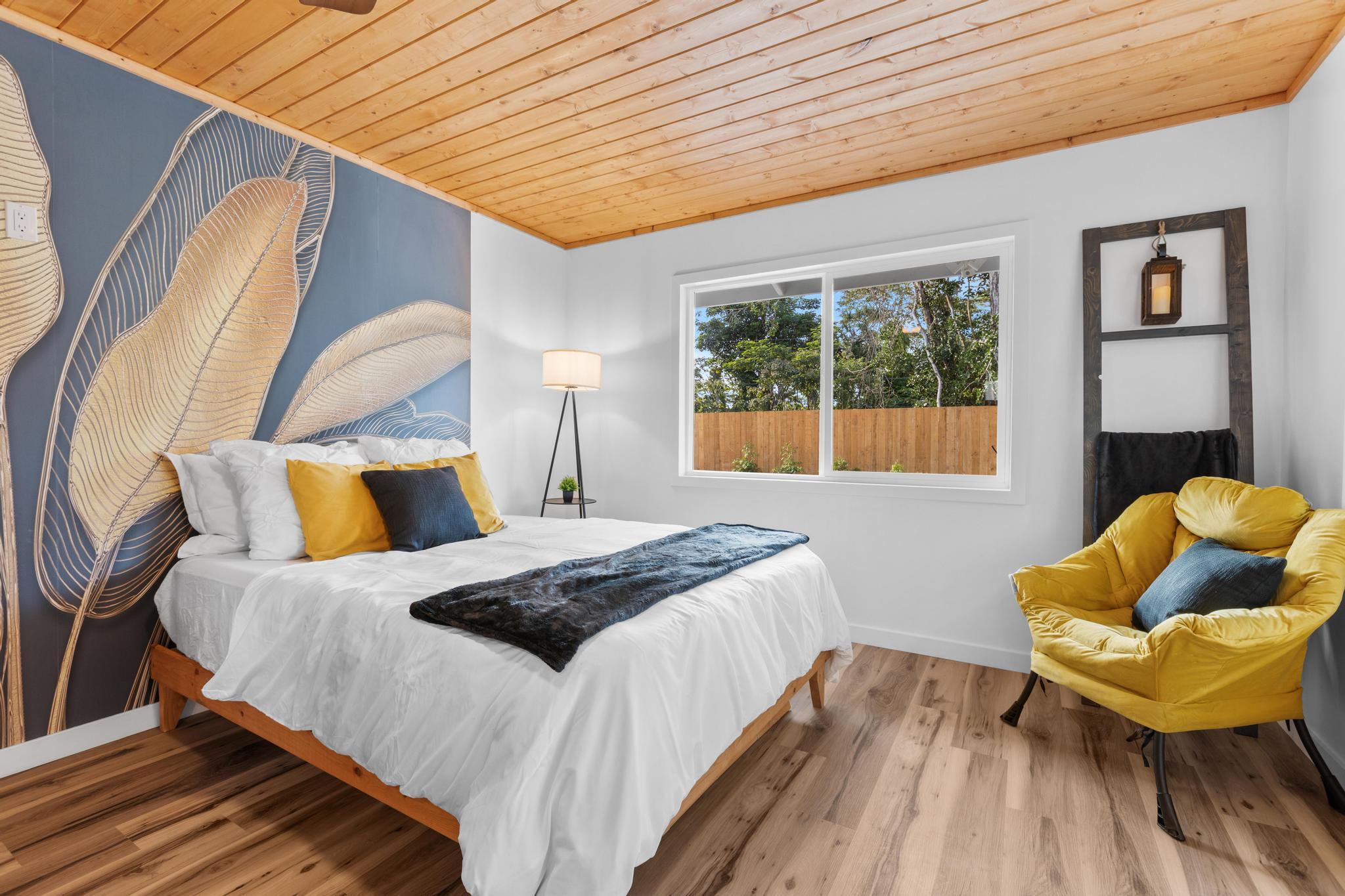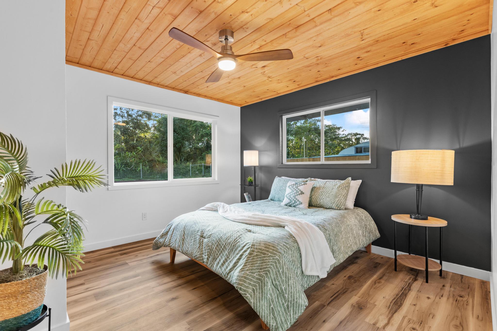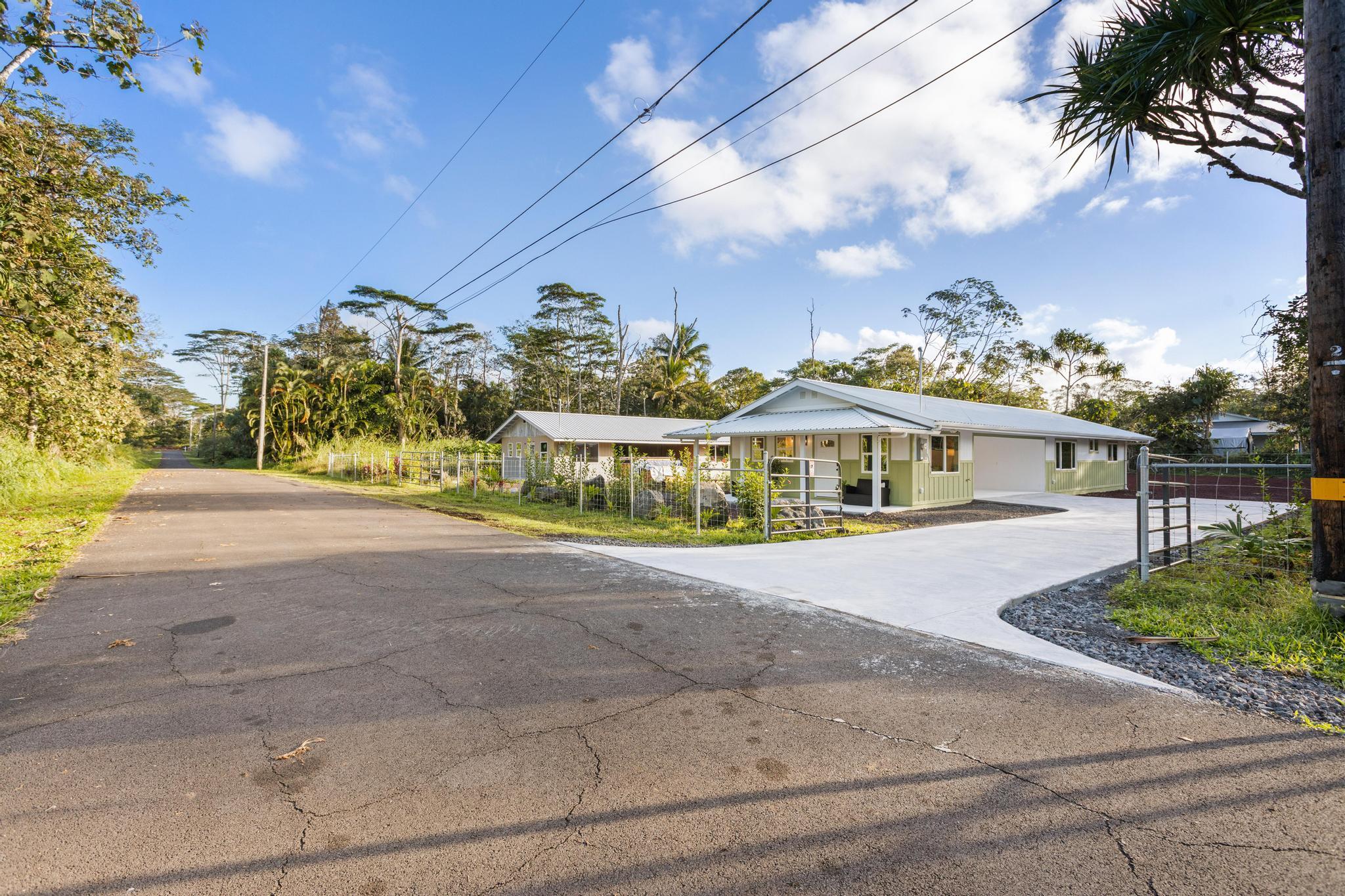 Video: https://show.tours/v/Kr8H4kW Quality Custom New Single level home offering a unique Split floor plan: * Main Living Area, 2 Bedrooms, 1 Bathroom with Separate Entrance/Exit on one side. * Another 1 Bed, 1 Bath with a Wet Bar, Lanai and Separate Entrance on the other side! Great for extended family, ohana or potential rental income! Located on a Dead-End road in an established subdivision of Hawaiian Shores Recreational Estates with amenities: swimming pool, parks, playground, pickleball courts. Highlights ~ Split Floor Plan with a Separate Entrance Guest Suite offering Bathroom and Wet Bar setup ~ Single Level Home with over 1,700 sqft Underroof of Indoor/Outdoor space ~ Vaulted Ceilings in Main Living Area ~ Wood Ceilings throughout! ~ Quality Finishes and Built-ins! ~ Open Style Kitchen with Island and Farm Sink! ~ New Appliances with Refrigerator, Dishwasher, Microwave hood, Range ~ Butcher Block Wood Kitchen Countertops ~ Tiled Showers to the Ceiling and Floating Vanities ~ Luxury Vinyl Plank flooring ~ Vinyl Double Pane Windows ~ Fenced Yard and Gated Entrance ~ Energy Efficient Heat Pump Water Heater ~ Fans with Remotes ~ Painted Concrete 2 Car Carport and Lanai ~ Carport has power setup for a potential Automatic Garage Door (consult with your contractor) ~ Landscaped with Boulders, Hibiscus and starter plants ~ Mail Service to Your House ~ Piped in Water ~ Paved Roads with Cable Internet, TV & Phone available in the area (check cable company) ~ 3 Wood Bed Frame Furniture pieces are included, other items negotiable (except artwork and staging items) ~ Lower down in the subdivision towards the Ocean ~ Lava Zone 2, Lending and Insurance options available (check with your lender directly) Short drive to Pahoa town offering a new Puna Kai Shopping Center and restaurants, schools, post offices, banks, etc. 15-2774 Nenue St, Pahoa HI 96778 ~ MLS 728021