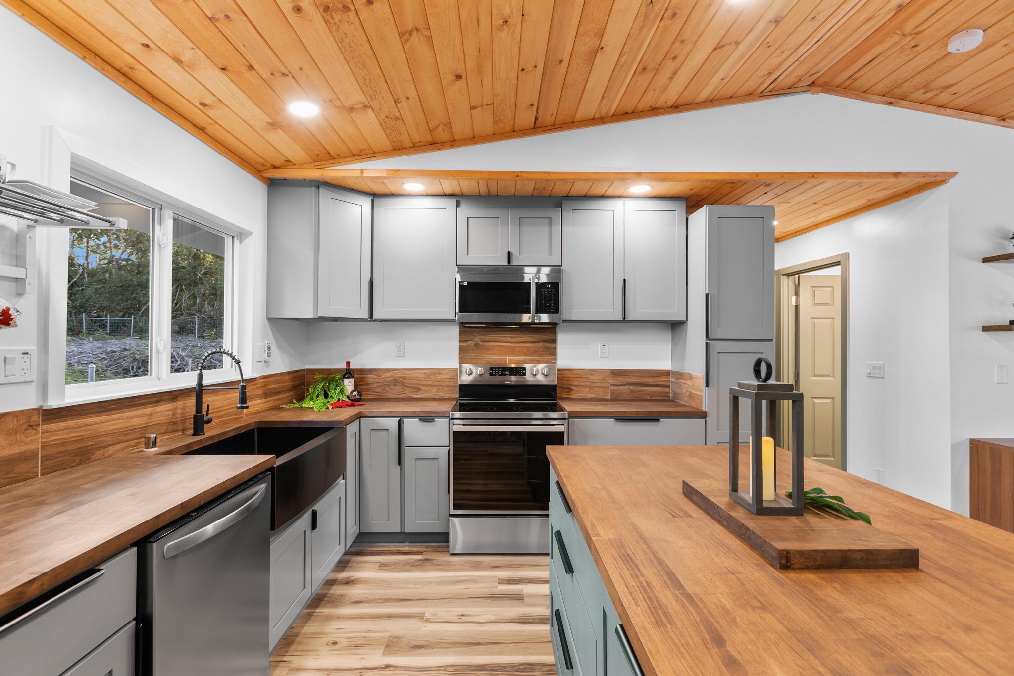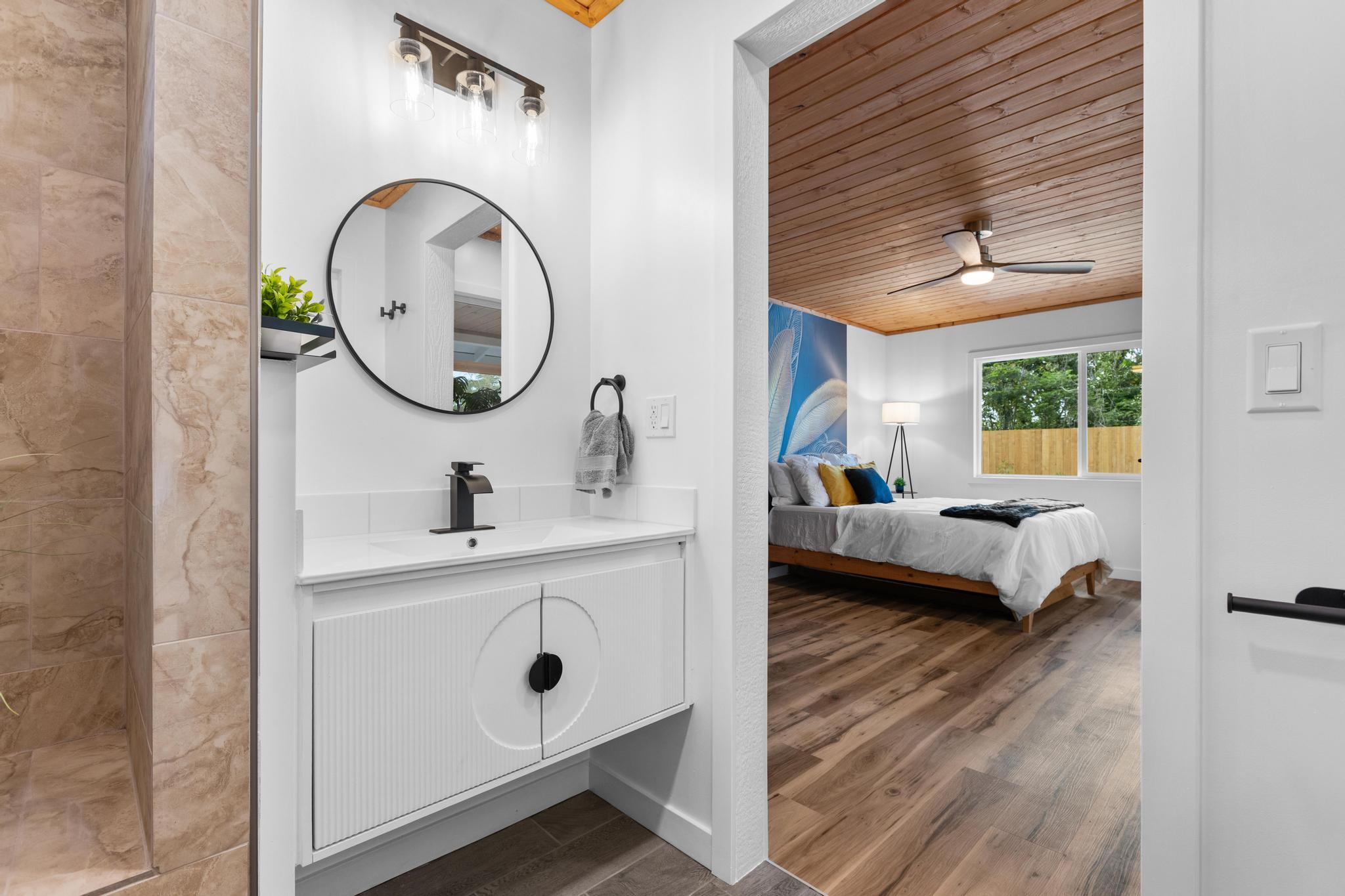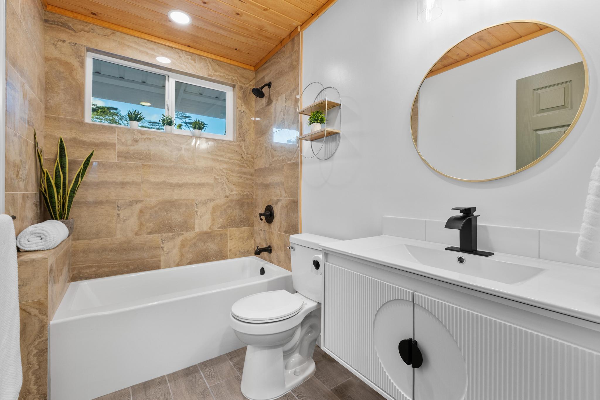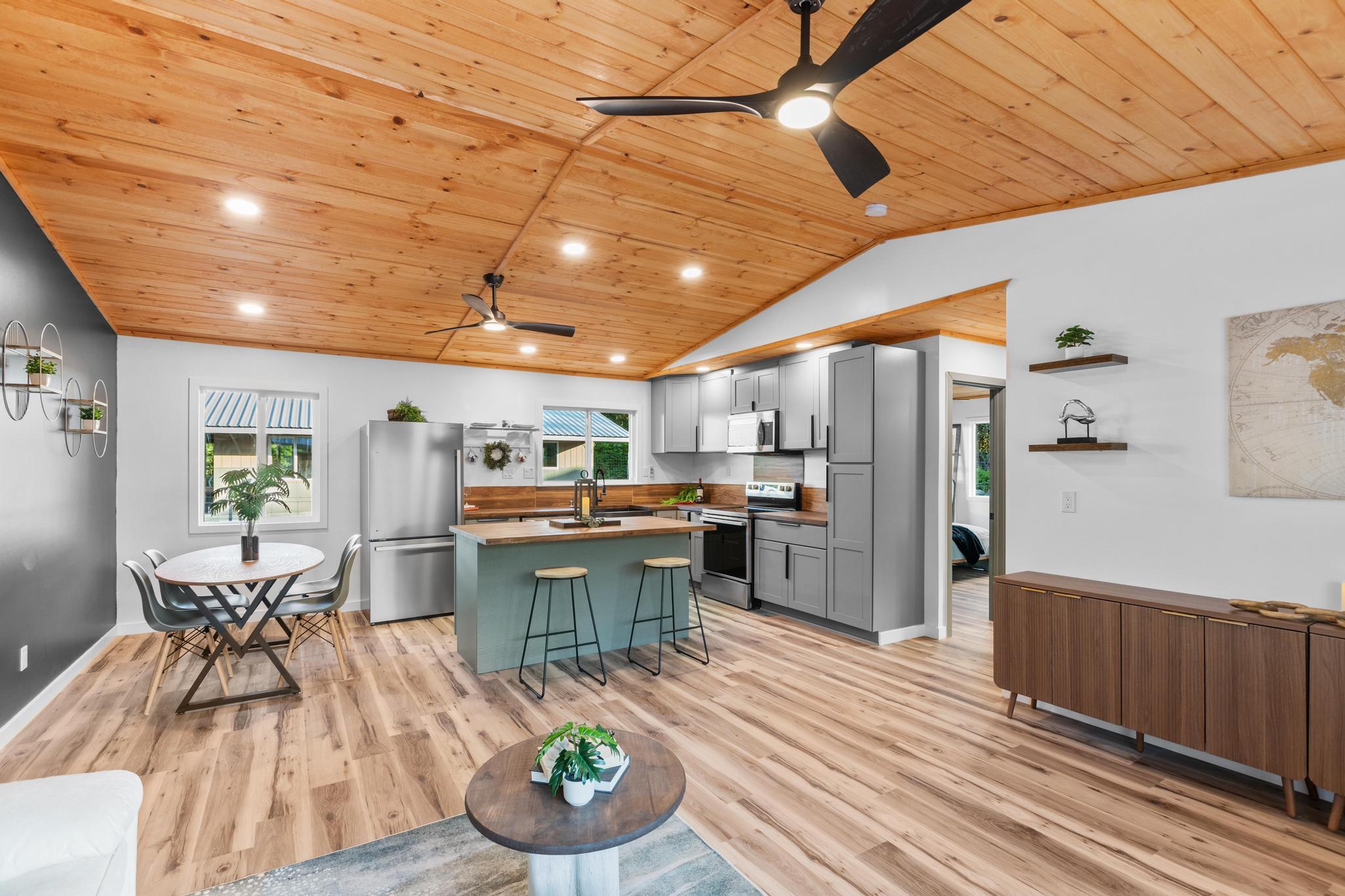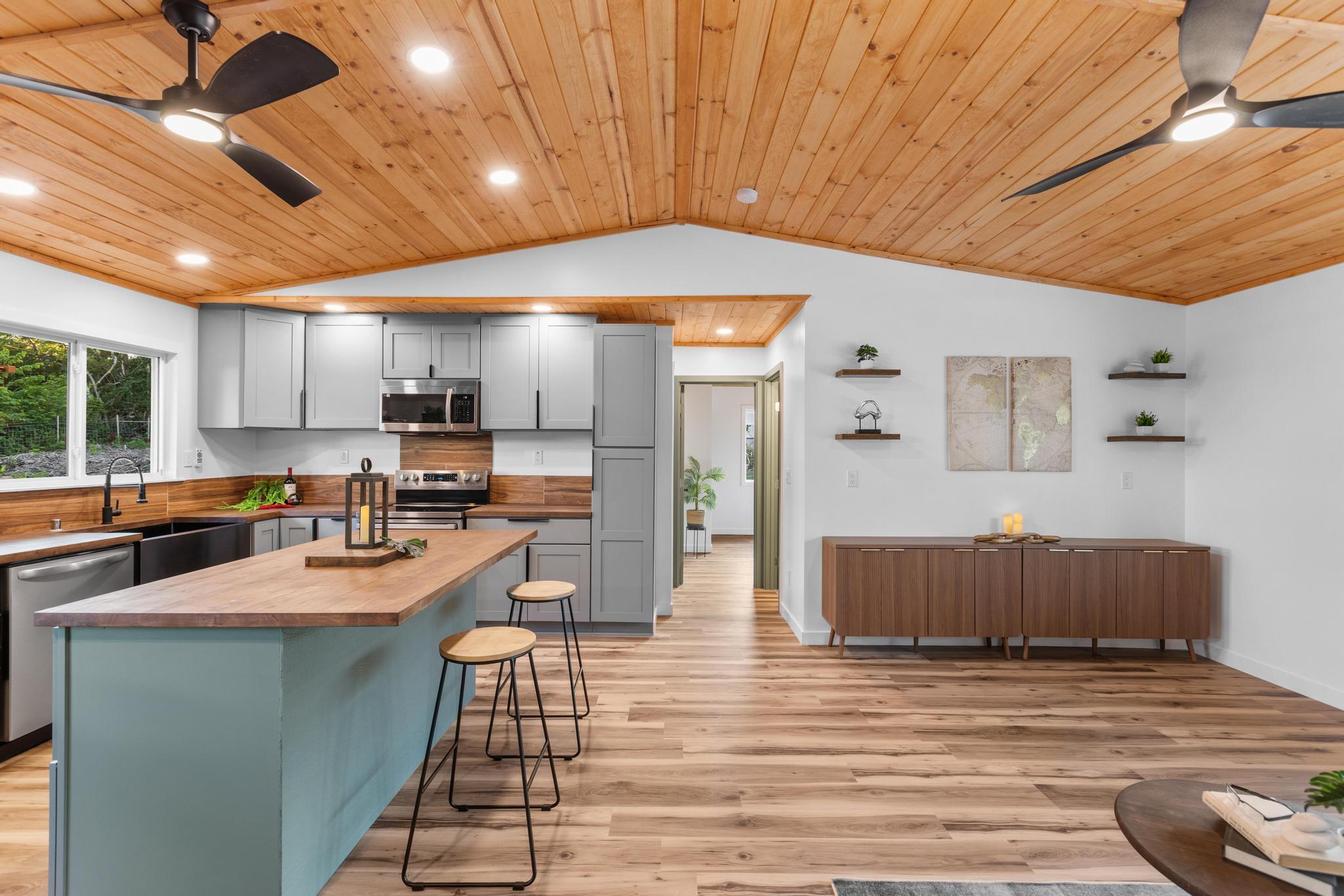 Video: https://show.tours/v/Kr8H4kW Quality Custom New Single level home offering a unique Split floor plan: * Main Living Area, 2 Bedrooms, 1 Bathroom with Separate Entrance/Exit on one side. * Another 1 Bed, 1 Bath with a Wet Bar, Lanai and Separate Entrance on the other side! Great for extended family, ohana or potential rental income! Located on a Dead-End road in an established subdivision of Hawaiian Shores Recreational Estates with amenities: swimming pool, parks, playground, pickleball courts. Highlights ~ Split Floor Plan with a Separate Entrance Guest Suite offering Bathroom and Wet Bar setup ~ Single Level Home with over 1,700 sqft Underroof of Indoor/Outdoor space ~ Vaulted Ceilings in Main Living Area ~ Wood Ceilings throughout! ~ Quality Finishes and Built-ins! ~ Open Style Kitchen with Island and Farm Sink! ~ New Appliances with Refrigerator, Dishwasher, Microwave hood, Range ~ Butcher Block Wood Kitchen Countertops ~ Tiled Showers to the Ceiling and Floating Vanities ~ Luxury Vinyl Plank flooring ~ Vinyl Double Pane Windows ~ Fenced Yard and Gated Entrance ~ Energy Efficient Heat Pump Water Heater ~ Fans with Remotes ~ Painted Concrete 2 Car Carport and Lanai ~ Carport has power setup for a potential Automatic Garage Door (consult with your contractor) ~ Landscaped with Boulders, Hibiscus and starter plants ~ Mail Service to Your House ~ Piped in Water ~ Paved Roads with Cable Internet, TV & Phone available in the area (check cable company) ~ 3 Wood Bed Frame Furniture pieces are included, other items negotiable (except artwork and staging items) ~ Lower down in the subdivision towards the Ocean ~ Lava Zone 2, Lending and Insurance options available (check with your lender directly) Short drive to Pahoa town offering a new Puna Kai Shopping Center and restaurants, schools, post offices, banks, etc. 15-2774 Nenue St, Pahoa HI 96778 ~ MLS 728021