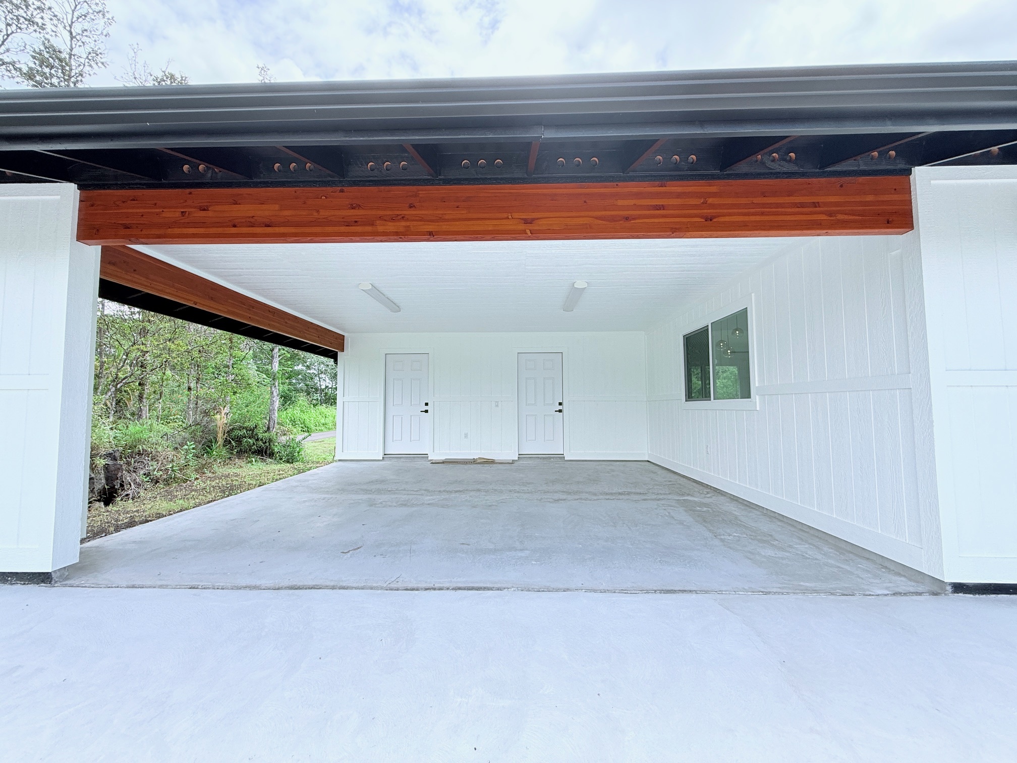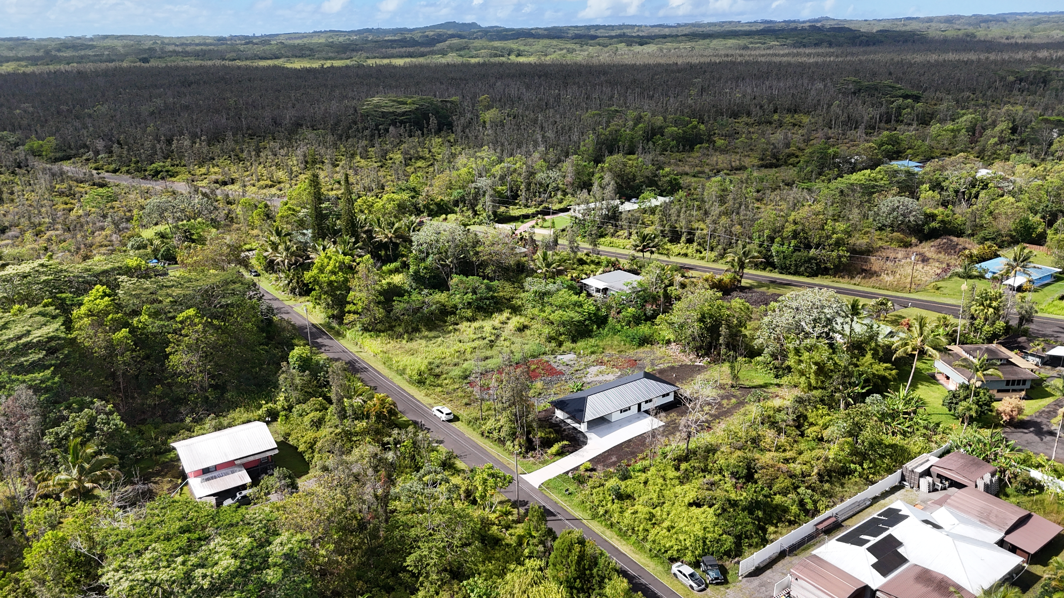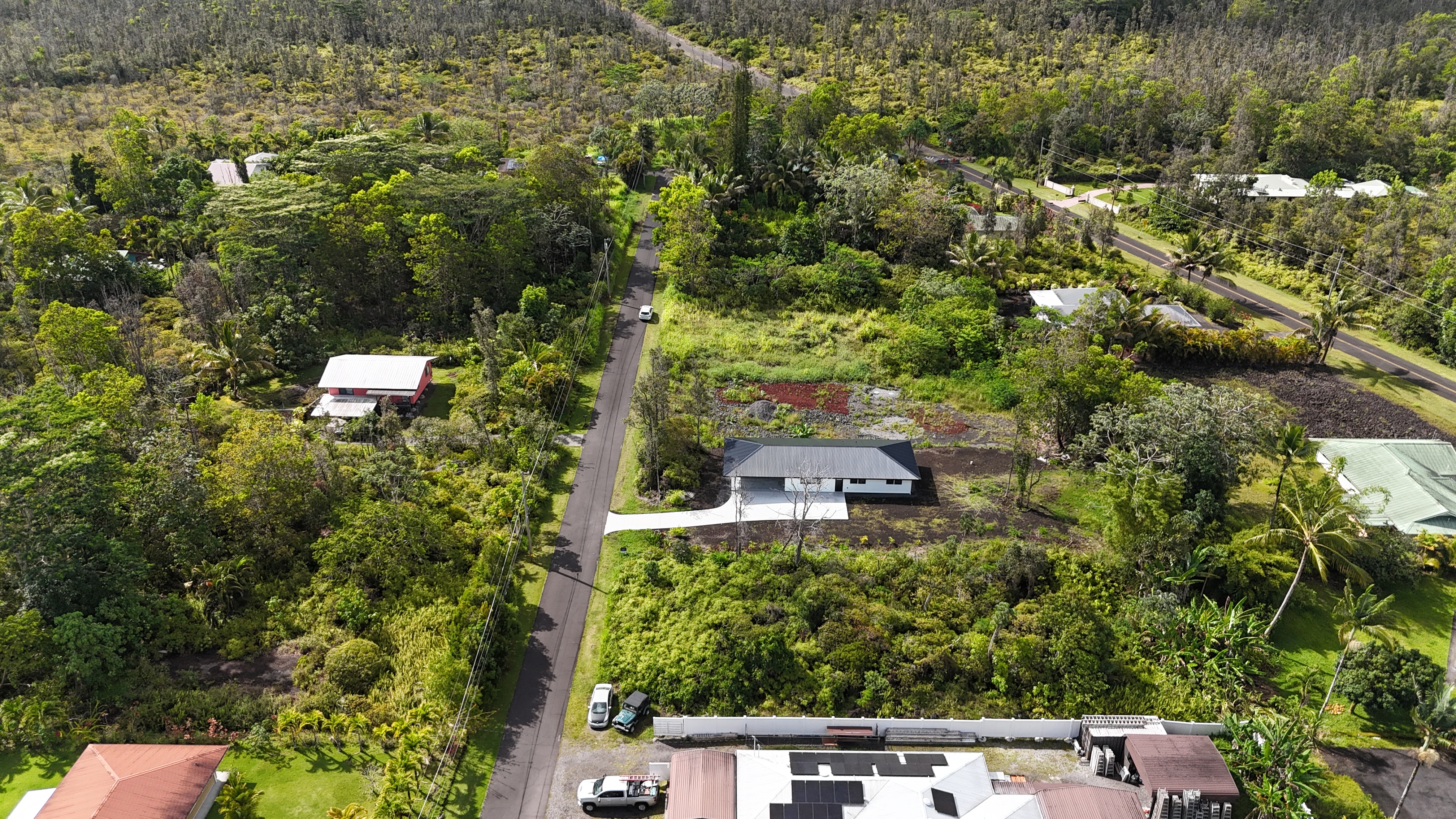 Step into a bright and airy living space with vaulted ceilings and expansive windows that fill the home with natural light. The open concept design connects kitchen, dinning and living perfectly for entertaining or everyday comfort. The kitchen features quartz counter tops, stainless steel GE appliances, high end fixtures, deep stainless farm sink and ample assigned cabinet storage. The spacious laundry room is equipped with washer, dryer, large utility sink in cabinet and upper and lower cabinets with quartz countertop. Custom finished bathrooms feature designer tile work, top-tier fixtures and vanities that create a luxurious feel. Home is thoughtfully set on this larger, elevated lot in the subdivision allowing the breeze to flow through with picturesque views throughout. There is convenient access to the home from the carport which also boasts a large storage room. A concrete driveway begins at the road and goes to the front door for seamless transition. The yard has been tastefully landscaped. This property offers the convenience of a private water system, paved roads and mail delivery. Enjoy community amenities including a recreation center, pool, and parks. All 2 miles from the ocean and ten minutes to Pahoa town. The new Puna Kai shopping center in Pahoa along with schools, restaurants, banks, post office and emergency services provide for all necessities and enjoyment. Also high speed internet available!