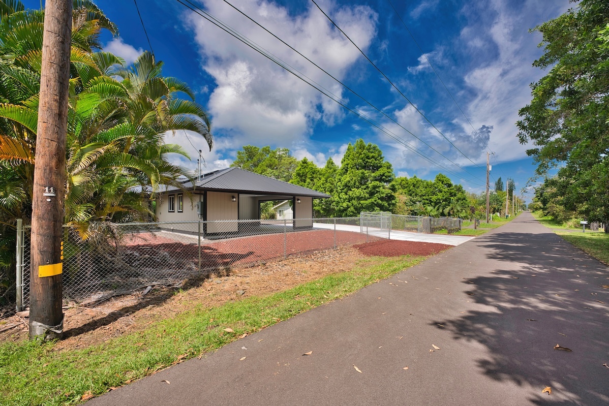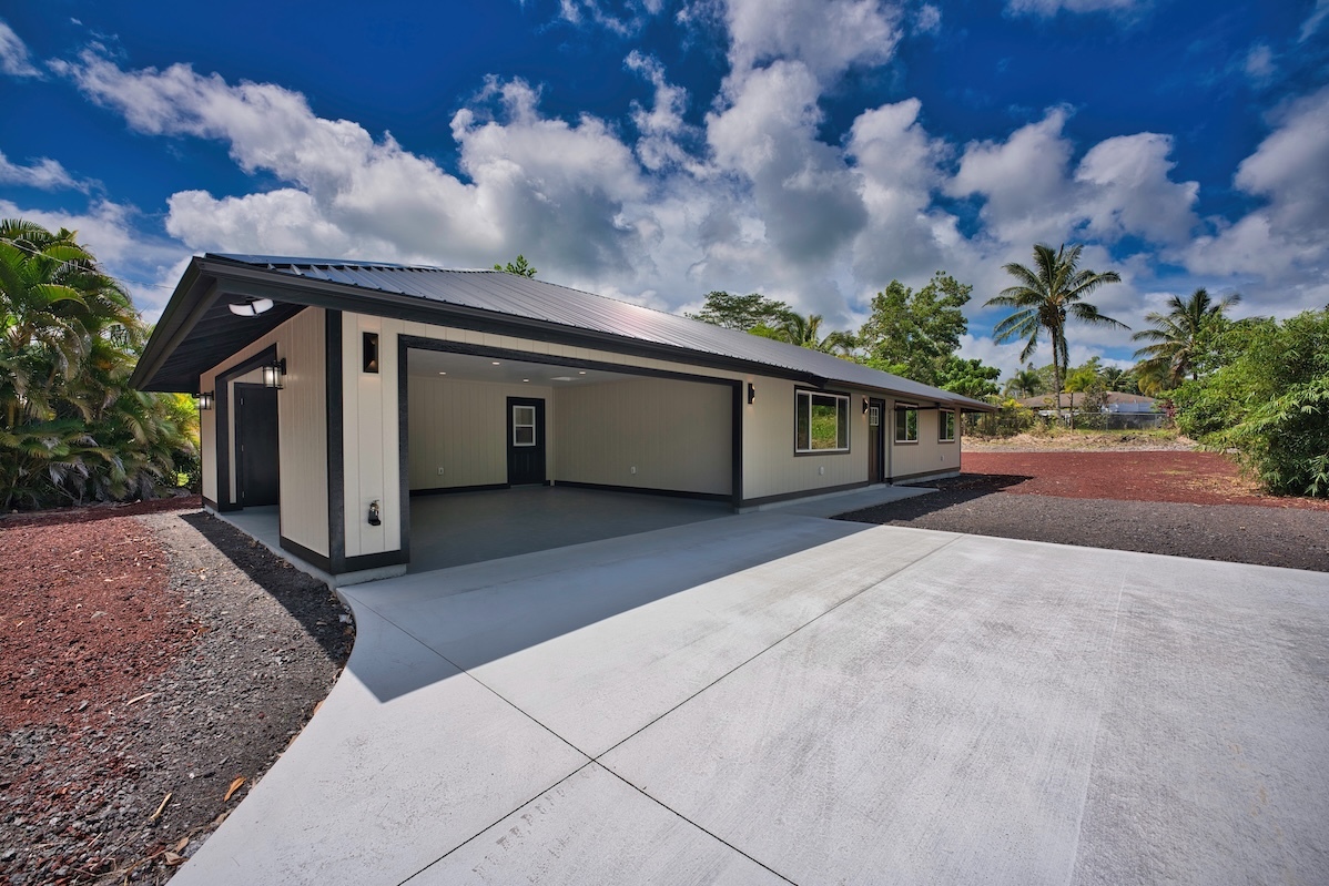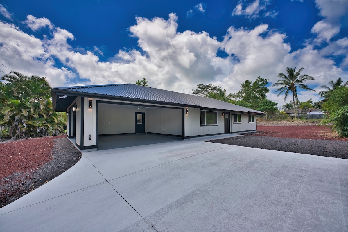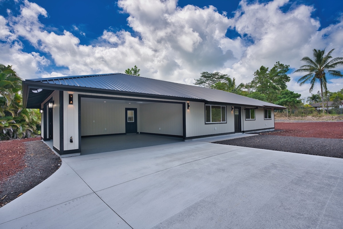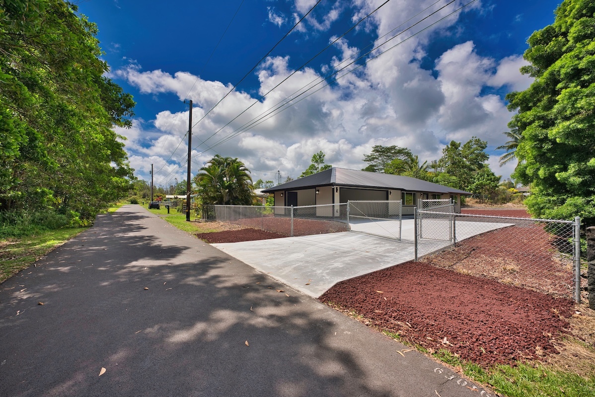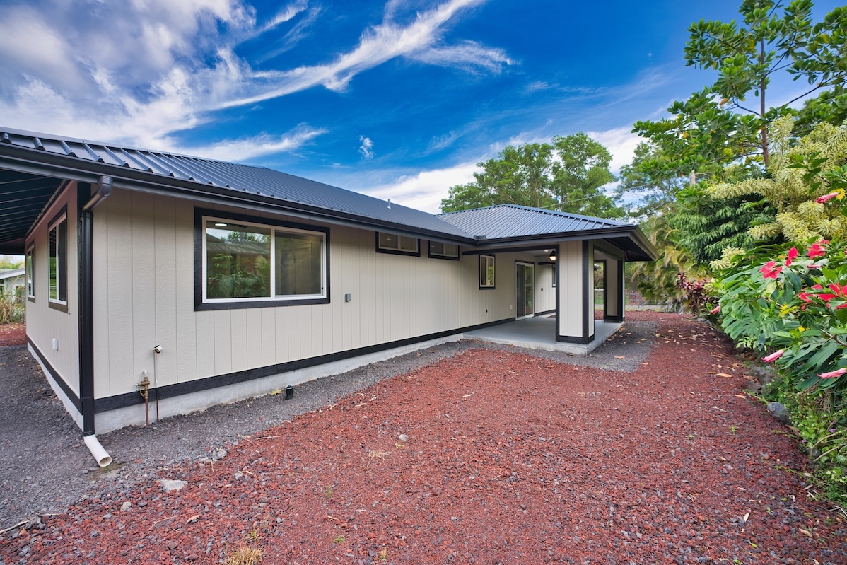 This newly constructed home in Hawaiian Shores Recreational Estates offers a refined take on island living. Designed as a 3-bedroom, 3-bath residence, it blends modern comfort with a functional layout suited for both everyday living and entertaining. Inside, the home features tasteful finishes that create a clean, contemporary feel while complementing its tropical surroundings. Quality materials, a cohesive color palette, and thoughtful design choices bring a sense of calm throughout. The kitchen serves as a central hub, showcasing quartz countertops, custom cabinetry, and an open flow into the living and dining areas. Vaulted ceilings and well-placed windows invite natural light and cooling breezes, enhancing the home’s connection to the outdoors. A highlight of the property is the large covered lanai, an essential element of island living. This generous outdoor space extends the home’s living area, offering the perfect setting for dining, relaxing, or entertaining while enjoying the year-round climate. Hawaiian Shores Recreational Estates is a well-established subdivision known for its private water system and community amenities, including a swimming pool, playground, tennis courts, and park areas. The association is active with many events and activities to entice all ages including, zumba, yoga, water aerobics, and even bingo nights. Just minutes away, the nearby town of Pahoa adds to the appeal with its unique charm and growing conveniences. Pahoa offers local markets, dining, and essential services, while Hilo is about a 30-minute drive for expanded options.