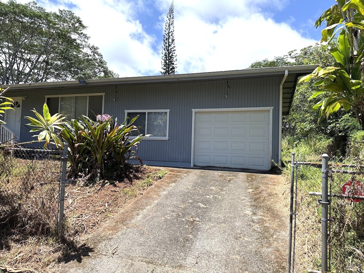 Just $250K for a house AND vacant lot in Hawaiian Shores Recreational Estates! Home needs some TLC but has good bones and is located in a quiet location on an oversized, fully fenced lot at the very end of Mano St. To be sold together with the adjacent vacant parcel for a total of 31,754 sq. ft. (nearly 3/4 acre). Nearest neighbor is 3 lots away. Maximize your elbow room and privacy! Great upside potential! Price includes BOTH parcels. The house was built in 2000. Seller started interior renovations but is unable to finish. Here’s your chance to purchase a good home at a great price and make it shine again. Sold As-Is. Both parcels are oversized for the neighborhood, with the house lot at 17,134 sq. ft. and vacant lot at 14,620 sq. ft. (per county records). As a Hawaiian Shores Recreational Estates owner, you’ll enjoy the conveniences of a community water well system (no unsightly catchment tank), paved streets, mail delivery, cable, Internet, and two parks with amenities, such as a community swimming pool, playground, Pickleball courts, picnic cabanas, activities, and more. Minimal CCRs help maintain the integrity of the neighborhood. Flood zone X. Lava zone 2.