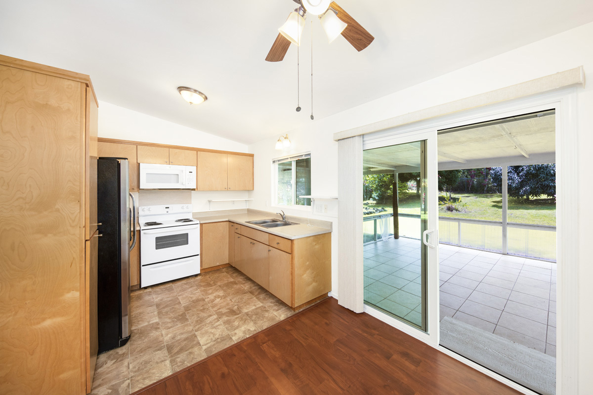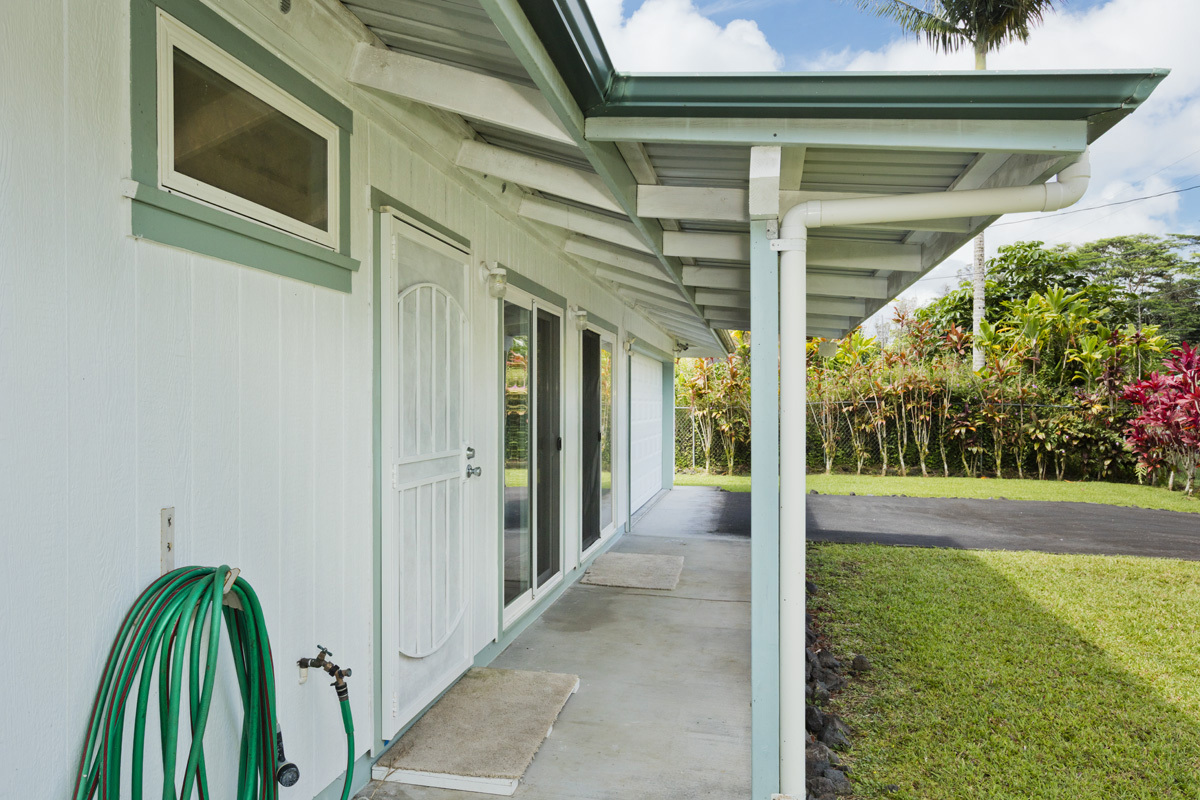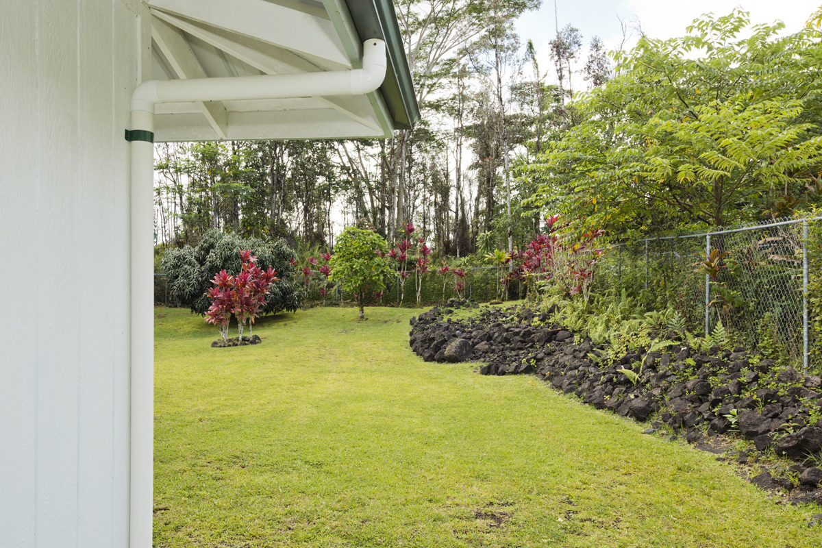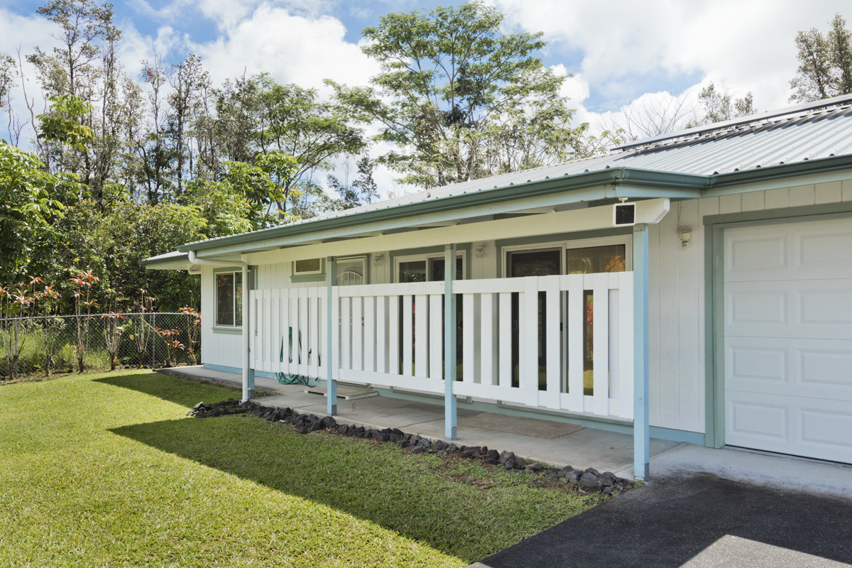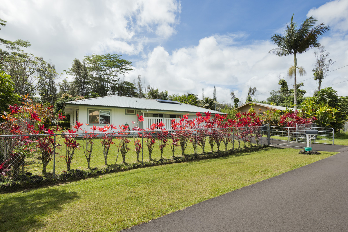 Welcome to this move-in ready and affordable 2-bedroom, 2-bath residence in Hawaiian Shores Recreation Estates. Outdoors, the fully fenced yard is both manageable and vibrant, with mature mango and citrus trees adding seasonal enjoyment. A gated entry leading to the spacious garage with automatic opener provides secure parking and storage. The exterior of the home has just been power-washed. The fully owned 8 panel photovoltaic system complete with Tesla Power Wall, and two solar hot water panels, offer an energy-efficient touch that helps manage utility costs. Inside, a vaulted ceiling elevates the freshly painted living room area, and multiple sliding glass doors fill the space with natural light creating an open, airy ambiance. The kitchen boasts a french door refrigerator, oven range, overhead microwave and ample cabinets including a pantry for storage. An indoor laundry room adds everyday convenience. The primary suite has a walk-in closet and an ensuite bath, featuring a deep soaking tub and separate shower. The floor plan offers both privacy and flexibility, with inviting outdoor spaces that seamlessly connect the indoor living areas with the lush landscaping. Enjoy the expansive rear lanai overlooking the yard – perfect for outdoor dining or casual gatherings. Hawaiian Shores Recreation Estates is known for its well-maintained amenities and sense of community. Residents enjoy access to a private park with a swimming pool, playground, and picnic areas, along with the benefit of a private water system, mail delivery, and active CC&R oversight. Additional information can be found at www.hawaiianshores.org. Conveniently located just minutes from Pahoa town and the Puna Kai Shopping Center, you’ll have easy access to grocery stores, dining, banking, medical services, and more. Move-in ready and thoughtfully appointed, this charming home offers a wonderful opportunity to enjoy the best of East Hawai?i living. Shown by appointment.