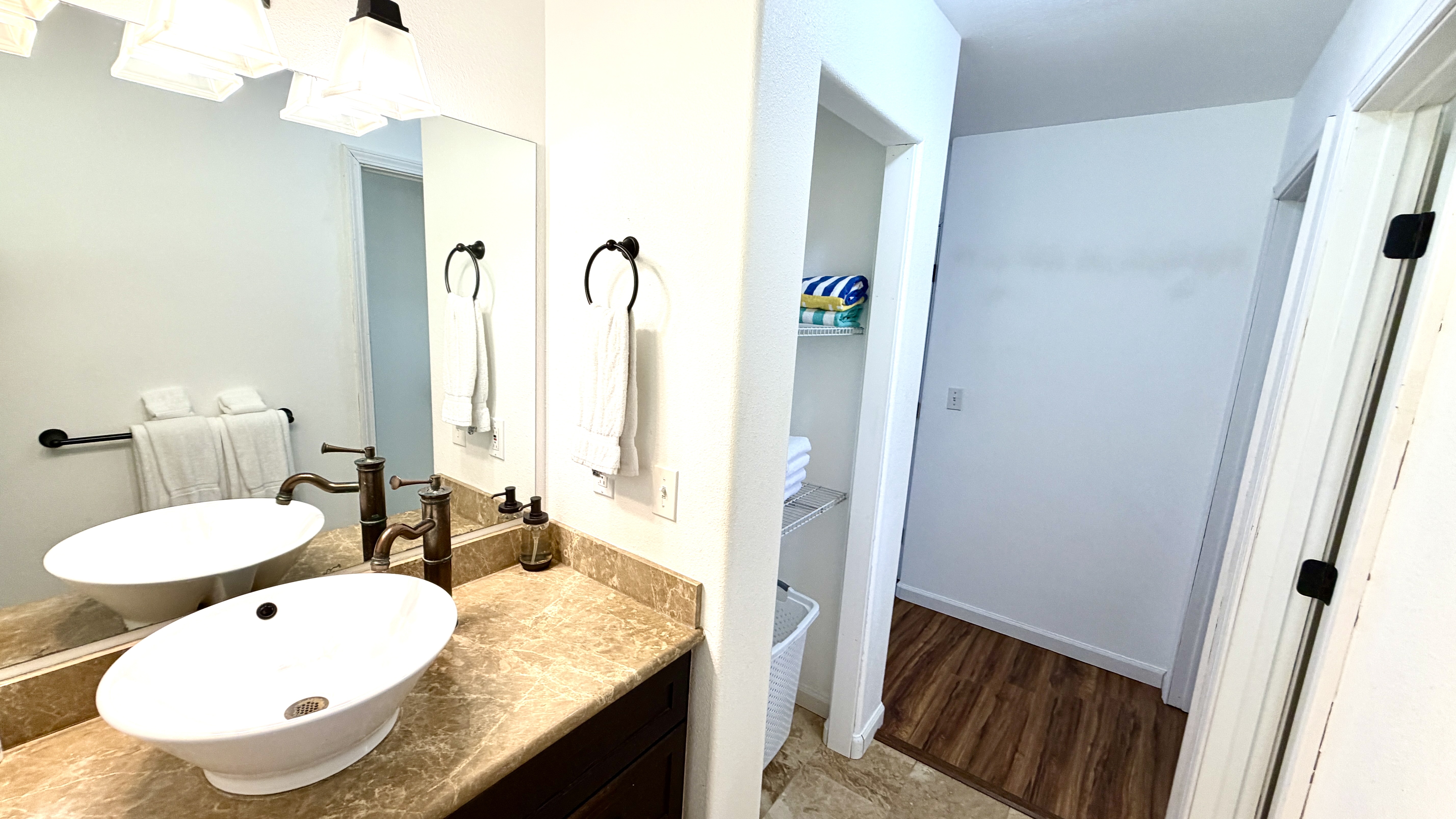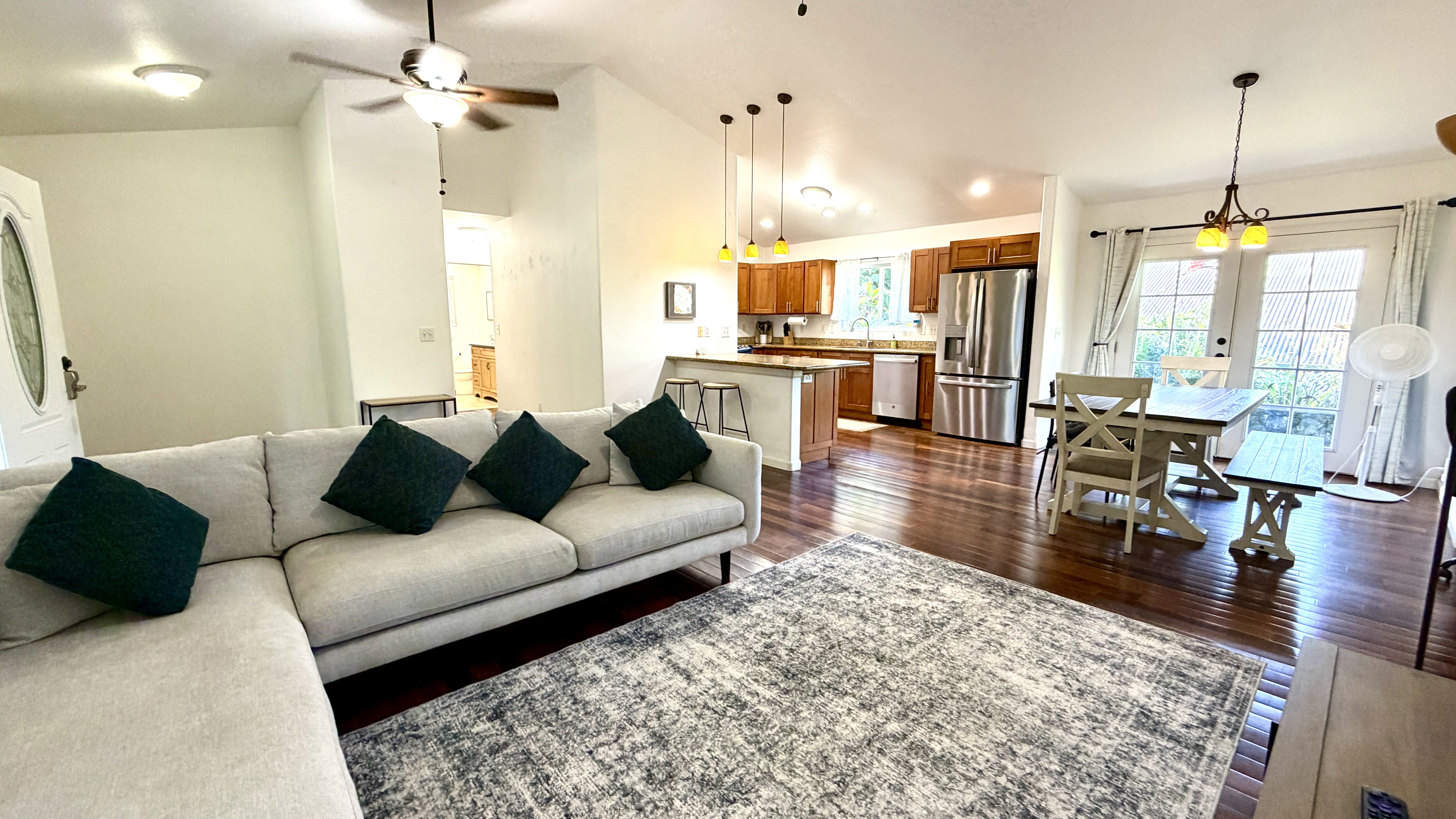 Turn-key, fully furnished coastal home with established rental history. This thoughtfully updated property is ready for immediate use as a primary residence, second home, or continued rental. The home is sold fully furnished and features air conditioning throughout, an enclosed garage, and a private rock wall on three sides for added privacy. The open, functional floor plan is designed for comfortable everyday living. The single-story layout includes three bedrooms and two bathrooms. Two bedrooms and a full bathroom are located on one side of the home, offering flexible space for family or guests. The central living area features an open-concept kitchen, dining, and living space with a breakfast bar, walk-in pantry, and built-in desk area. On the opposite side of the home, a private one-bedroom, one-bathroom suite provides separation and versatility. Hardwood floors, granite countertops, high ceilings and pendant accent lights lend a sophisticated charm to the home. Additional community amenities include private water, mail delivery, and access to Oceanside parks. Located closer to the ocean than many nearby homes, this property offers strong appeal as both a personal residence and an income-producing investment. Three years of rental history are available upon request, and current mid-term rental management may continue for a smooth transition.