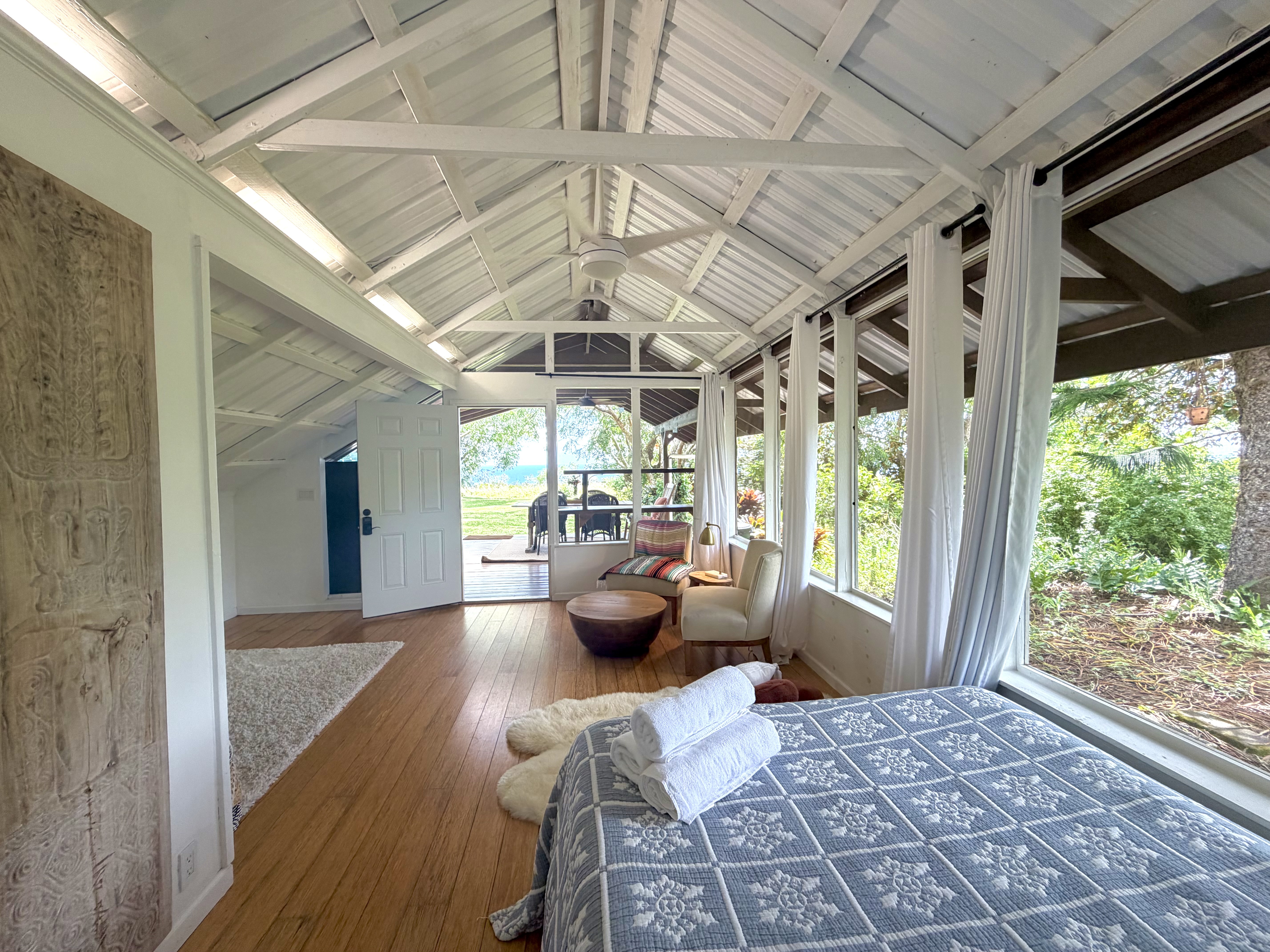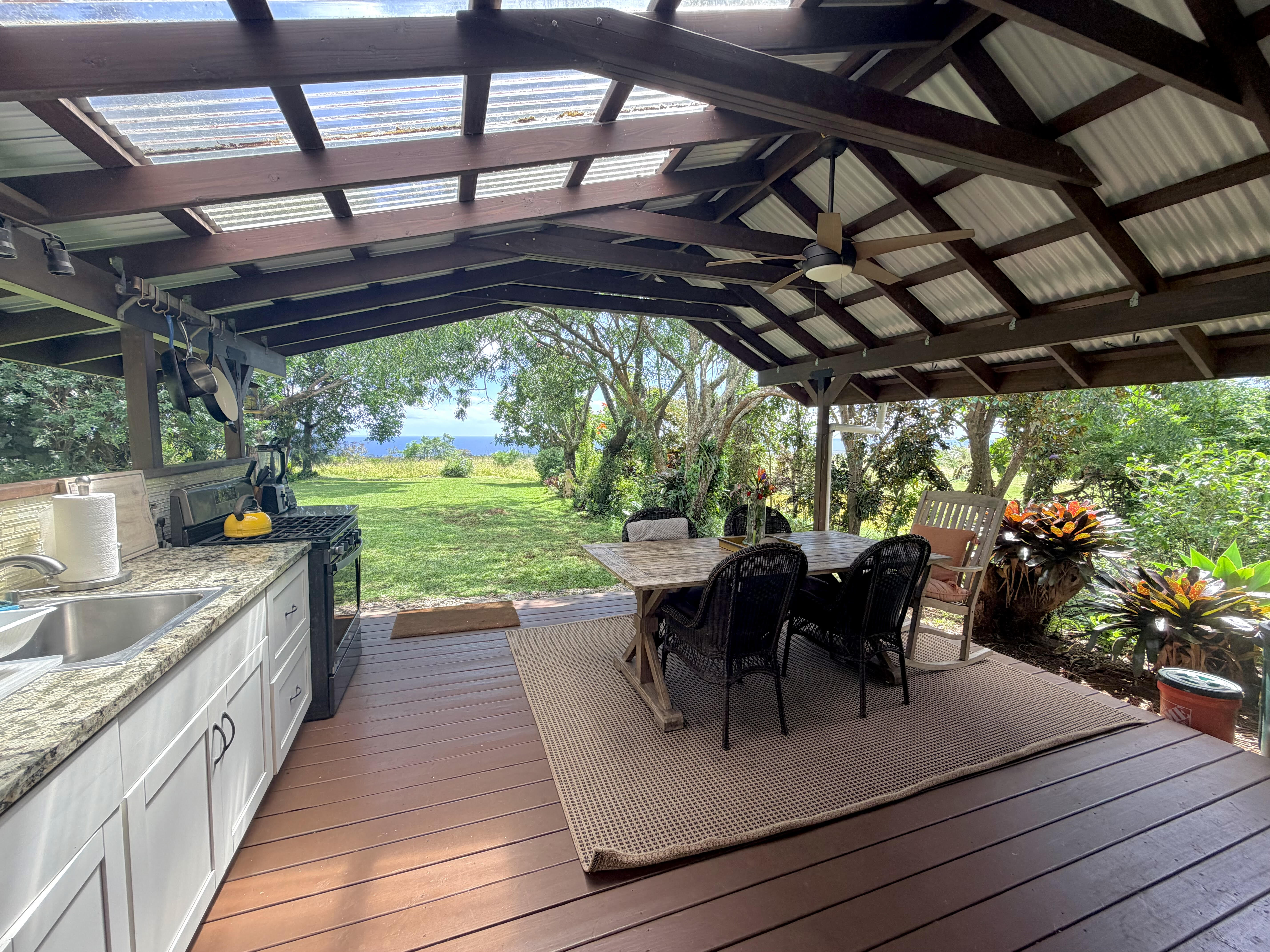 Sundari Wellness Gardens and Campus is a 5-acre sanctuary created for health and wellness. This property is offered for sale on its own ($1,200,000), or together with MLS 721043 , the Sundari Spa (listed for $1,800,000), or both properties together, for $3,600,000. This property features the following: ??“Sun Lodge”: A 4-bedroom, 2-bath house with a massive covered lanai facing the ocean. ??“Rainbow Room”: This building was constructed from 7 modified shipping containers. The ground floor showcases an expansive open-air 1,600 sq ft hardwood dance floor, plus bathrooms, showers, a laundry area, and 800 sq ft of dry storage. The upper floor is home to 4 private bedrooms, a kitchen, living room, dining room, and a sunroom. ??The “Sky Kitchen”: Located behind the Sun Lodge, the separate kitchen is set up to prepare delicious meals for large groups. It is also home to an extra-large food and storage pantry and a 14-person dining area. ??The “Moon Cabin”: A fabulous private lodge tucked amidst lush foliage, an indoor/outdoor kitchen/living/dining area arranged to take in beautiful ocean views. The spacious bedroom features a large walk-in closet and a spa-like bathroom with a luxurious, polished lava-rock soaking tub. ??The “Guest Cabin” is an inviting, open, and bright studio space with a kitchenette set amidst the privacy of gardens. ??The Barn/Classroom: Offers plenty of farm storage plus a classroom for agriculturally geared classes, at the foot of the fenced vegetable and herb gardens. ??Greenhouse: Ready for production! Enjoy the .5 mile walking trail through an Ohia forest and gardens, multiple meditation ponds, statues, medicinal gardens, a fire pit, and many glamping sites. All this with 180-degree ocean views! Off-grid: water catchment, a well, solar power, and wifii or satellite internet. Sundari is close to Pahoa, and activities along the famous “Red Road”, a beautiful coastal roadway.
