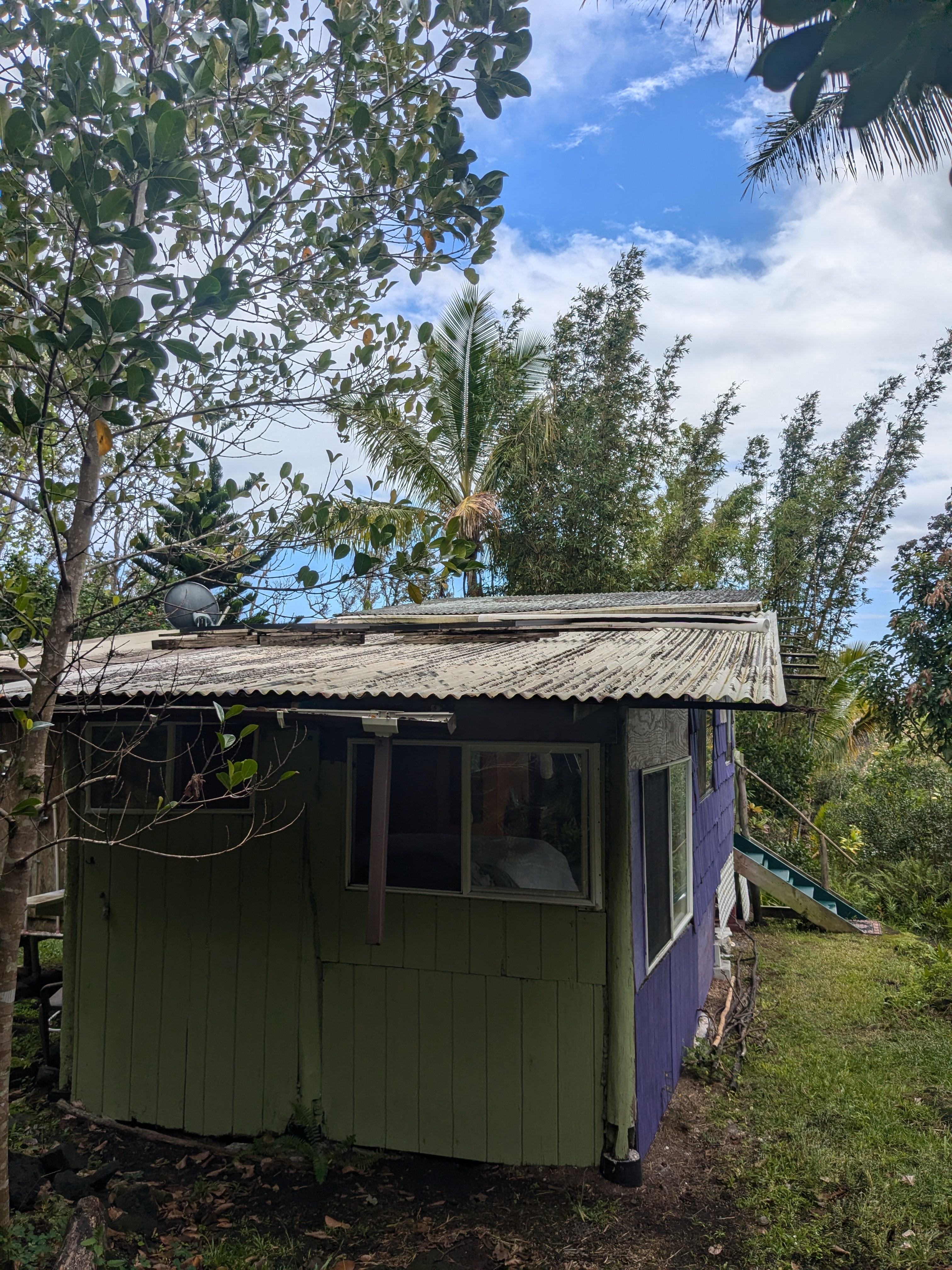 Rare opportunity to own one acre, off grid living atop the great Kaimu- Makena Homestead hill. Enjoy the vibrant communities of neighbor Sundari Farms for yoga, cacao ceremonies, dance, and spa. A short drive down the hill to Uncle Robert's farmers market and beautiful Kehena Black Sand Beach along the Red Road. Live freely and create your dream life! Mature Avocado, Mango, Jackfruit, Coconut, Abiu trees surround the off-grid cabin. Old growth ohia trees and bamboo enhance the lush tropical landscape of Kaimu. With an elevation of 300 feet the trade winds sway the heat away and full sunlight beams down creating the perfect weather! Windows all around to soak up the colorful landscape, no screen walls here. Propane on demand, hot water and an outdoor lua. Propane refrigerator is included. Enjoy cooking in the separate kitchen lanai, enjoy the easy off grid lifestyle in Paradise! Owner will consider owner financing with a large down payment. Don't let this Kaimu gem slip by!