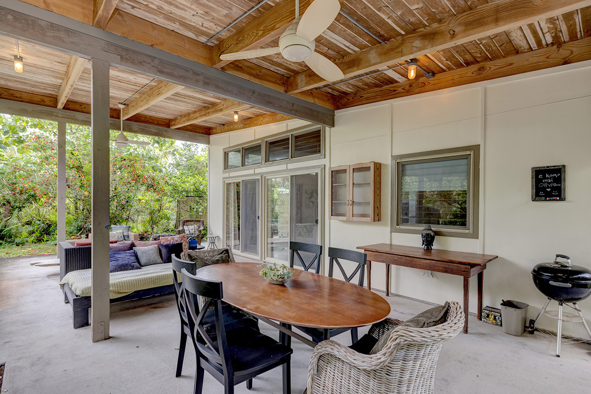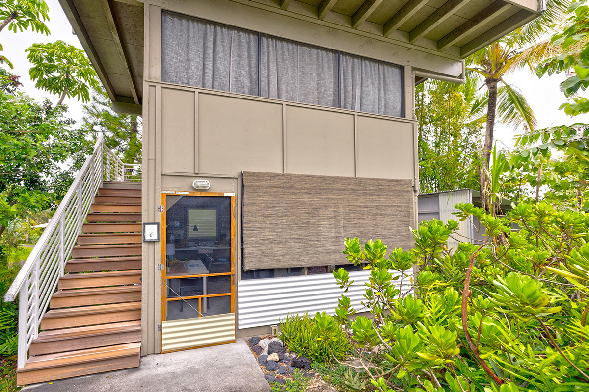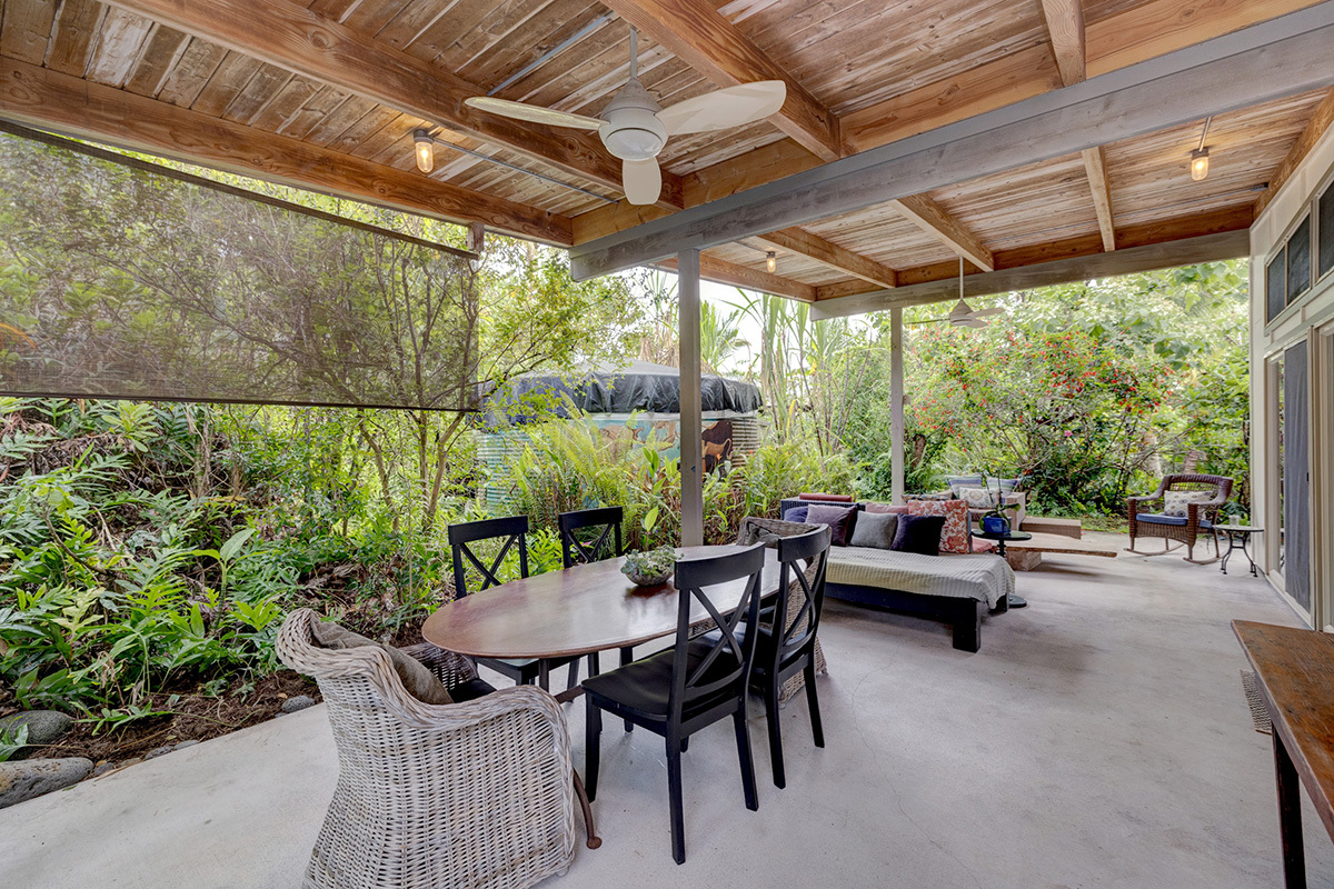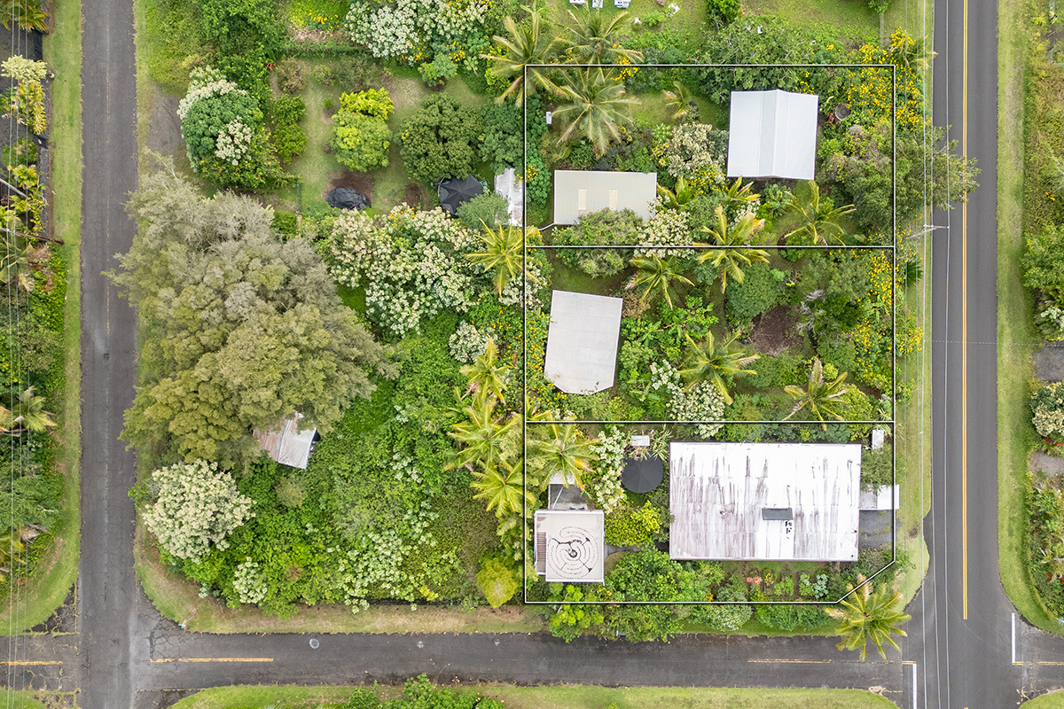 Wai Mana is an exceptional sanctuary–an established organic farm and thriving turnkey vacation rental set within an ocean-side community where privacy, beauty, and intention come together. Designed for the discerning buyer, this estate offers three distinct living spaces plus a dedicated office, all surrounded by abundant raised garden beds, flourishing fruit trees, vibrant tropical foliage, and complete seclusion. The main residence provides 1,232 sq ft of refined interior living and an impressive 896 sq ft lanai–an ideal venue for elevated entertaining amid the immersive food forest. The interior features a full kitchen with sleek stainless steel countertops, a spacious living area anchored by a wood-burning stove, and a beautifully designed bathroom with direct access to the lanai for seamless indoor-outdoor living. The layout of the main residence offers options for two private sleeping areas or a one bedroom and a studio unit. A permitted private multi-story retreat sits at the back of the property. The retreat is open and airy - perfect for Hawaii. Inside, on the ground floor, is a relaxed living area and wet bar. Sleeping quarters on the second floor. A 424 sq ft rooftop deck on the third level is a perfect place for stargazing, sunrise meditation, and taking in sweeping ocean views. Completing Wai Mana are two adjacent parcels listed separately - MLS 725534 AND MLS 725535. Whether you seek a private retreat, a multi-generational estate, or an opportunity to expand, this property presents limitless possibilities. The craftsmanship is timeless, the environment restorative, and the lifestyle unmatched.