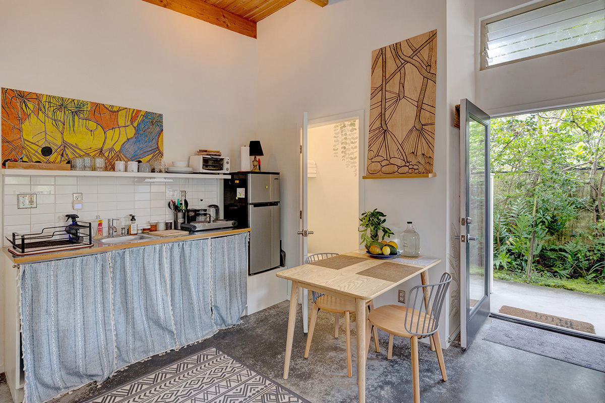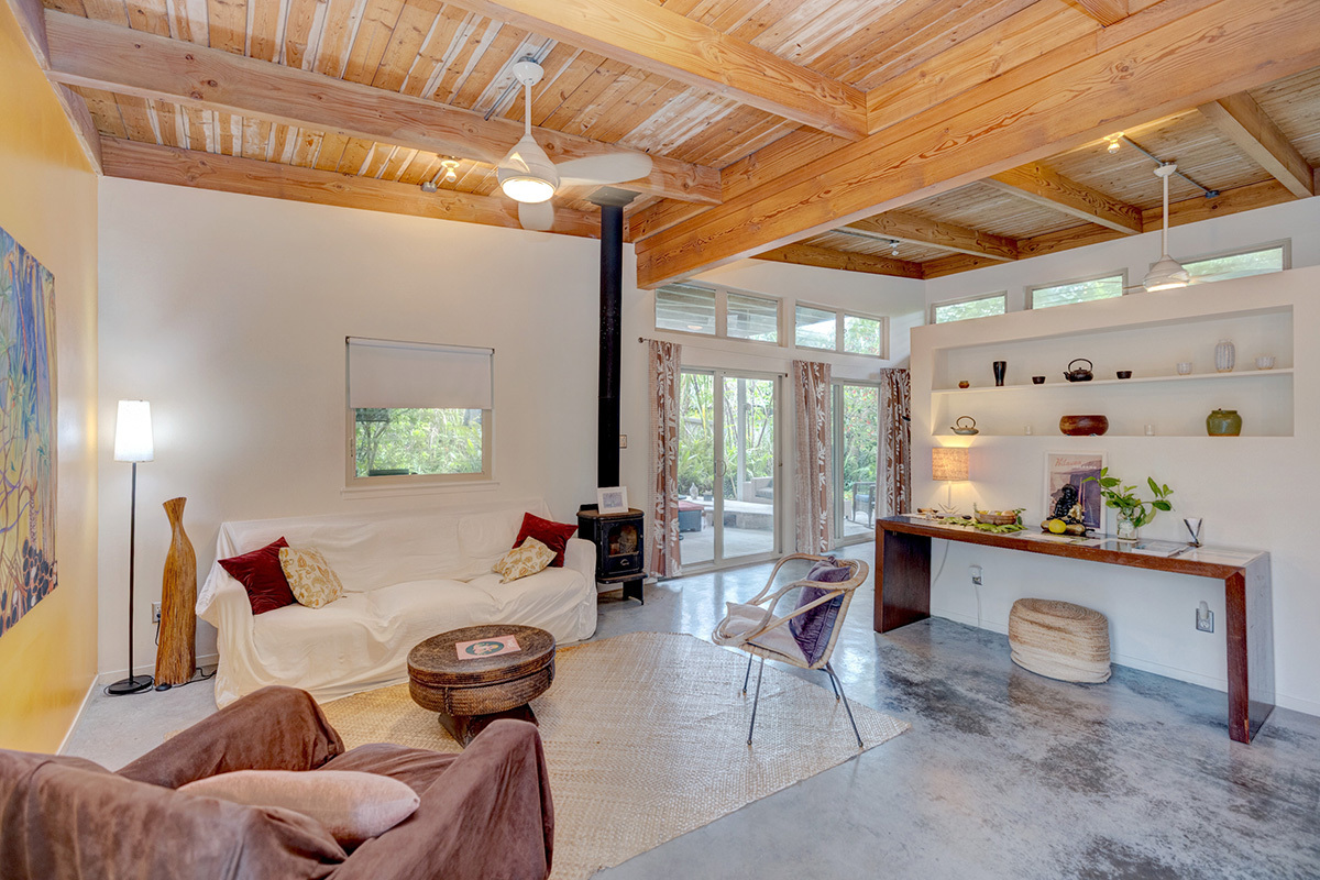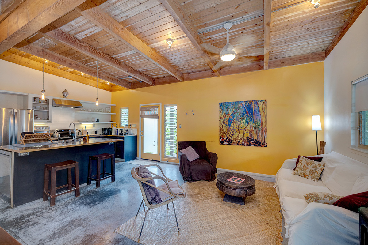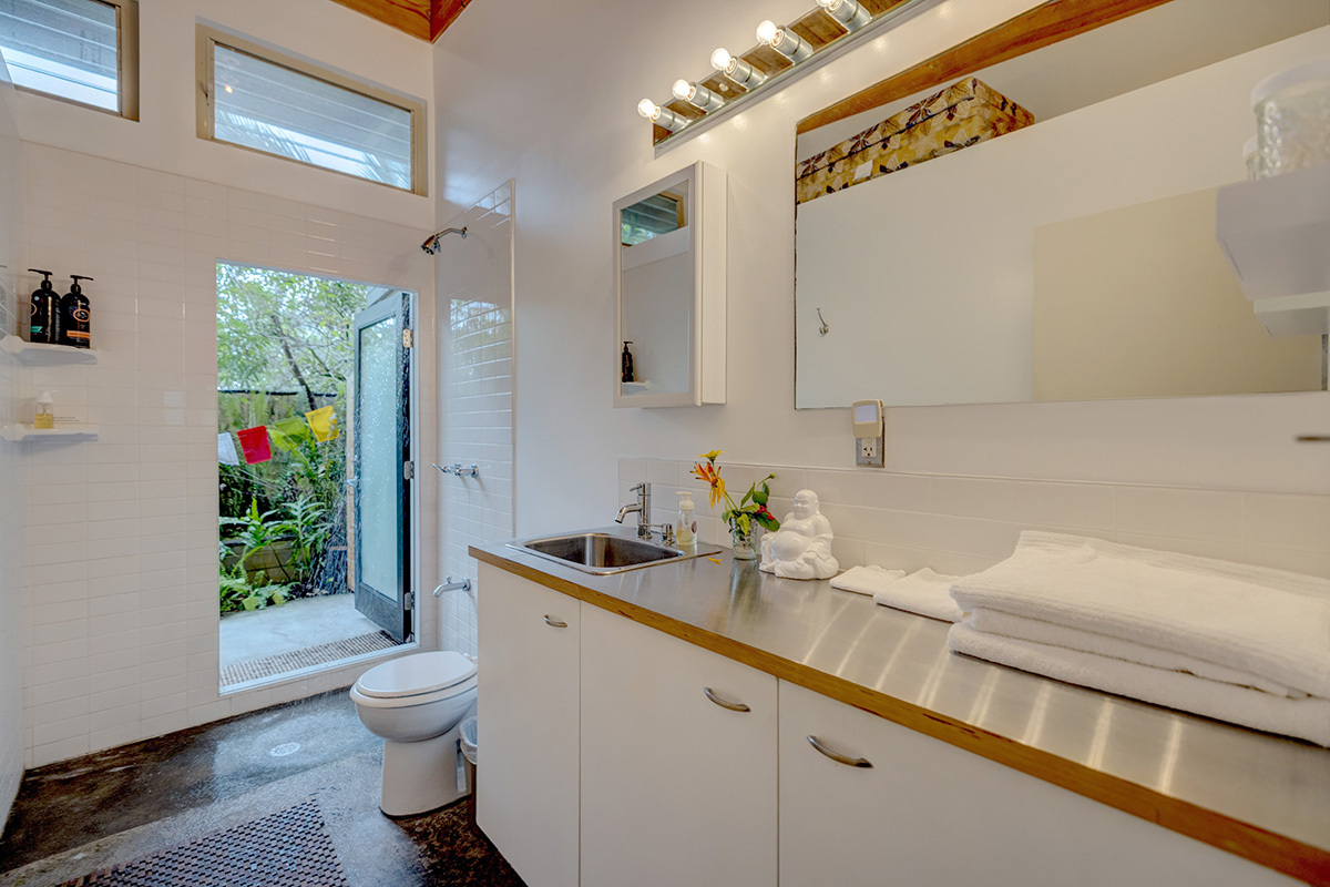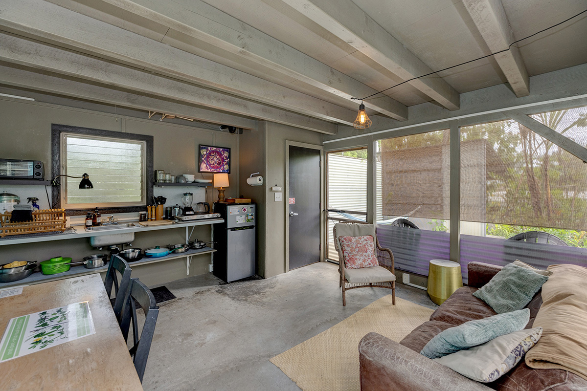 Wai Mana is an exceptional sanctuary–an established organic farm and thriving turnkey vacation rental set within an ocean-side community where privacy, beauty, and intention come together. Designed for the discerning buyer, this estate offers three distinct living spaces plus a dedicated office, all surrounded by abundant raised garden beds, flourishing fruit trees, vibrant tropical foliage, and complete seclusion. The main residence provides 1,232 sq ft of refined interior living and an impressive 896 sq ft lanai–an ideal venue for elevated entertaining amid the immersive food forest. The interior features a full kitchen with sleek stainless steel countertops, a spacious living area anchored by a wood-burning stove, and a beautifully designed bathroom with direct access to the lanai for seamless indoor-outdoor living. The layout of the main residence offers options for two private sleeping areas or a one bedroom and a studio unit. A permitted private multi-story retreat sits at the back of the property. The retreat is open and airy - perfect for Hawaii. Inside, on the ground floor, is a relaxed living area and wet bar. Sleeping quarters on the second floor. A 424 sq ft rooftop deck on the third level is a perfect place for stargazing, sunrise meditation, and taking in sweeping ocean views. Completing Wai Mana are two adjacent parcels listed separately - MLS 725534 AND MLS 725535. Whether you seek a private retreat, a multi-generational estate, or an opportunity to expand, this property presents limitless possibilities. The craftsmanship is timeless, the environment restorative, and the lifestyle unmatched.