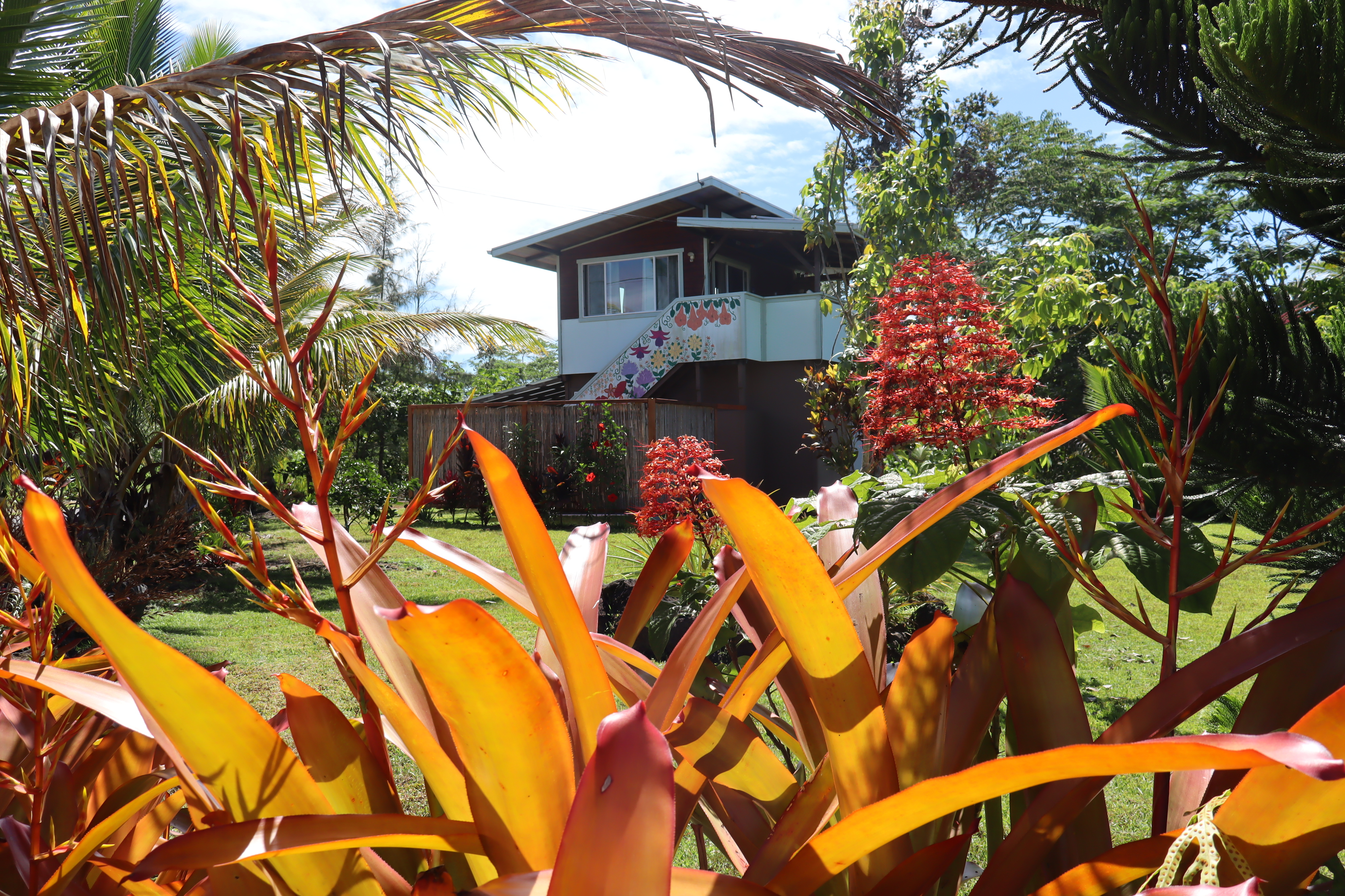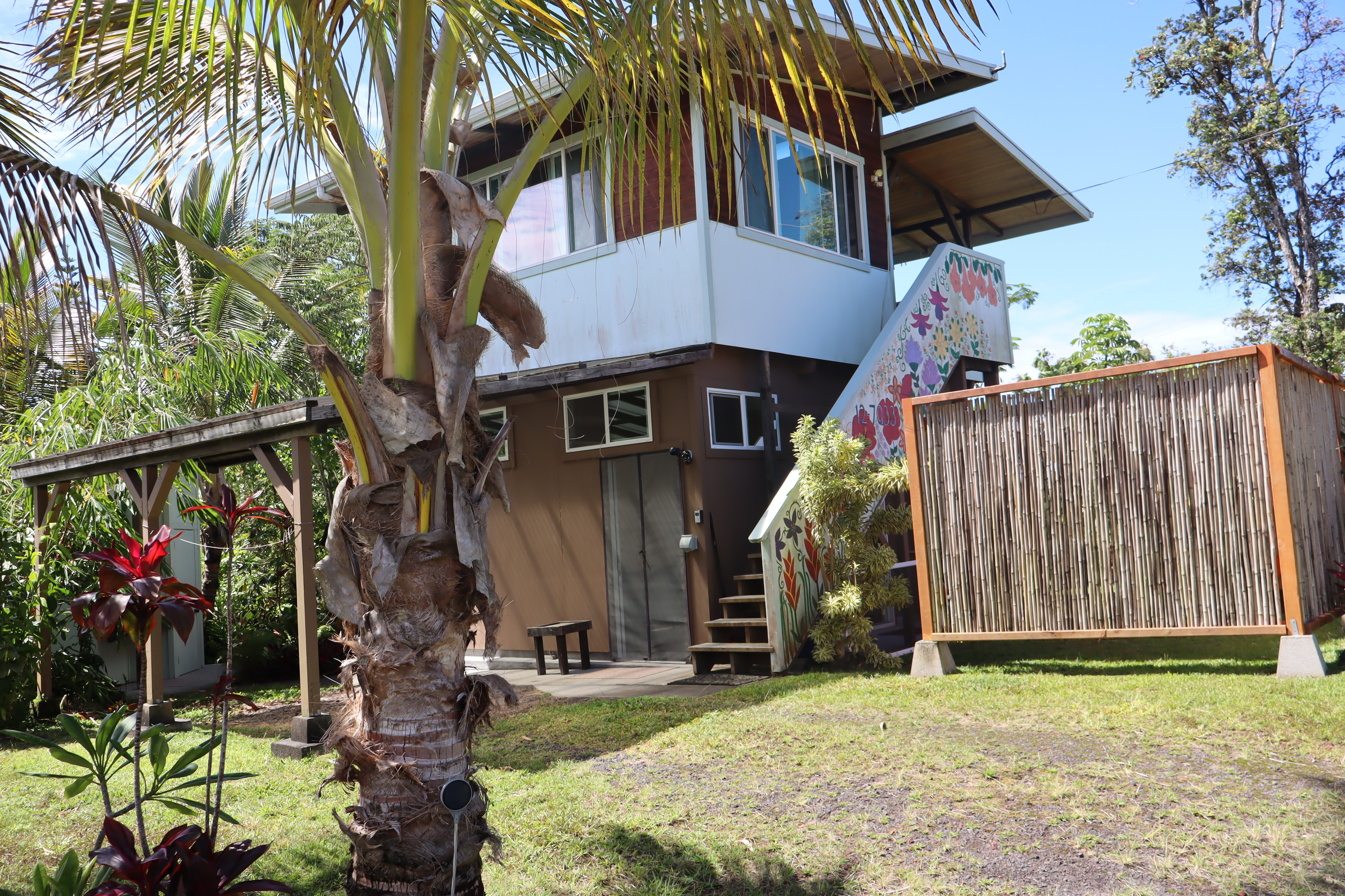 No cookie cutter house here. This very unique design is perfect for affordable off-grid Hawaii living. Located just one mile from famous Kehena Black Sand Beach, the home sits like a treehouse in a quiet neighborhood of friendly people surrounded by beautiful tropical foliage.