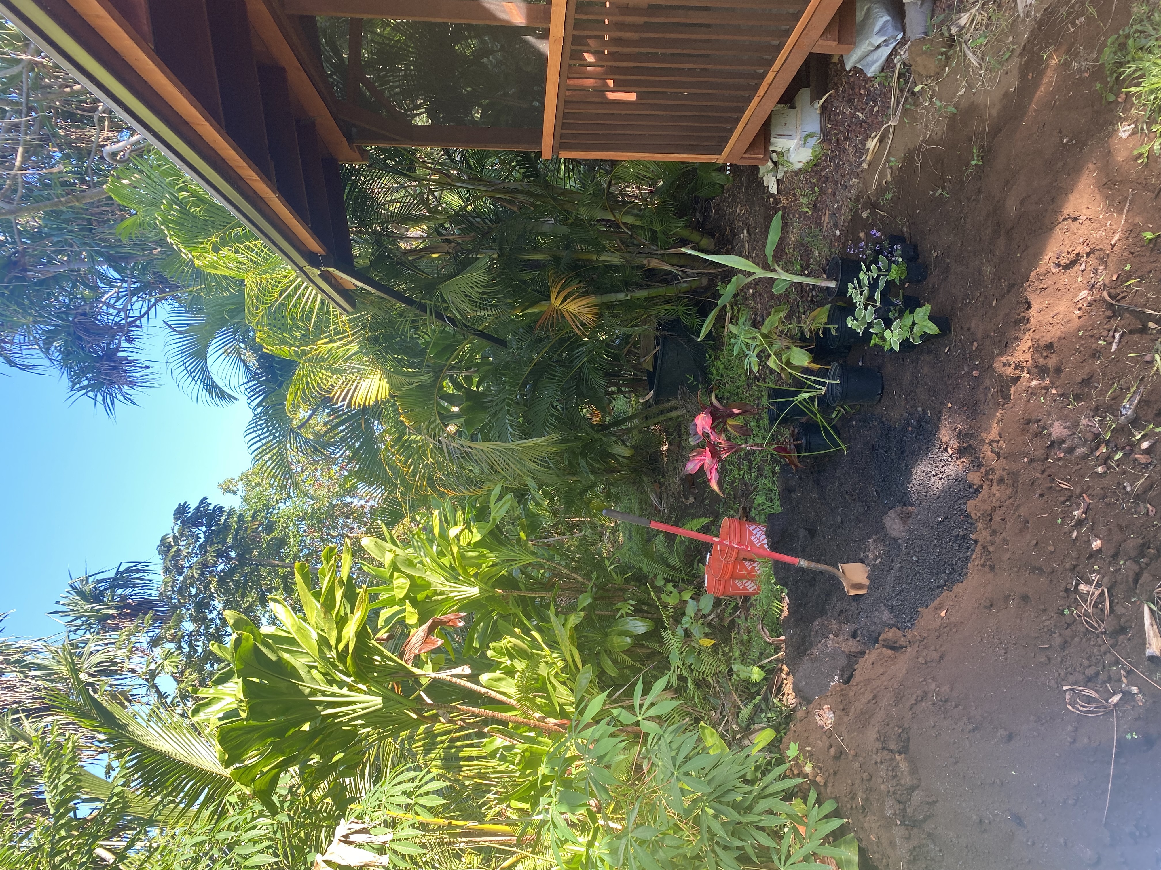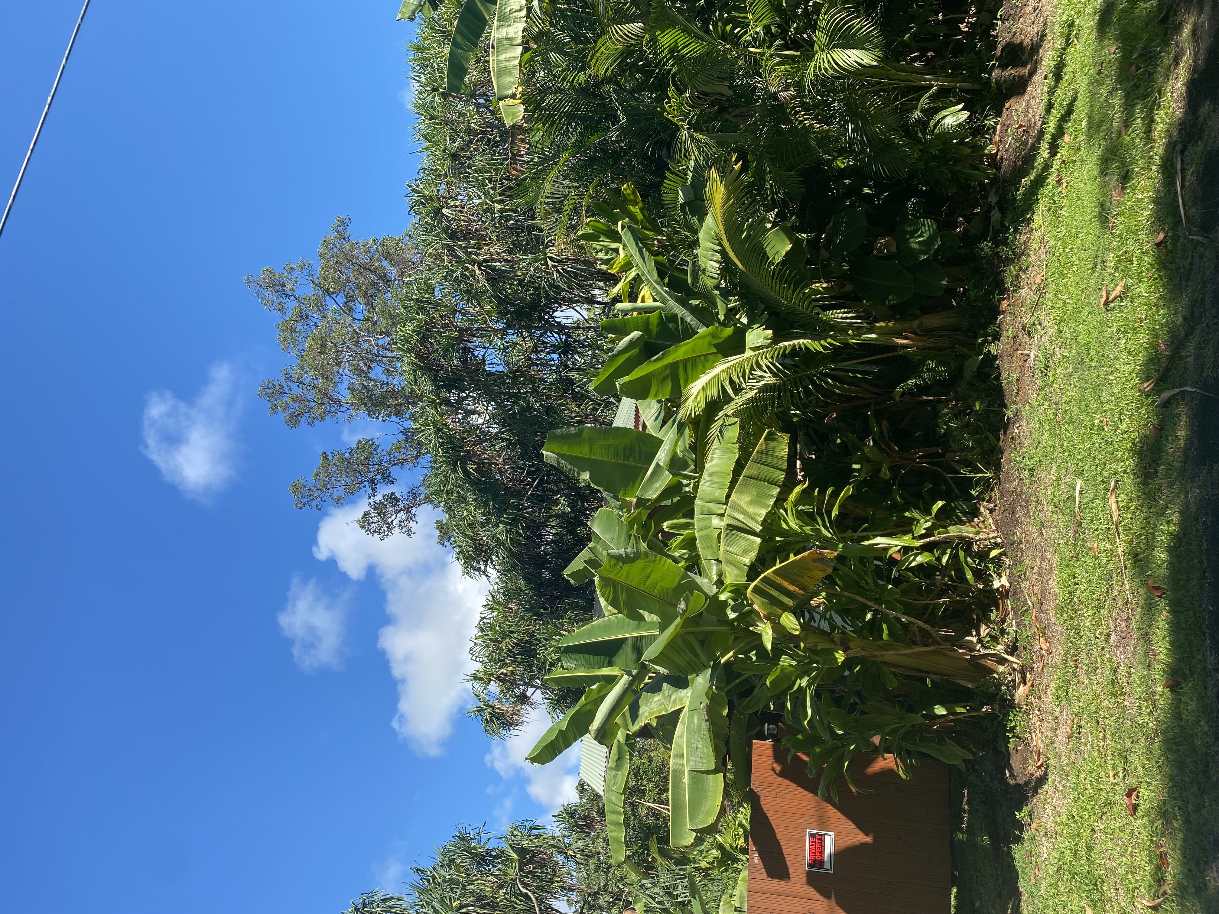 Wildlife abounds here: coqui frogs sing at dusk, geckos dart among the trees, and native birds thrive. The endangered Hawaiian hawk (‘Io) is a frequent visitor, soaring gracefully above the property. Three magnificent Ohia trees – believed to be over 100 years old and nearly 60 feet tall – stand as guardians of this magical landscape.