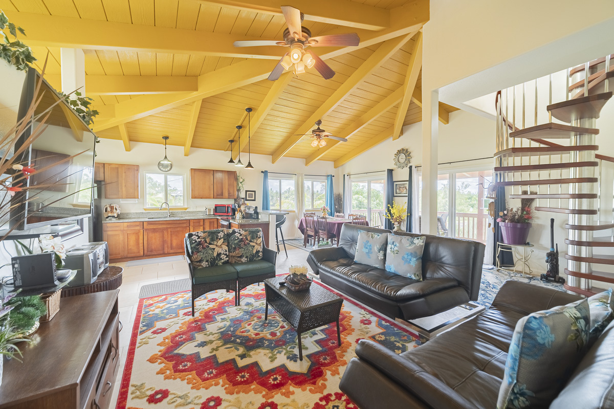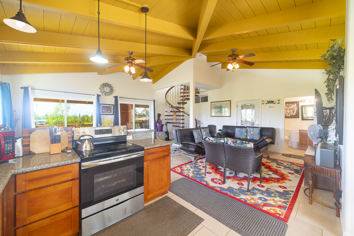 Welcome to this stunning and versatile property, a licensed Short-Term Vacation Rental (STVR), offering endless possibilities for accommodation and rental potential. Boasting 4 bedrooms and 3 1/2 baths, this home has been thoughtfully designed to provide flexible living arrangements, making it an investment opportunity As you step inside, you'll find the main unit on multi levels. The lower level has 2 bedrooms and a full bath. A convenient interior stairwell leads you to the main living area, which showcases an inviting open concept design. The full kitchen is equipped with modern appliances and the living room is bathed in natural light thanks to the abundance of windows and showcases beautiful open beam ceilings. Slide open the glass doors, and you'll be greeted by the lanai, where you can relax and relish in the gentle tropical breezes. This outdoor oasis provides the perfect setting for enjoying your morning coffee or hosting gatherings with family and friends. Upstairs, a unique loft area awaits, accessed by a handcrafted spiral staircase. This versatile space can be utilized in various ways, including as an additional sleeping area for guests. The third bedroom is a private suite, complete with its own kitchenette and full bath. This self-contained unit provides privacy and convenience, making it an excellent option for guests seeking a more independent stay. Additionally, the fourth bedroom offers a private entrance and bath, currently utilized by the caretaker. This separate living space adds another layer of flexibility to the property. Property also includes a leased photo-voltaic system which provides savings on your monthly electrric bill. Beyond its versatile layout, this home is located in a desirable location, surrounded by the beauty of its tropical surroundings and proximity to Kahena Beach. ** Take a look at the property video to fully appreciate this home **
