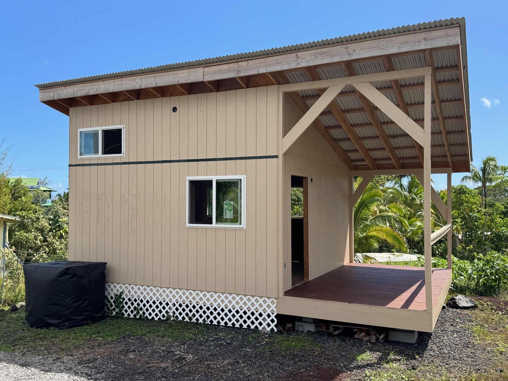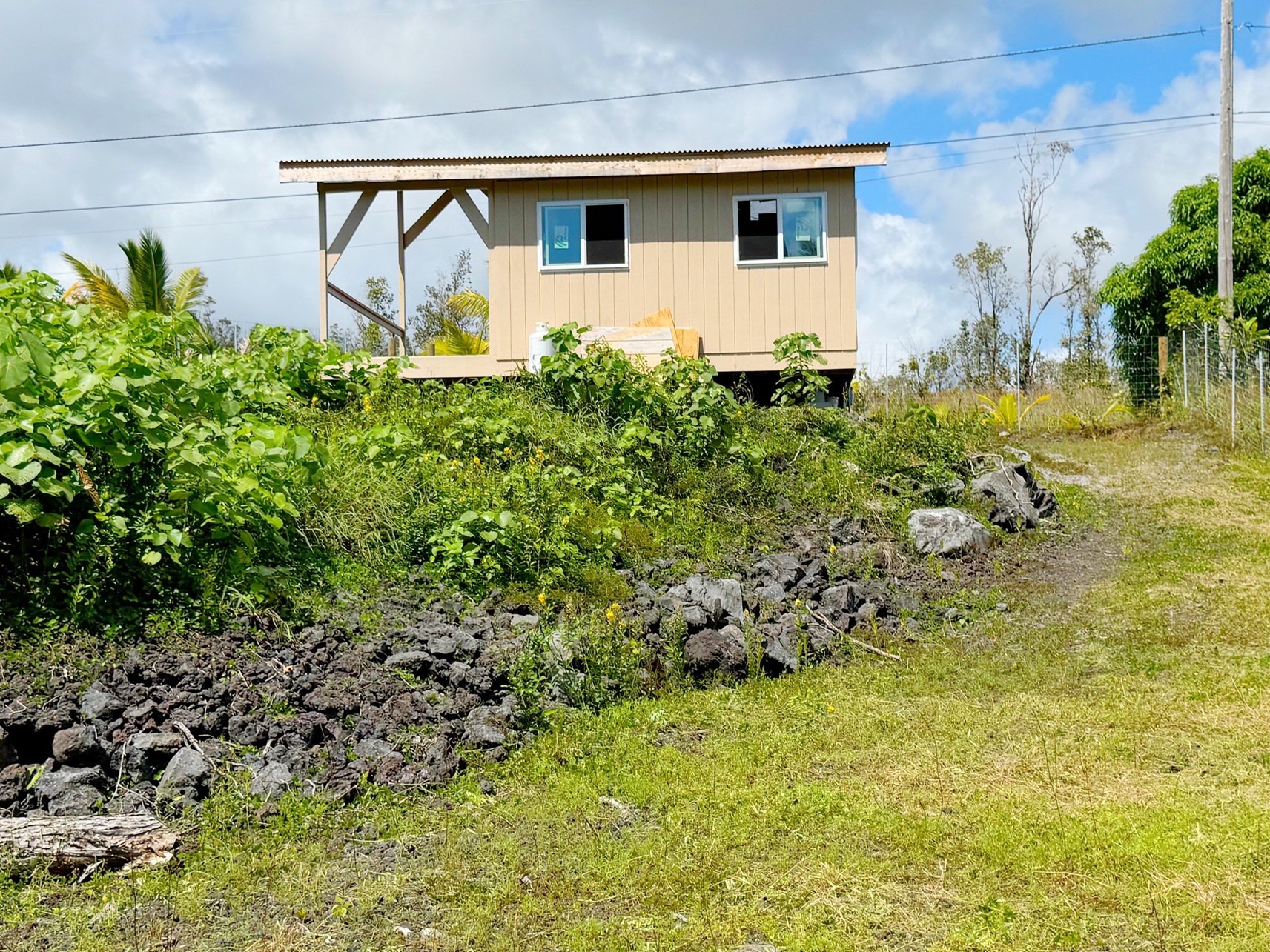 Kalapana Sea View Estates: Your Affordable Oceanside Oasis. Dreaming of a peaceful, oceanside lifestyle in Hawaii? Want to save a lot by finishing it yourself? Look no further! This privately located property in Kalapana Sea View Estates has done the heavy lifting for you. Now, you can customize it to your taste: * 16' X 16' + 6' X 16' Covered Lanai, about 352 sq. ft. under roof. *Electric wiring and Plumbing are roughed in. *Septic Tank and Leach Field are in place. *Fully Fenced and Gated. *Privacy on the edge of the subdivision, across from huge vacant acreage. Located near the stunning black sand beach of Kehena, this property features easy access to paved roads and nearby amenities, all while immersing yourself in the natural beauty of Hawai'i. With no HOA or CC&Rs, you'll have the freedom to customize your property as you see fit. The low annual community dues of $100 ensure that the neighborhood's three parks remain well-maintained. The roadways are paved, County owned and maintained.