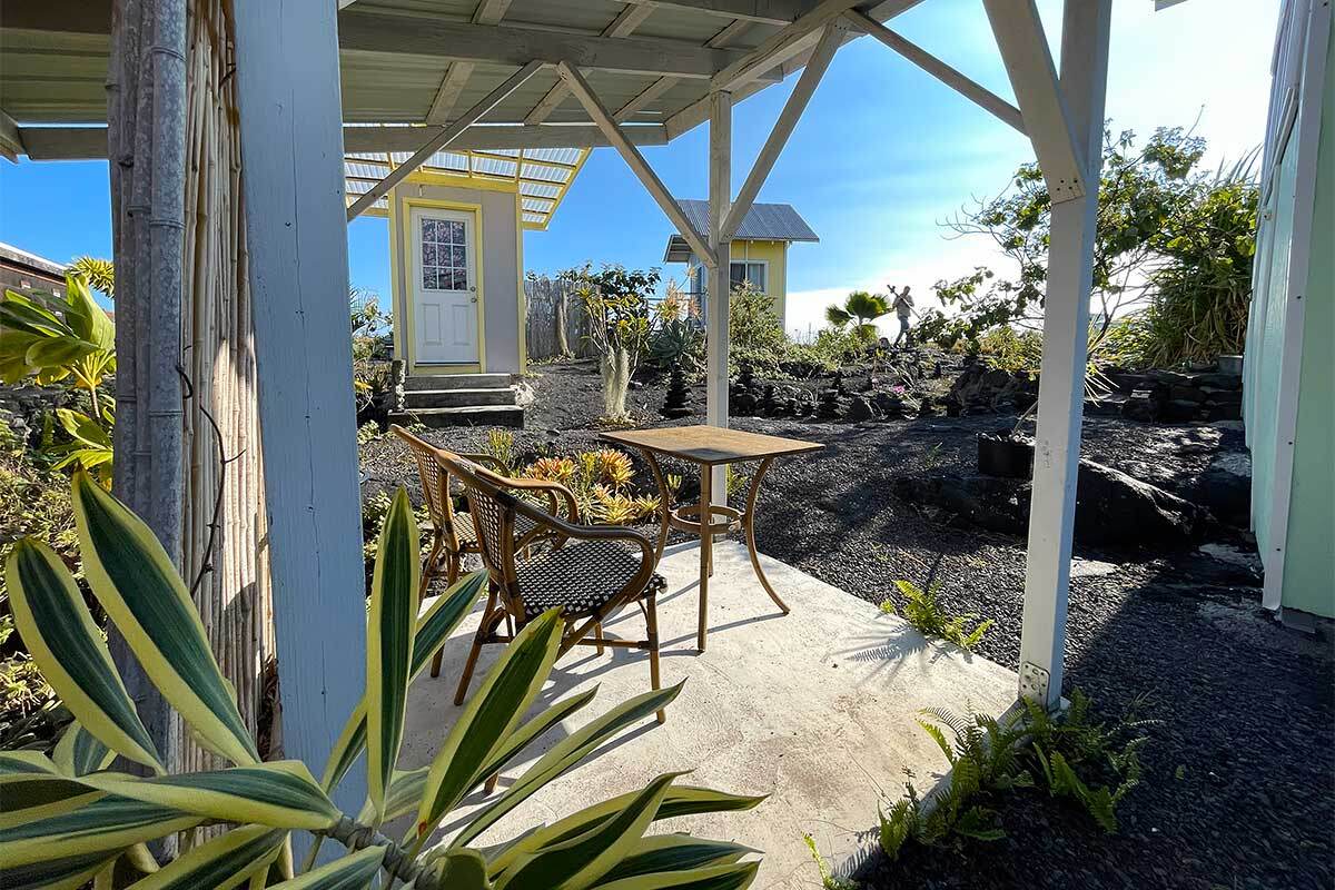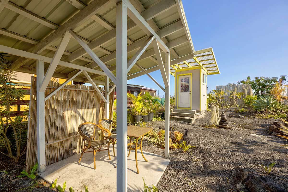 Wonderfully improved property in Kalapana Gardens featuring cozy cabins and ready for its new owner. The main cabin is comfortably sized & thoughtfully laid out, with a living area at the entrance that flows into the kitchen & dining space. Attached on one side is a covered shower area, & the property is equipped with a Nature’s Head composting toilet. A second, separate cabin serves as a sleeping area & comfortably accommodates a queen-size bed. This cabin includes a lovely attached deck offering beautiful ocean views & spectacular sunrise vistas. Just outside the kitchen is an additional covered sitting area, perfectly situated within the beautifully landscaped yard featuring orchids, succulents, palms, & fruit trees. Additional property features include: Lava rock pillars at the entrance Cinder/gravel added to the driveway and walkway Storage shed located at the back of the property Fully fenced Sold furnished Two poly catchment tanks Three solar panels totaling approximately 900 watts Inverter and charge controller Medium-sized refrigerator Located a short distance from the stunning Hawaiian Pacific Ocean coastline, the property offers the opportunity to watch the sun rise over the eastern shore & observe whales during migration season. Cooling trade winds flow through here daily, enhancing the peaceful island lifestyle. Truly a unique and remarkable location. Within minutes, you’ll find yourself in the heart of Kalapana, home to a small store, weekly Farmer’s Market, & the well-known Uncle's Night Market offering food & music. Beautiful black sand beaches & lush tropical landscapes are also nearby. A 15-minute drive brings you to Pahoa Town, where you’ll find restaurants, Malama Market grocery store, Ace Hardware, Longs Drugs, a library, public Olympic-size swimming pool, parks, schools, & medical facilities. This is an exceptional opportunity to own property in one of the most unique and special places in Hawai'i.