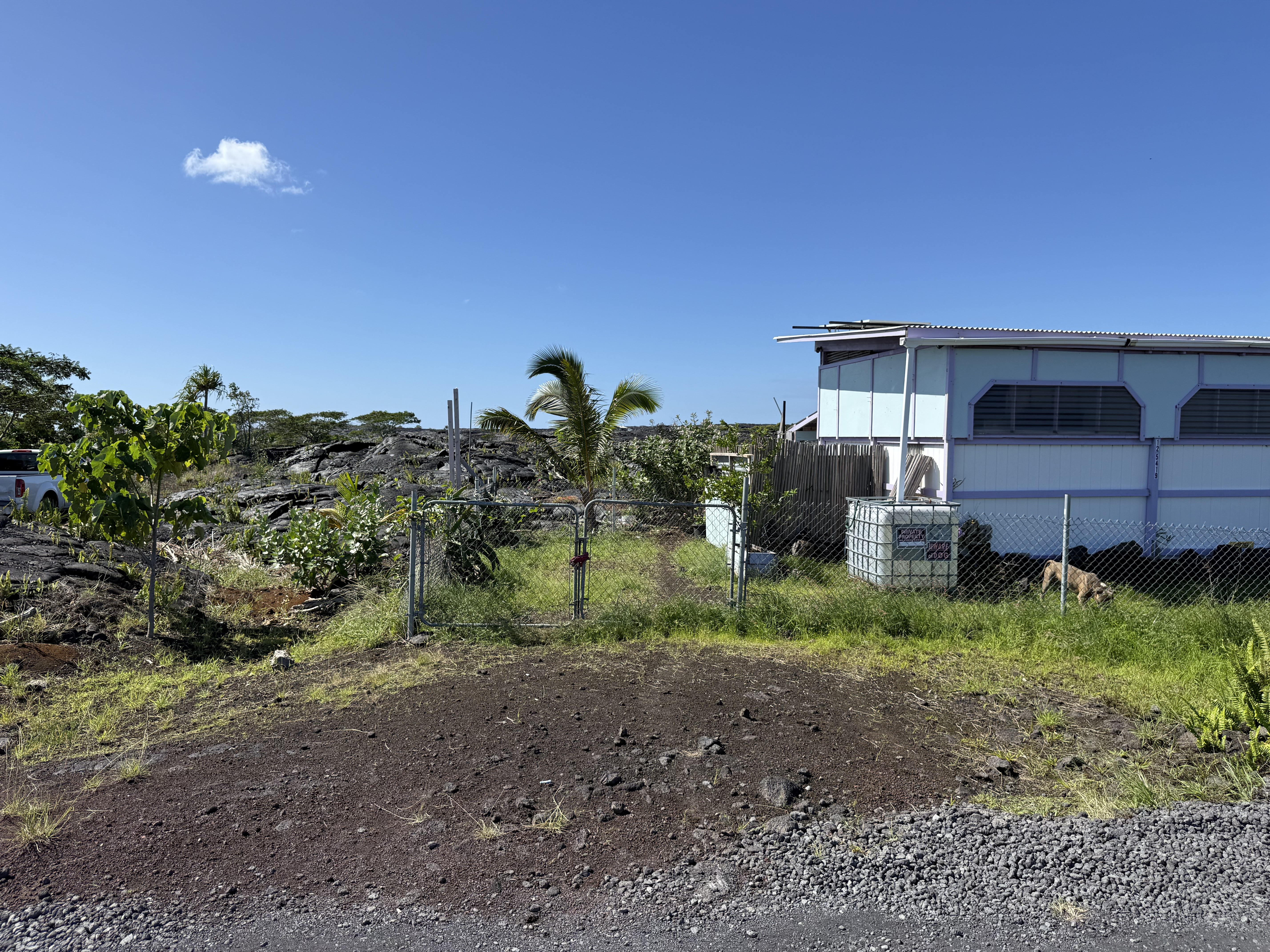 Kalapana gem ! this one bedroom off grid cabin is well located within the subdivision. It has a single panel solar system and a 250 gallon catchment tank ( not hooked up ) Bring your tools and creative ideas to further enhance the property. The owner has planted Crown flowers, a host plant for the the Monarch butterfly , a sandpaper tree, & dragon fruit cactus plant. The front portion of the lot is fenced and gated and the property is on Ala Lokelani backing up to large acreage, enjoy panoramic views of the Pali. Both Pahoa town and Kahena Beach are within a 15 -20 min drive. No staking or survey by seller , back pins are visible & marked , front pins location known, lot size 8,039 sqft