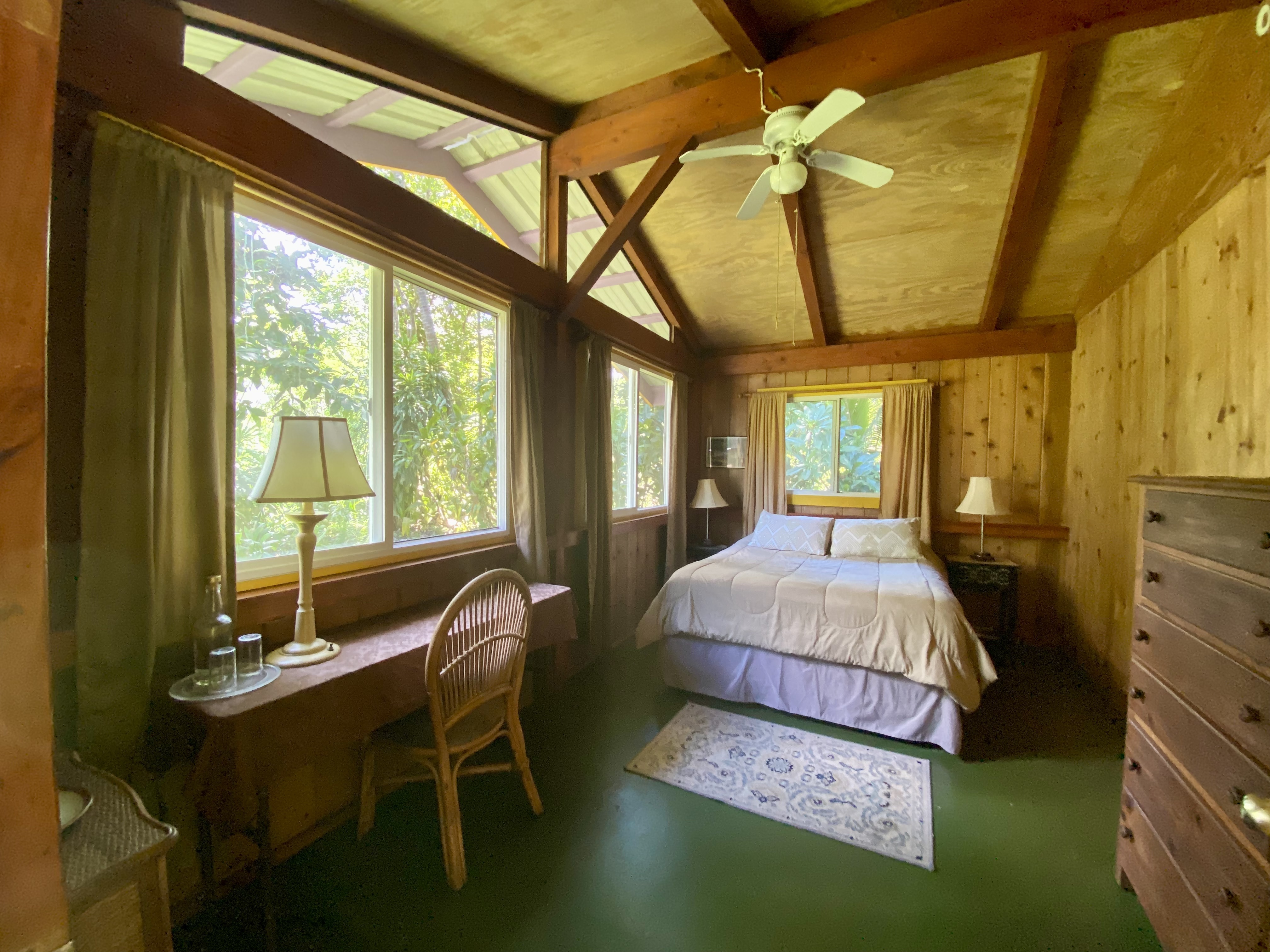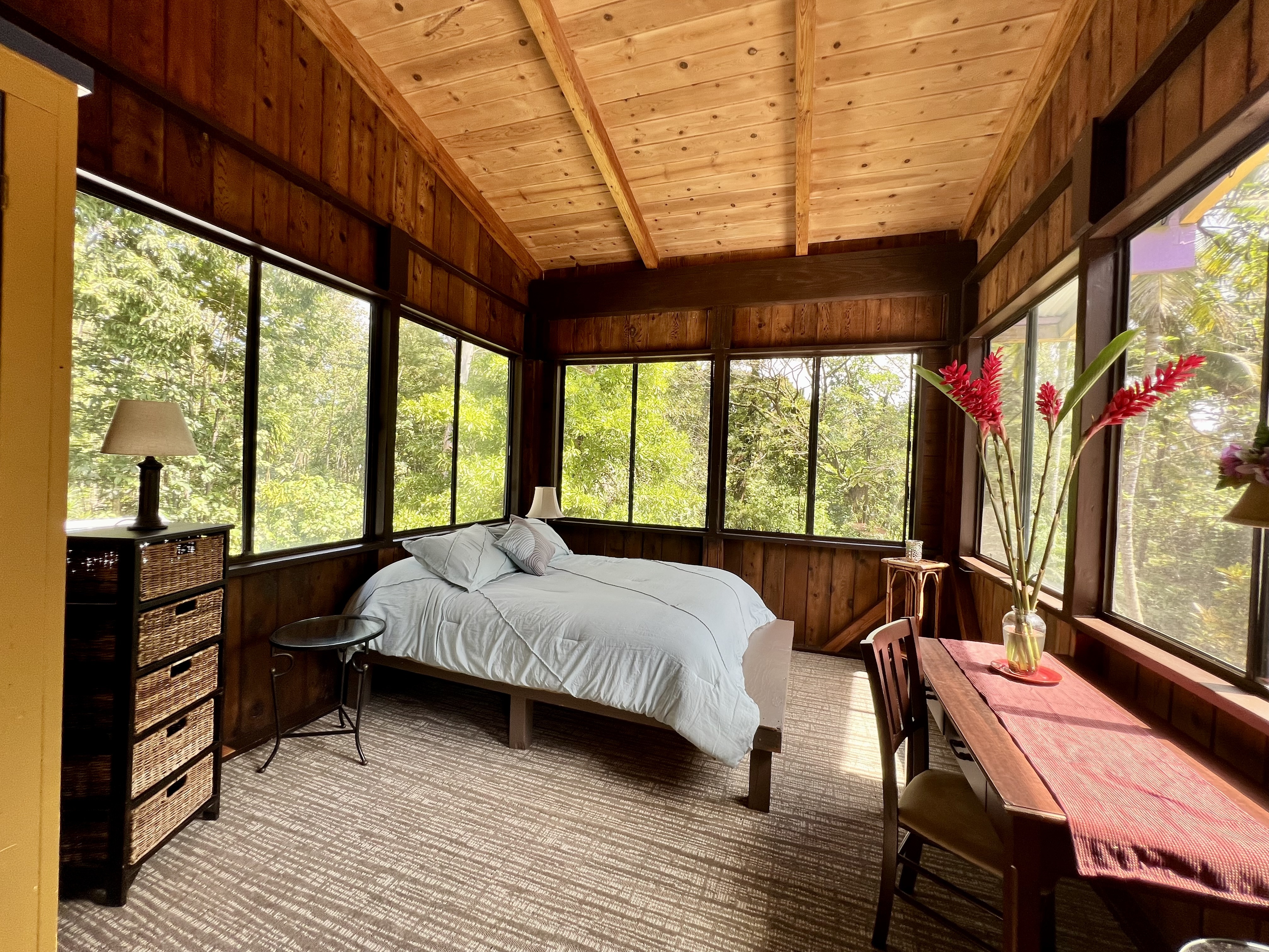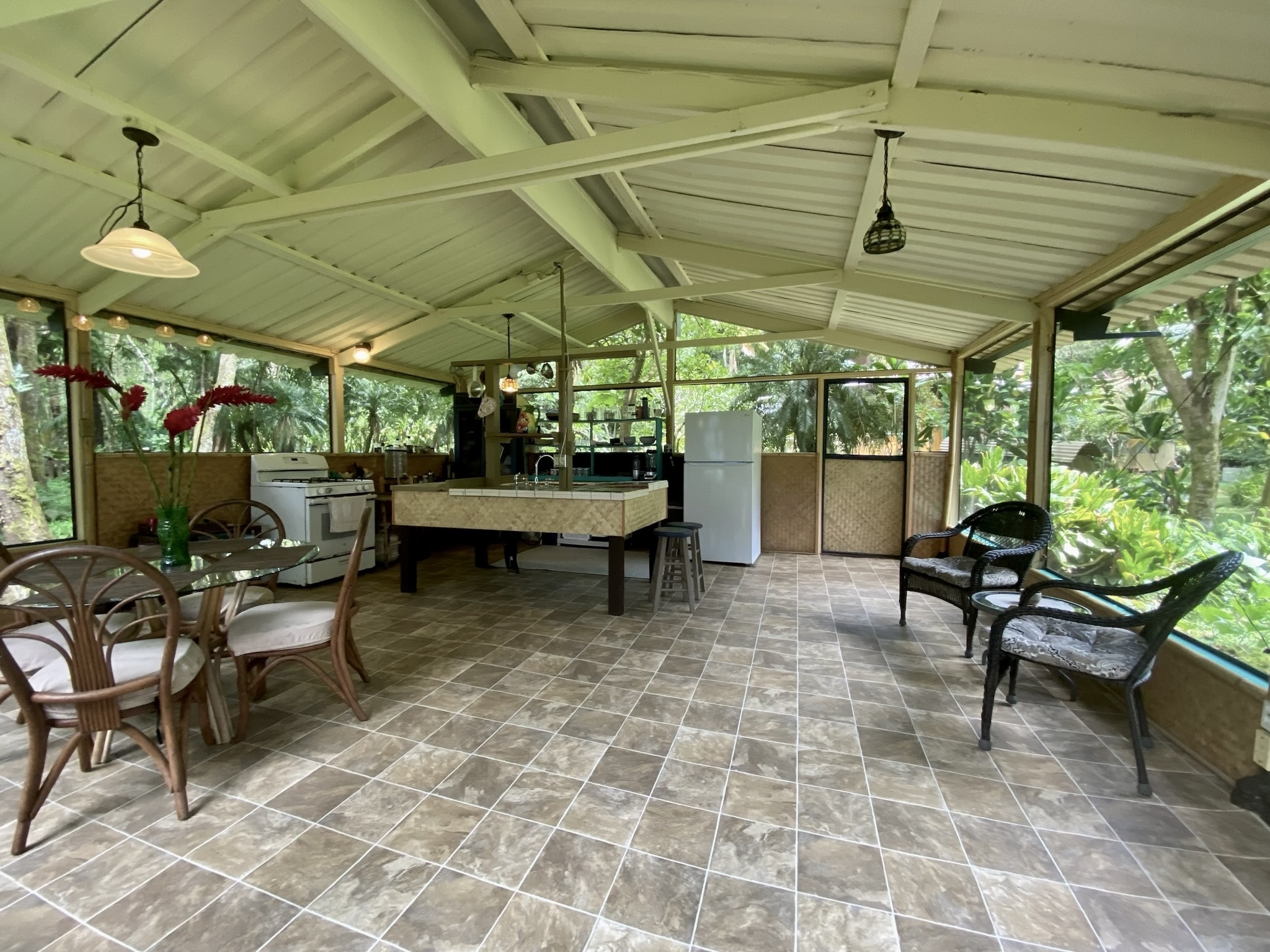 Designed for sustainable living, the property features rainwater catchment, a state-of-the-art solar system, and an abundance of mature fruit trees and bamboo. Experience true tranquility with ocean breezes, birdsong, lush landscaping, and complete immersion in nature.