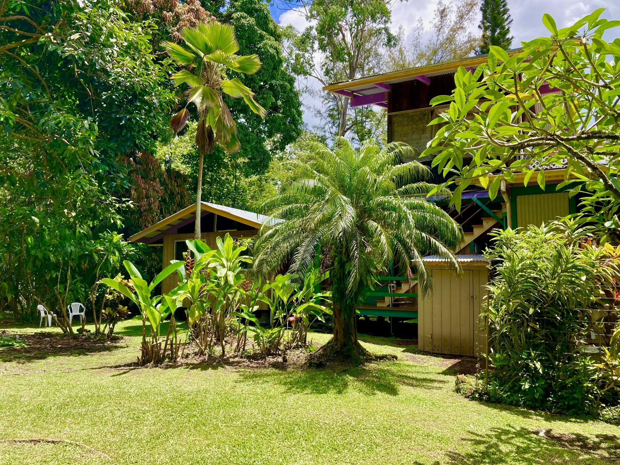 Additional features include a lanai, breezeway, porch, and balcony adding 528 sq ft of outdoor living. There’s also a cabin, tool shed, power shed, and garden shed. Conveniently located just a half mile from the coastal road, 15 minutes from Pahoa town, and 27 miles from Hilo.