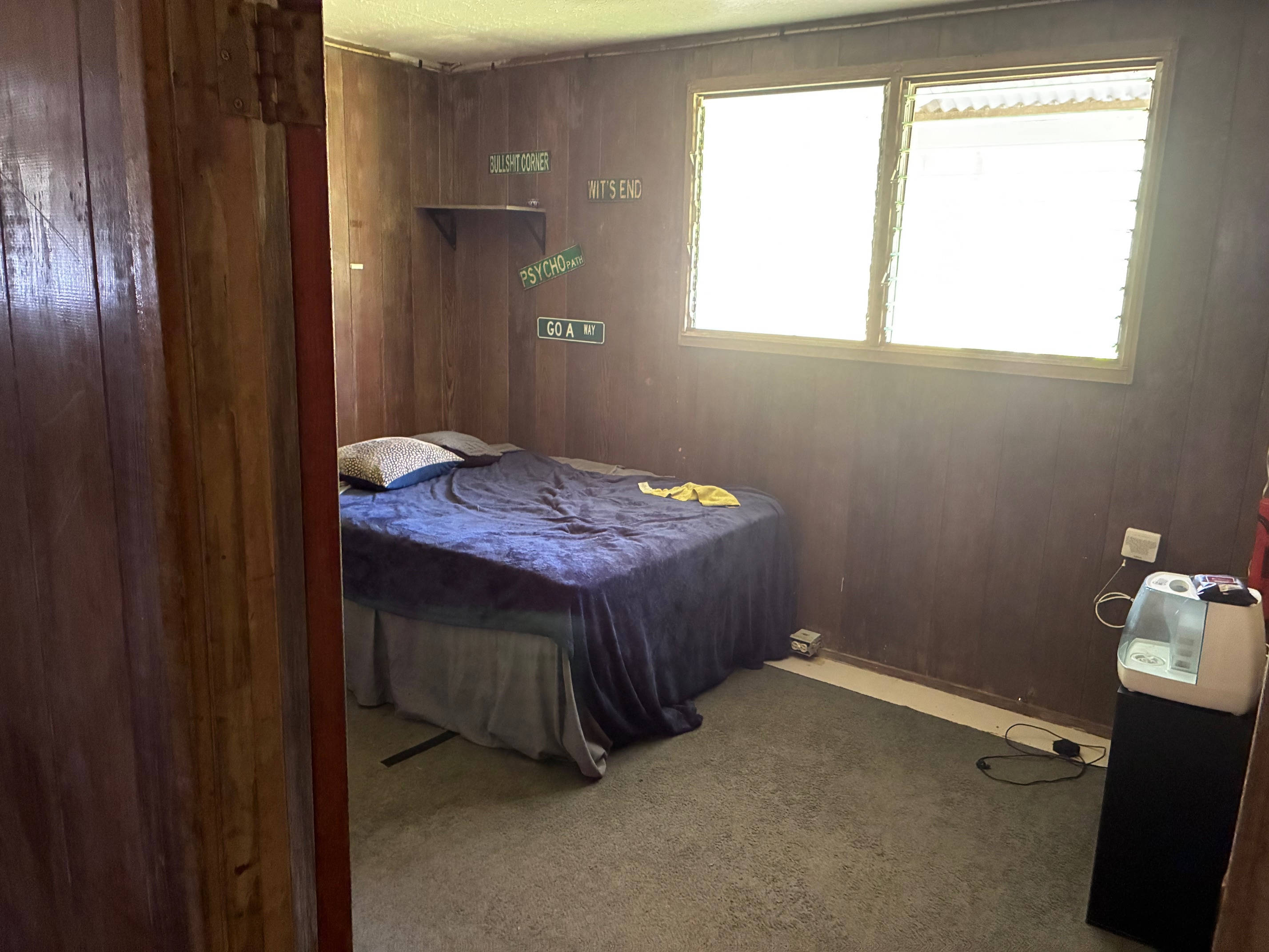 Lots of potential here in this 3 bedroom 1 1/2 bath solid redwood home! Newer roof and catchment tank. Property needs repairs and updating.