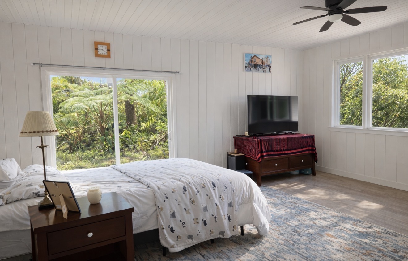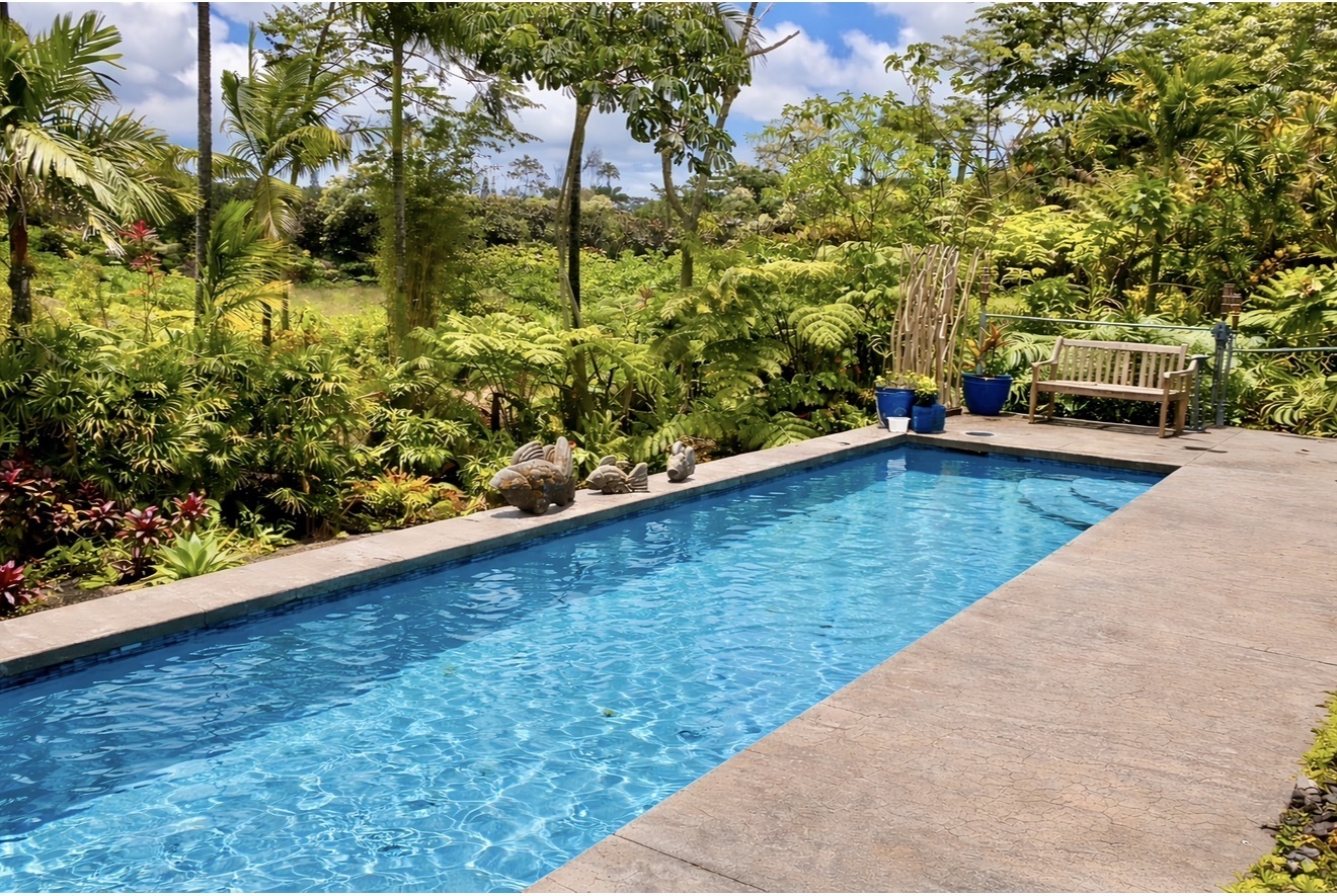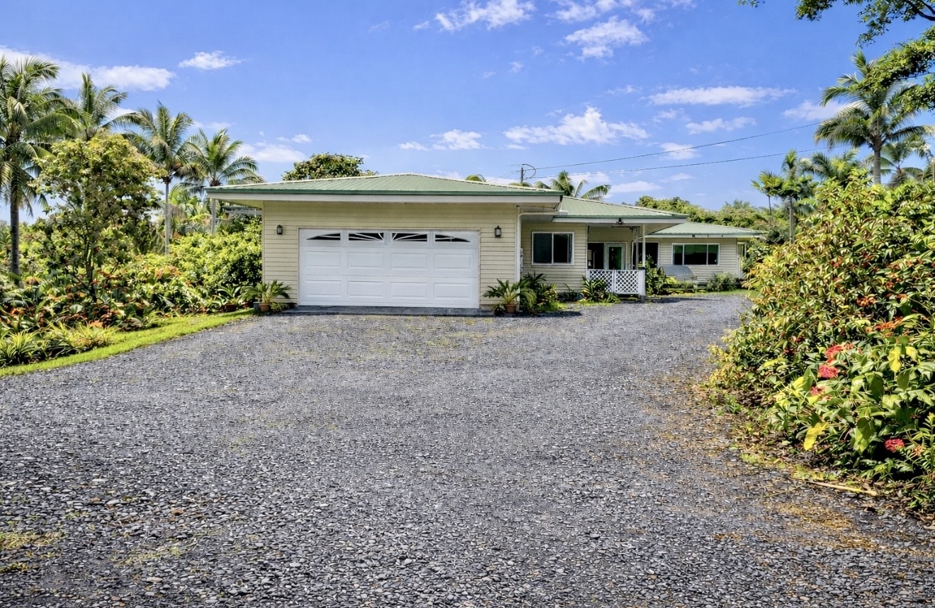 ESTABLISHED LEGAL STVR Poolside Paradise - Investor Opportunity Set on a fully gated 2-acre estate in Leilani Estates, just minutes from Pahoa, this private botanical retreat blends resort-style living with strong investment appeal. Energy Advantage (Rare & Valuable): Grandfathered into Hawai?i’s original Net Energy Metering (NEM) program, the owned 28-panel (7.28 kW) photovoltaic system delivers full retail credit for excess power–paired with solar hot water for long-term efficiency and savings. Designed for Flexibility & Income Potential: Approximately 2,260 sq ft of single-level living with 4 bedrooms and 3.5 baths, thoughtfully arranged with two separate wings and dual primary suites–ideal for guests, multi-generational living, or vacation rental use. Vaulted ceilings, natural light, and three covered lanais create seamless indoor-outdoor flow. Resort-Style Pool Living: A custom 40’ x 10’ gunite pool anchors the property, complete with LED lighting, ozonator, and sand filtration system. One primary suite opens directly to the pool, designed for a true resort experience. Botanical Grounds & Arrival Experience: A 300-ft rock driveway with a circular landscaped island sets a peaceful tone. The grounds feature mature palms, rainbow eucalyptus, and a productive orchard with citrus, orange and lemon –woven together by meandering garden paths and a dedicated BBQ lanai. Additional Features: - Detached studio ohana - 2-car garage - Metal roof + concrete slab foundation - Paved road access - Fully permitted home, pool, and solar system - Walk-in closets, pet doors, bidet toilet Private. Energy-efficient. Income-ready. A rare opportunity to own a fully realized island estate.