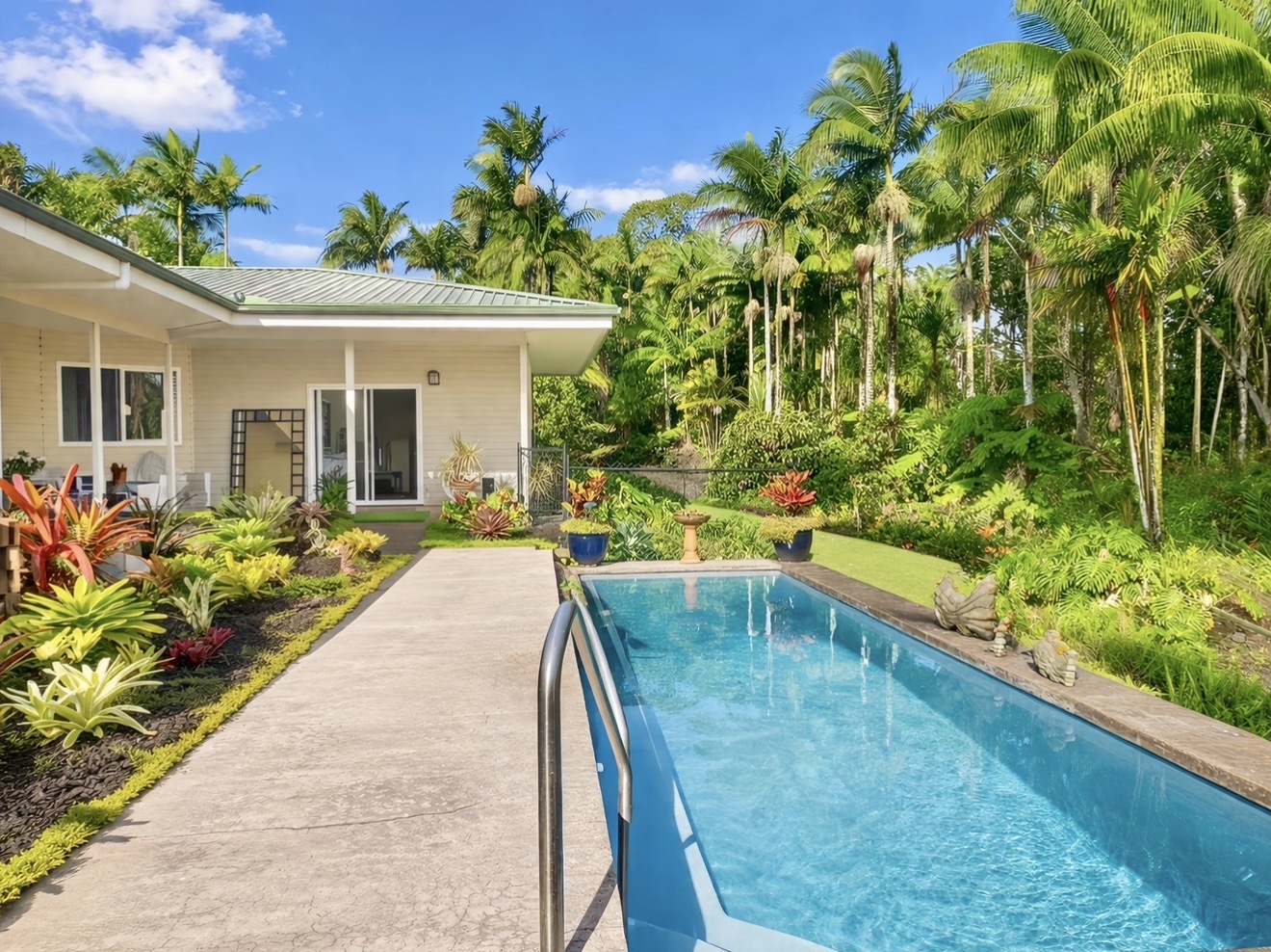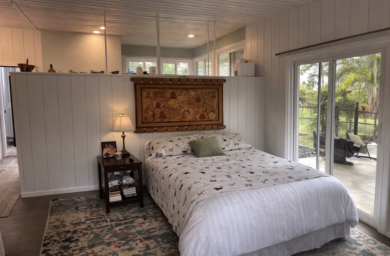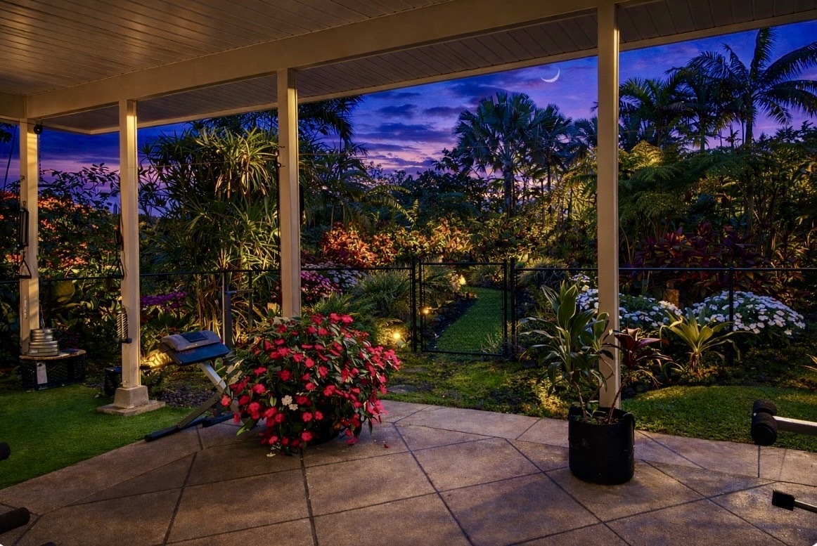 ESTABLISHED LEGAL STVR Poolside Paradise - Investor Opportunity Set on a fully gated 2-acre estate in Leilani Estates, just minutes from Pahoa, this private botanical retreat blends resort-style living with strong investment appeal. Energy Advantage (Rare & Valuable): Grandfathered into Hawai?i’s original Net Energy Metering (NEM) program, the owned 28-panel (7.28 kW) photovoltaic system delivers full retail credit for excess power–paired with solar hot water for long-term efficiency and savings. Designed for Flexibility & Income Potential: Approximately 2,260 sq ft of single-level living with 4 bedrooms and 3.5 baths, thoughtfully arranged with two separate wings and dual primary suites–ideal for guests, multi-generational living, or vacation rental use. Vaulted ceilings, natural light, and three covered lanais create seamless indoor-outdoor flow. Resort-Style Pool Living: A custom 40’ x 10’ gunite pool anchors the property, complete with LED lighting, ozonator, and sand filtration system. One primary suite opens directly to the pool, designed for a true resort experience. Botanical Grounds & Arrival Experience: A 300-ft rock driveway with a circular landscaped island sets a peaceful tone. The grounds feature mature palms, rainbow eucalyptus, and a productive orchard with citrus, orange and lemon –woven together by meandering garden paths and a dedicated BBQ lanai. Additional Features: - Detached studio ohana - 2-car garage - Metal roof + concrete slab foundation - Paved road access - Fully permitted home, pool, and solar system - Walk-in closets, pet doors, bidet toilet Private. Energy-efficient. Income-ready. A rare opportunity to own a fully realized island estate.