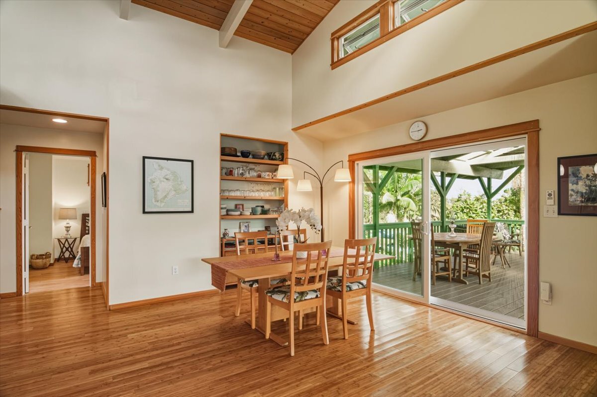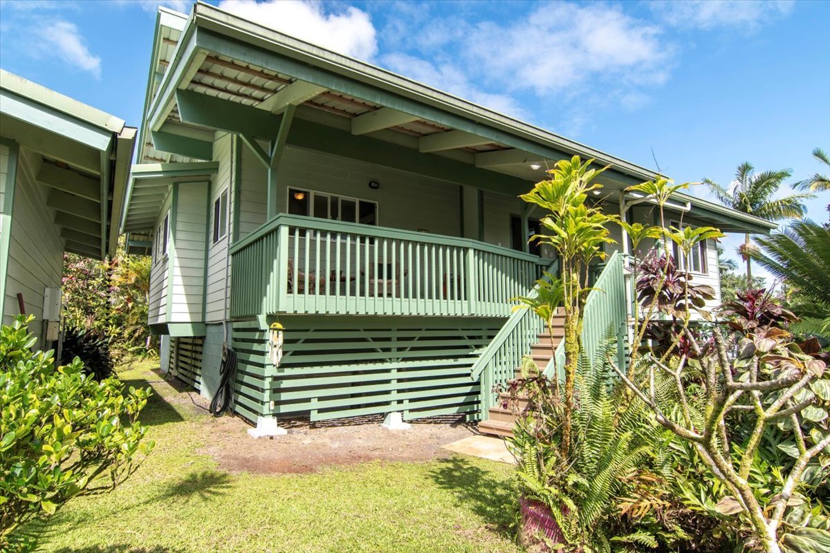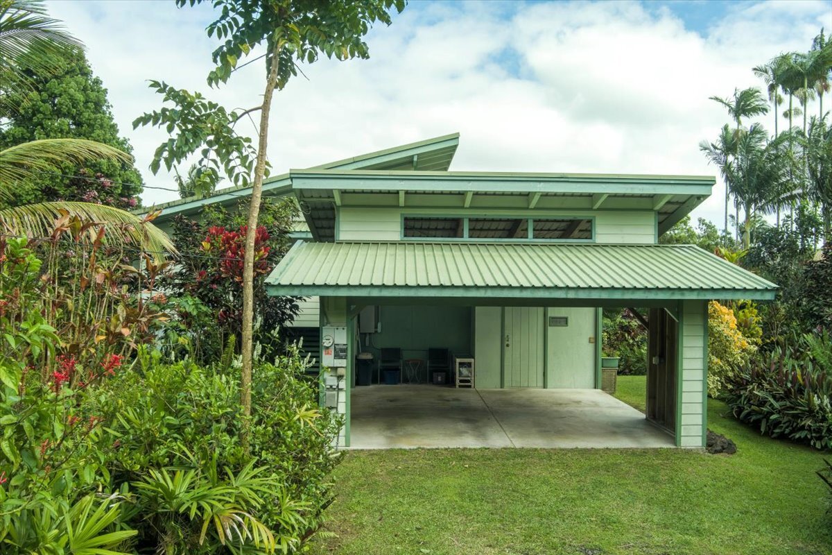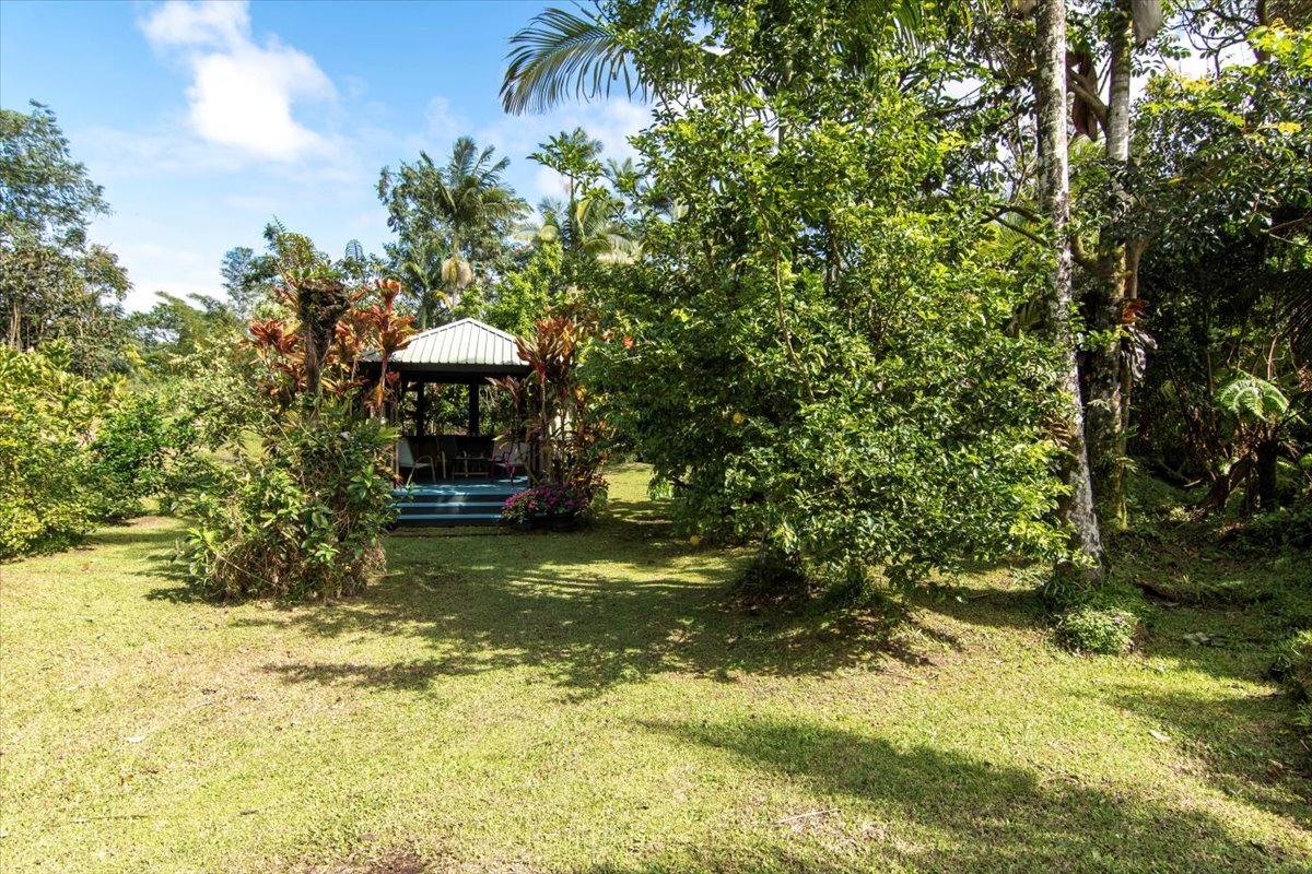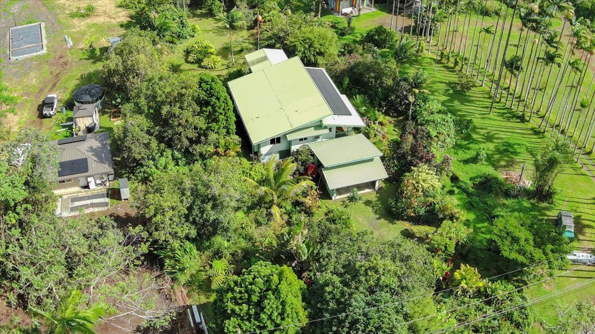 Discover serene island living in this lovingly cared for 3 bd/3 bth home, set on 1 private acre. * From the moment you drive through the custom flamingo gate you feel like you have been transported to your very own tropical paradise. Lush tropical landscaping lines the driveway to a 2-car covered carport. * Beyond the carport, you are welcomed by a generous covered front lanai that leads you inside the expansive open concept living space. High ceilings, bamboo floors and large windows create a bright and inviting atmosphere throughout the whole house. There are 2 primary suites and an additional room that can be used as a bedroom, office or guest room. The third bathroom boasts a jetted spa tub perfect for relaxing. * The main living area seamlessly flows to the 24 x 13ft covered back lanai that overlooks your very own botanical wonderland. It is the perfect place to entertain or relax & enjoy tropical living. * Find an abundance of additional space under this post & pier home where you will find: laundry room w/washer, dryer, utility sink & additional refrigerator; spacious bonus room that can be used as a hobby room, yoga studio or gym.; you decide. * Walk through the park-like grounds & enjoy a plethora of fruiting and flowering tropical plants (see attached list). An enchanting gazebo offers a magical space to escape to. * Save $ with the grid tied solar and Tesla battery. * Don’t miss out on this exquisite property that invites you to experience the best of Big Island Living with the feeling of old Hawaii. * Leilani Estates is a well established neighborhood located near the eastern tip of the Big Island w/paved roads, mail delivery, public transportation, high-speed internet, cable TV, Community Center w/playground, covered pickelball & basketball, sports field, meeting facilities, neighborhood Watch, CC&R’s & HOA( $225yr/$200 transfer fee) leilaniestates.org Close to Pahoa Village & about 23 miles south of Hilo.
