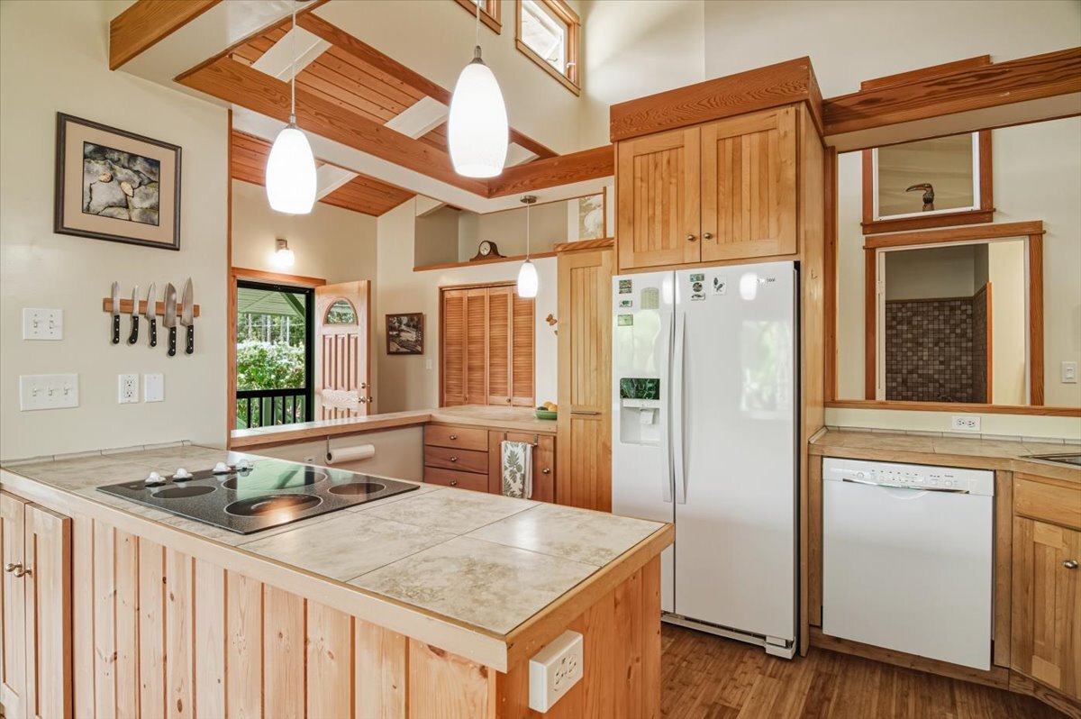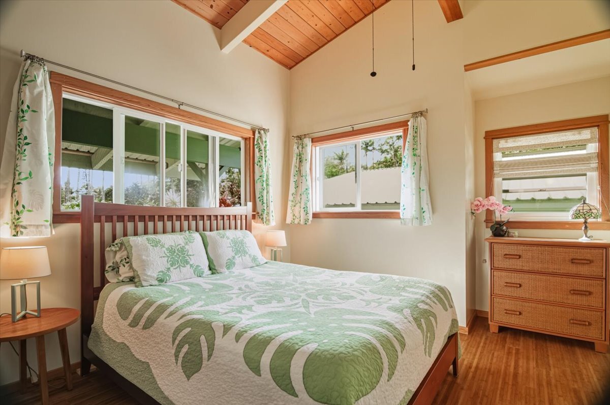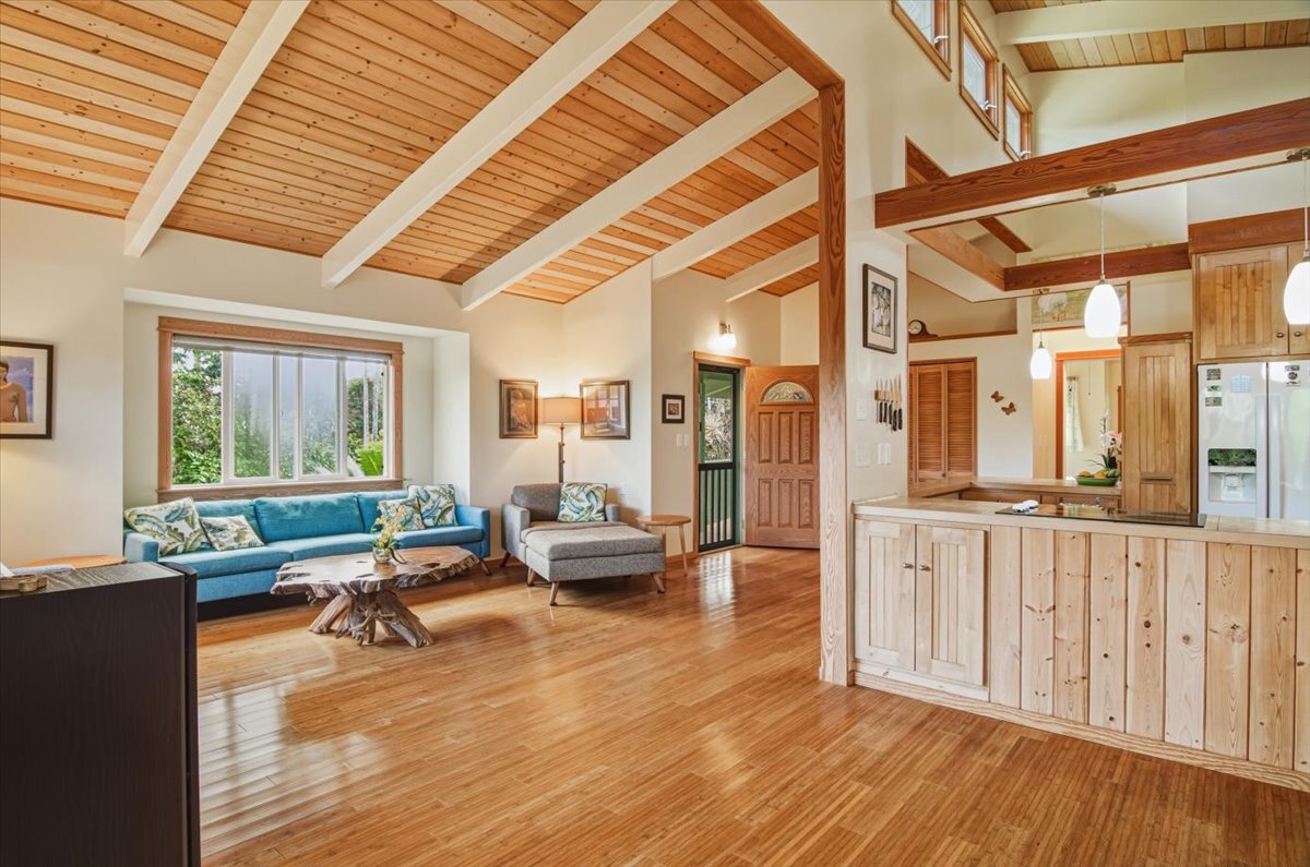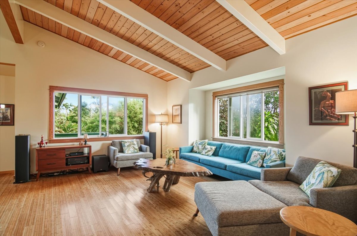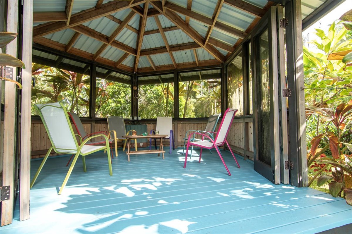 Discover serene island living in this lovingly cared for 3 bd/3 bth home, set on 1 private acre. * From the moment you drive through the custom flamingo gate you feel like you have been transported to your very own tropical paradise. Lush tropical landscaping lines the driveway to a 2-car covered carport. * Beyond the carport, you are welcomed by a generous covered front lanai that leads you inside the expansive open concept living space. High ceilings, bamboo floors and large windows create a bright and inviting atmosphere throughout the whole house. There are 2 primary suites and an additional room that can be used as a bedroom, office or guest room. The third bathroom boasts a jetted spa tub perfect for relaxing. * The main living area seamlessly flows to the 24 x 13ft covered back lanai that overlooks your very own botanical wonderland. It is the perfect place to entertain or relax & enjoy tropical living. * Find an abundance of additional space under this post & pier home where you will find: laundry room w/washer, dryer, utility sink & additional refrigerator; spacious bonus room that can be used as a hobby room, yoga studio or gym.; you decide. * Walk through the park-like grounds & enjoy a plethora of fruiting and flowering tropical plants (see attached list). An enchanting gazebo offers a magical space to escape to. * Save $ with the grid tied solar and Tesla battery. * Don’t miss out on this exquisite property that invites you to experience the best of Big Island Living with the feeling of old Hawaii. * Leilani Estates is a well established neighborhood located near the eastern tip of the Big Island w/paved roads, mail delivery, public transportation, high-speed internet, cable TV, Community Center w/playground, covered pickelball & basketball, sports field, meeting facilities, neighborhood Watch, CC&R’s & HOA( $225yr/$200 transfer fee) leilaniestates.org Close to Pahoa Village & about 23 miles south of Hilo.