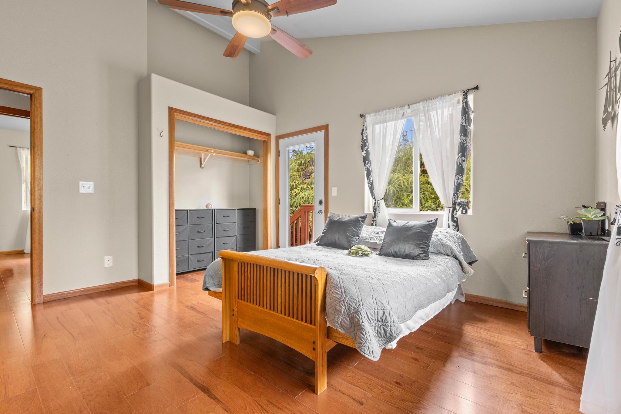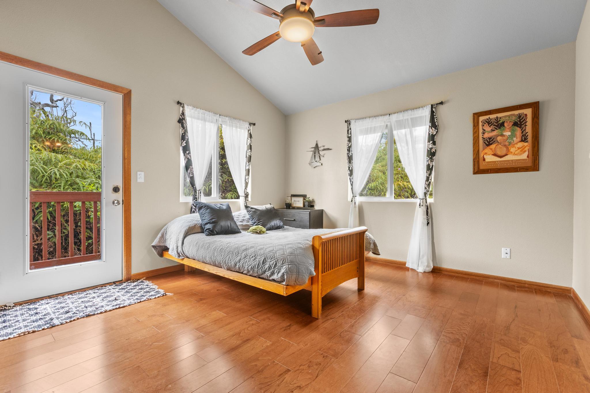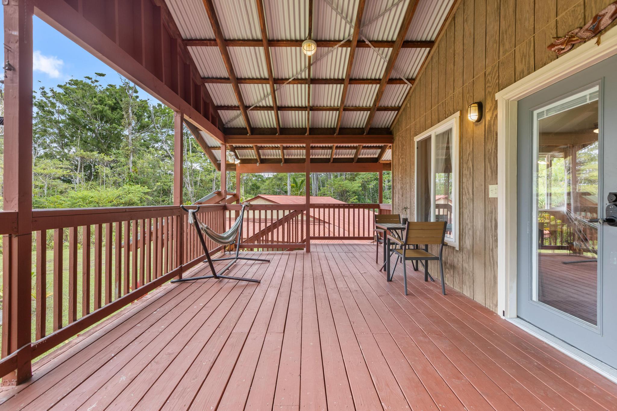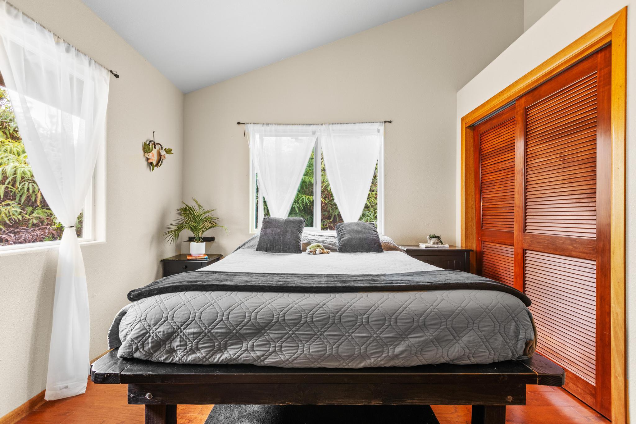 Built in 2017, this inviting 2-bedroom, 2-bathroom home sits on a SQUARE like shape acre in lush and beautiful subdivision. A spacious covered front lanai welcomes you with room for outdoor dining, lounging, and entertaining. Step inside through double French doors to a bright and cozy living area, featuring large picture windows that capture tropical garden views and gentle trade winds.