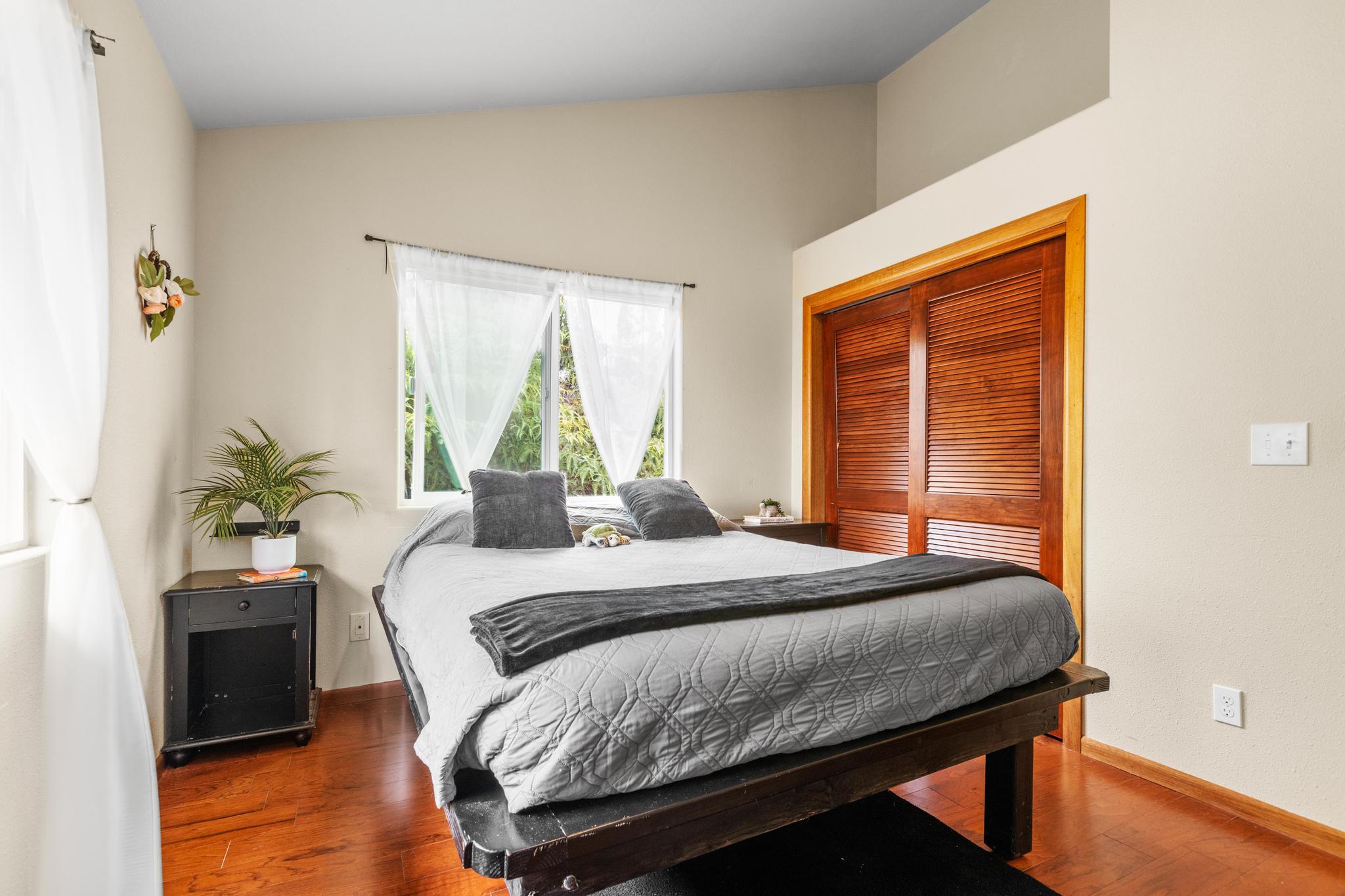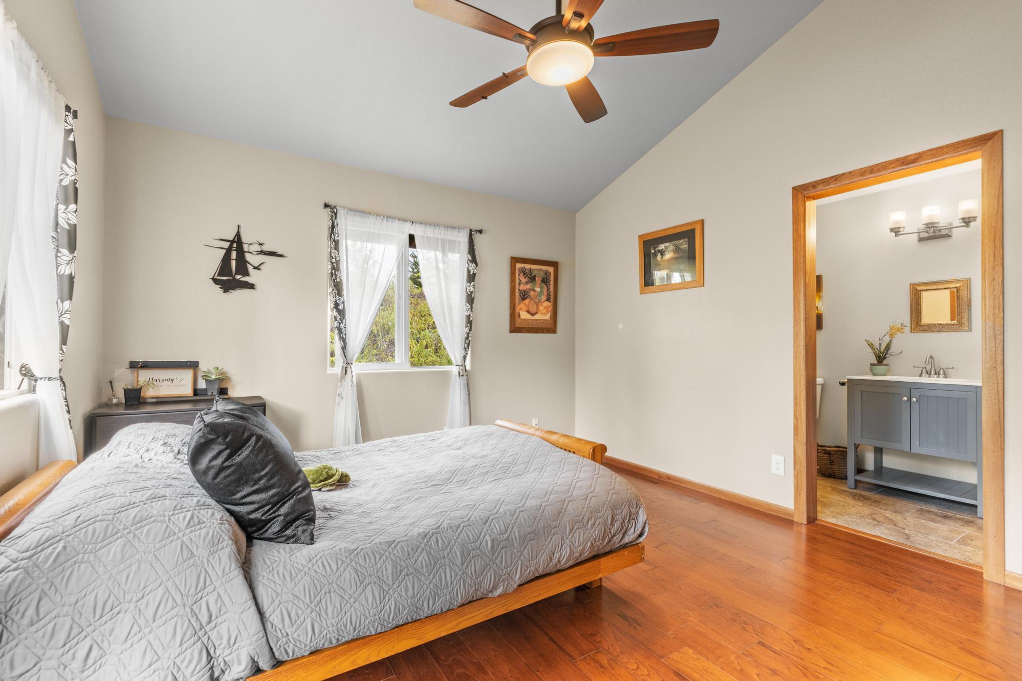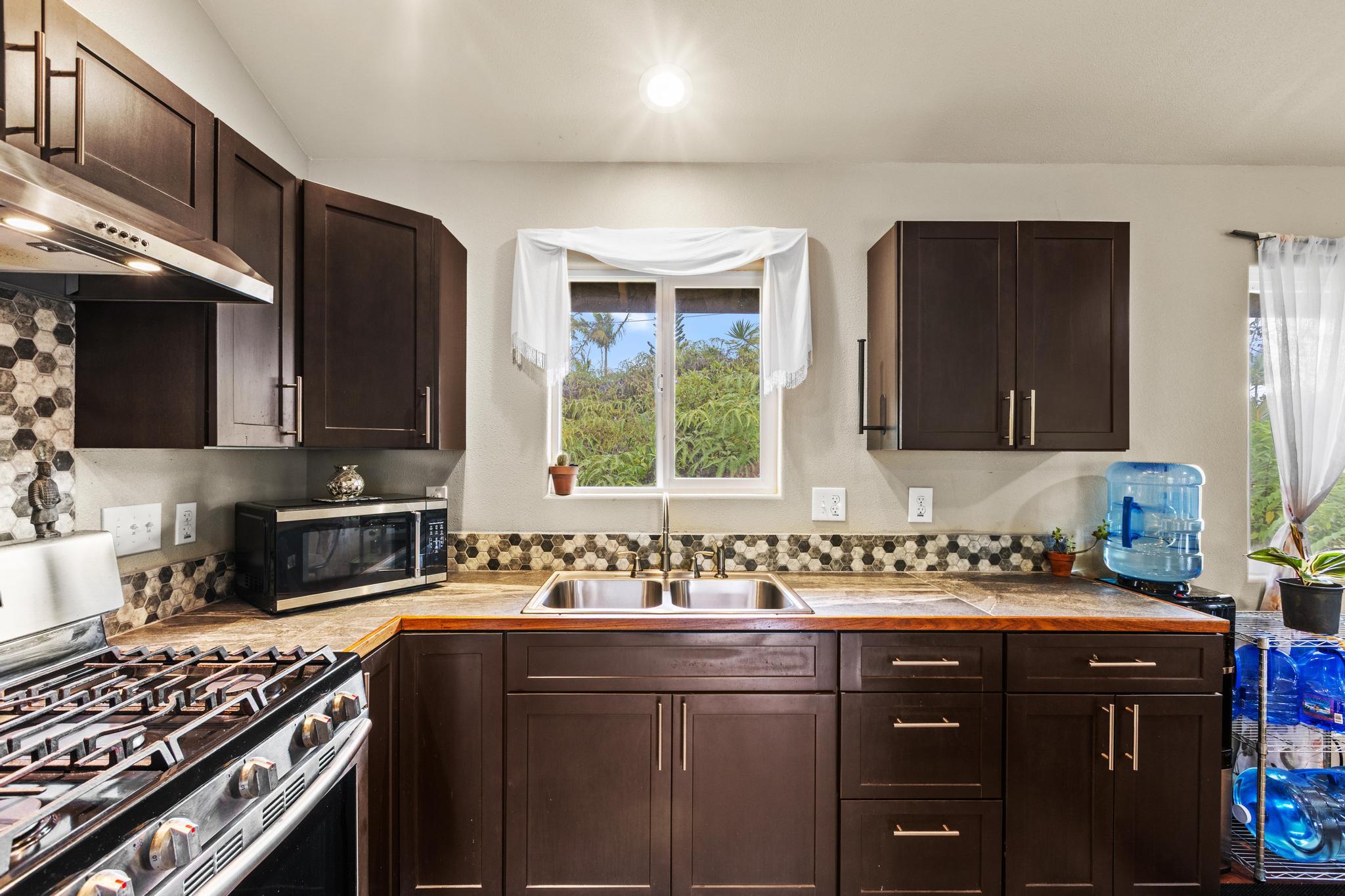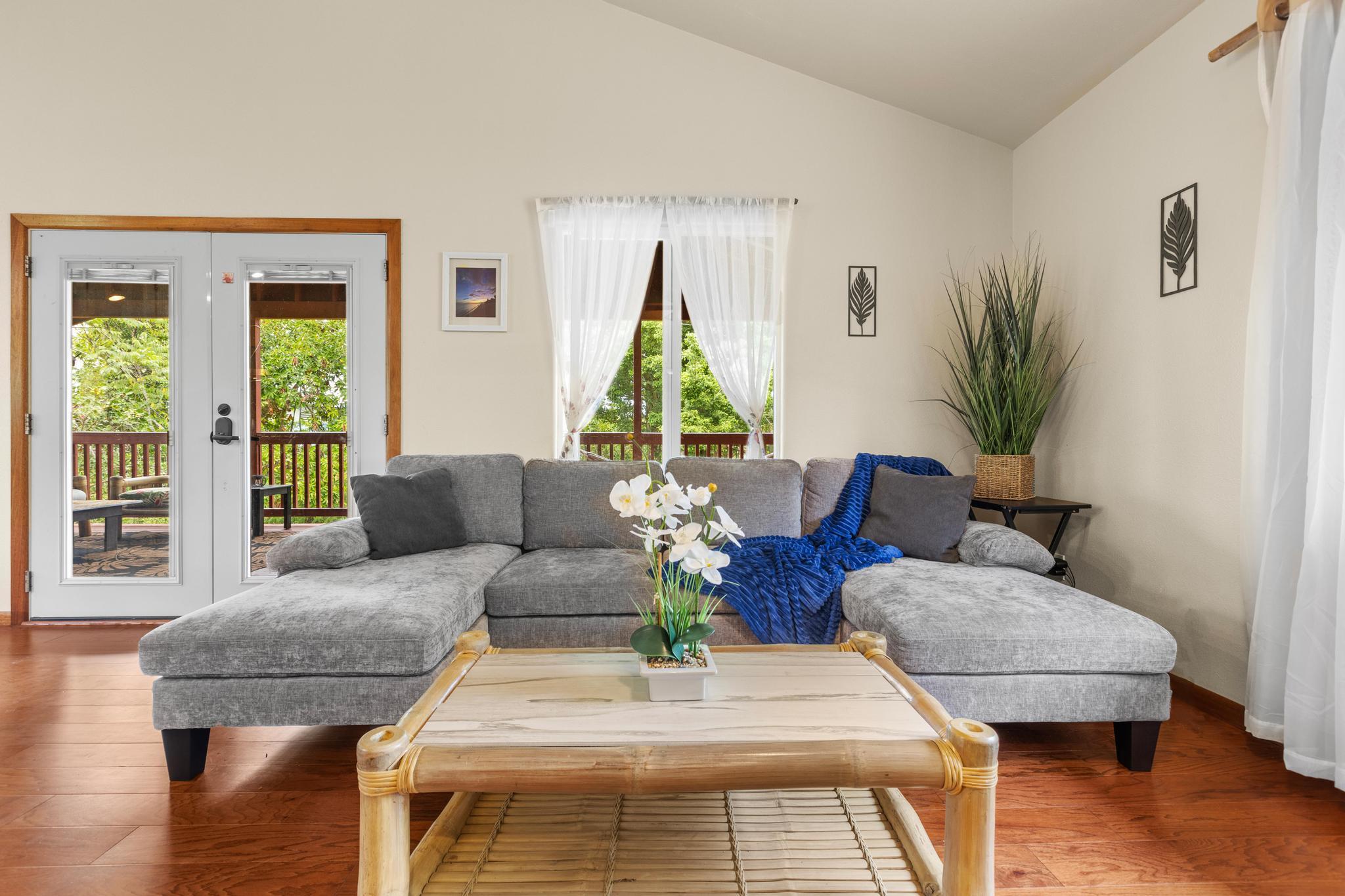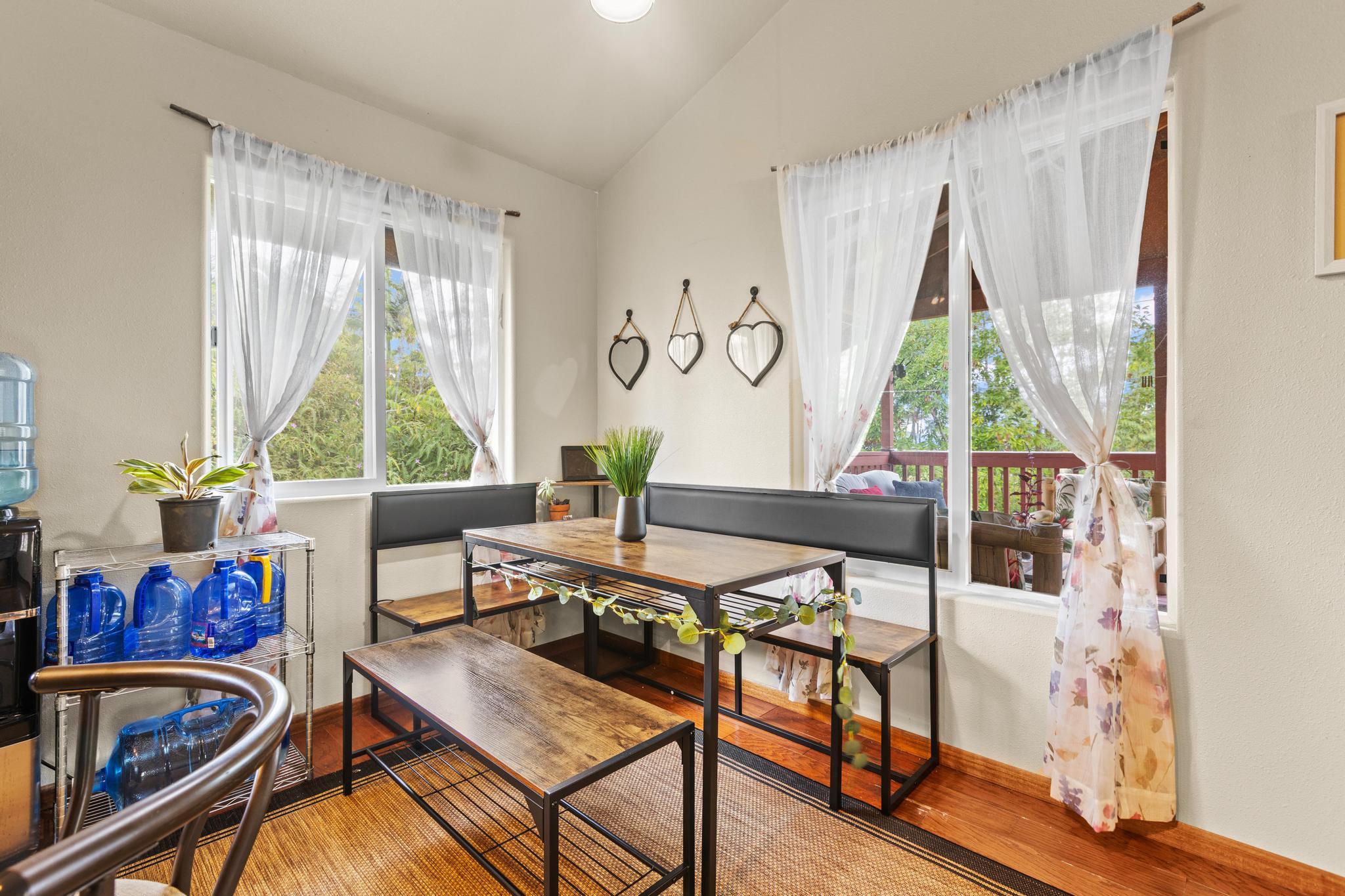 Built in 2017, this inviting 2-bedroom, 2-bathroom home sits on a SQUARE like shape acre in lush and beautiful subdivision. A spacious covered front lanai welcomes you with room for outdoor dining, lounging, and entertaining. Step inside through double French doors to a bright and cozy living area, featuring large picture windows that capture tropical garden views and gentle trade winds.