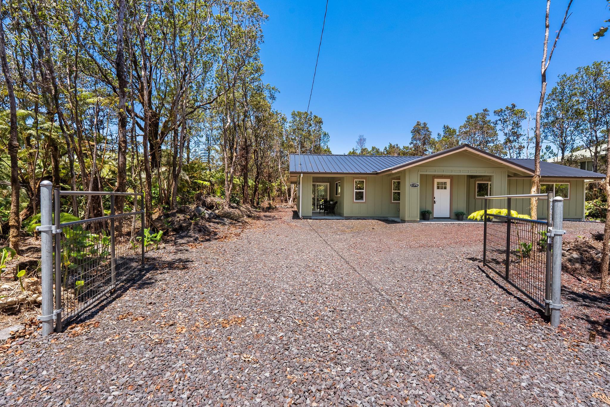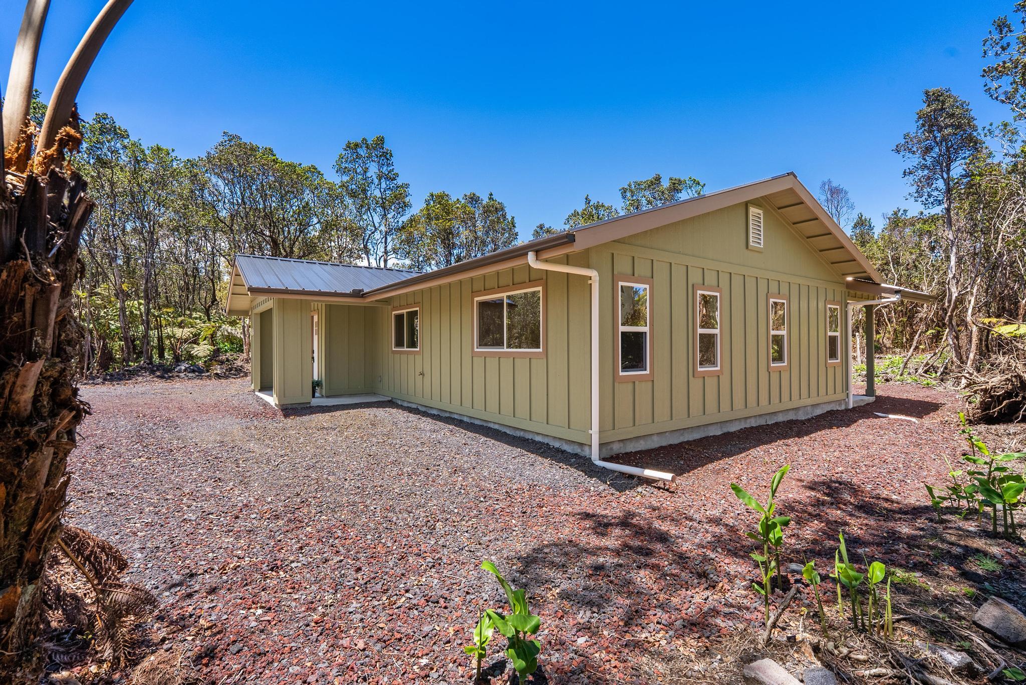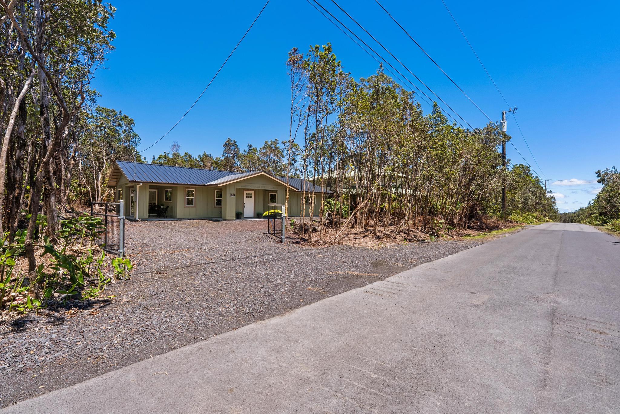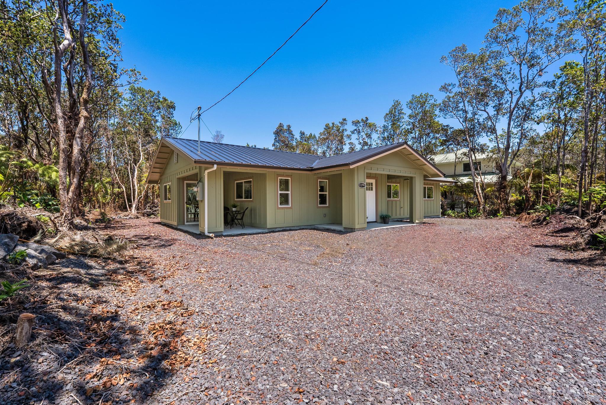 Tucked away on a dead end, paved road in peaceful Mauna Loa Estates, this 3 bedroom, 2 bath home is a hidden retreat surrounded by lush native forest. The 20,000 sq ft lot is beautifully framed by towering Ohia trees, wild ginger, and graceful hapuu ferns, creating the ultimate sense of privacy and natural beauty. At the Volcano elevation, the air is cooler, the pace slower, and the serenity unmatched. Step inside and be welcomed by soaring open beam ceilings, natural light, and a spacious great room designed for relaxation and connection. The kitchen is a showpiece an entertainer’s dream featuring an extra large island with an integrated sink, pantry, dishwasher, and plenty of counter space for creative cooking or hosting friends. Each bedroom is generously sized with ample storage, offering comfort for full-time living or vacation stays. The primary suite opens to a tranquil back lanai, perfect for morning coffee or evening unwinding while listening to native birdsong. The primary bath includes a sleek walk-in shower, combining elegance and simplicity. This property captures the artistic spirit of Volcano just minutes from Volcano Village galleries, farmers’ markets, and Hawaii Volcanoes National Park, where the energy of the earth creates a constant sense of wonder. Whether you’re drawn to the crisp mountain air, the cooling mist, or the lush native landscape, this home offers a peaceful, grounding lifestyle unlike anywhere else on the island. Experience the connection between art, nature, and home right here in Mauna Loa Estates.