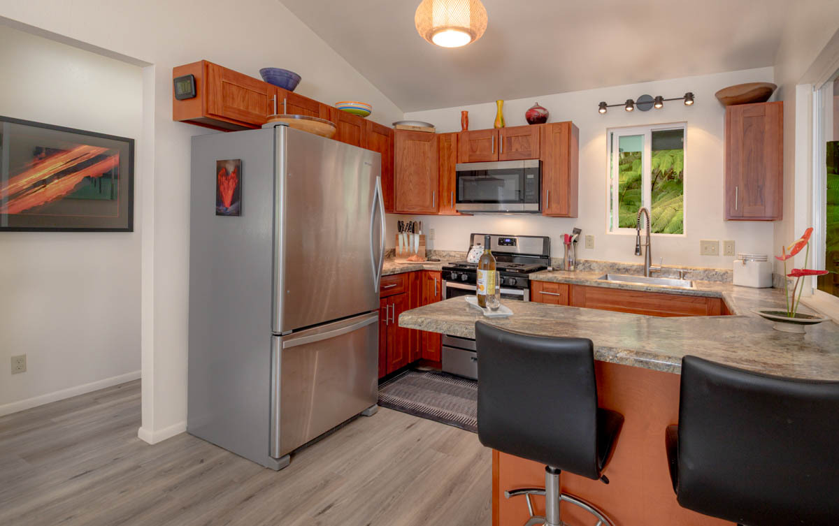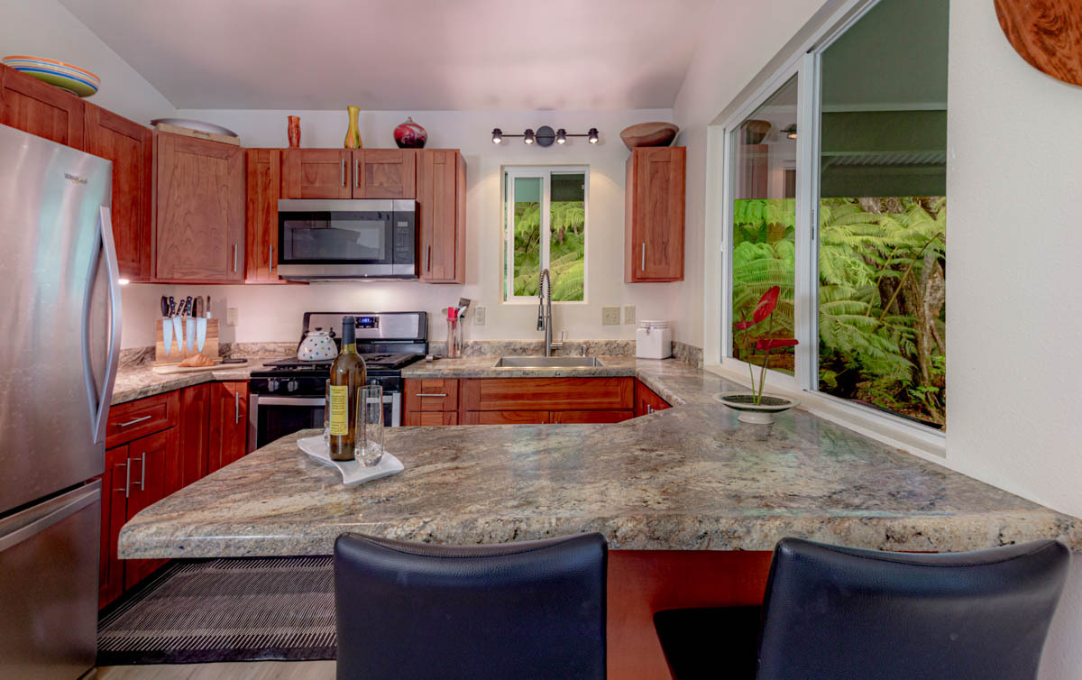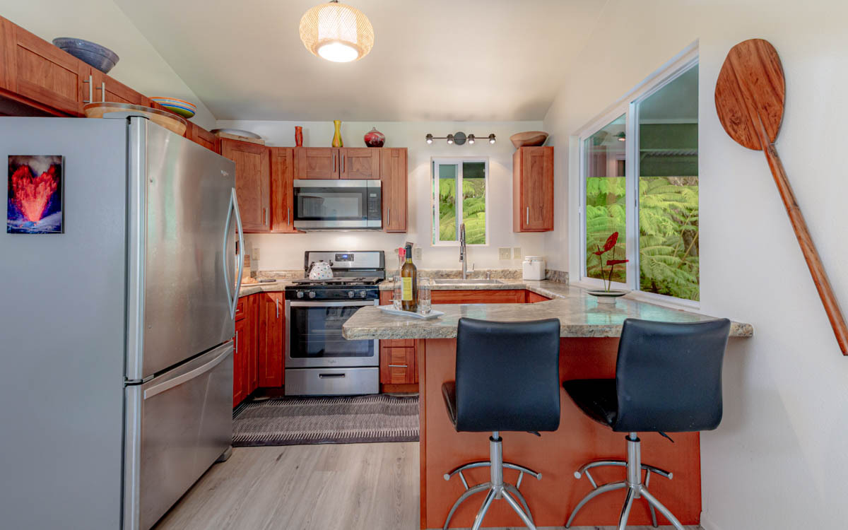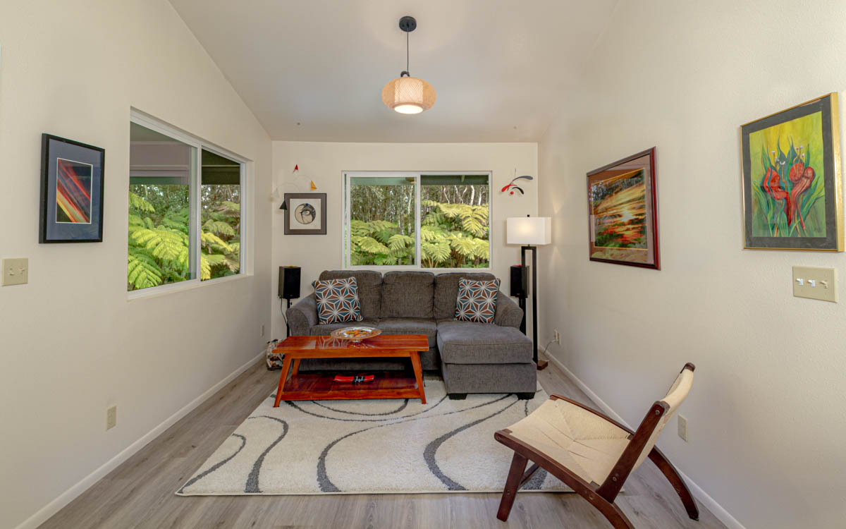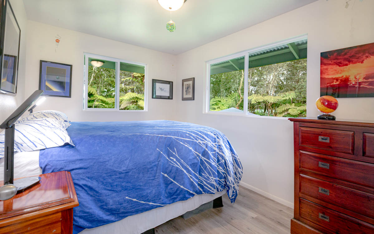 Cozy Cottage and adjacent vacant lot secure your comfort and privacy into the future. Sale includes Cottage at 11-3849 2nd St. (TMK: 3/1-1-6-84) and adjacent vacant lot at 11-3845 2nd St. (TMK: 3/1-1-6-85) for a total of 40,000 sqft. Cottage updated at time of purchase in 2022. Seller installed new kitchen cabinets, counter tops and appliances, including washer and dryer. The bathroom was upgraded with vanity, linen closet and tub with shower. Additionally the outdoor laundry area was enclosed to protect from weather and increase storage area. Cottage sits back from the road with foliage left natural providing privacy from the street and neighbors. The extra vacant lot offers additional privacy & rainforest views to enjoy, plus future options. Your opportunity to help preserve the rainforest! Just minutes' drive to Volcano Village for the post office, groceries, restaurants, farmer's markets and community events. Volcano golf course and hiking or lava viewing at Hawaii Volcanoes National Park are approximately 5 miles south on Hwy 11. A County ambulance & fire station are also within 5 miles. Mauna Loa Estates is an established neighborhood with paved private roads maintained by an organized road association. Annual road fees are currently $138/year per lot, subject to change in the future.