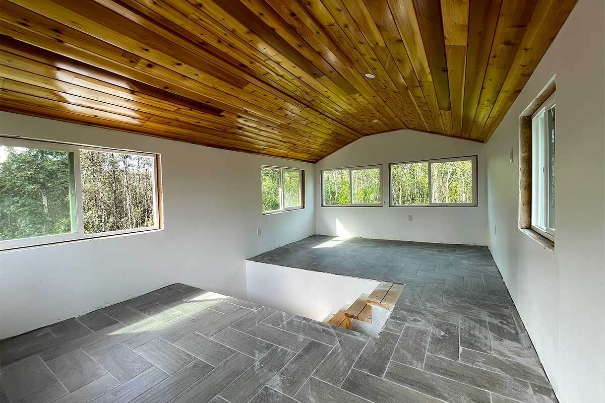 - Second & Third Floors: Designed as a 2-bedroom, 1-bath space with full kitchen and living area. The top-floor room offers beautiful views and a charming cedar-lined ceiling.
