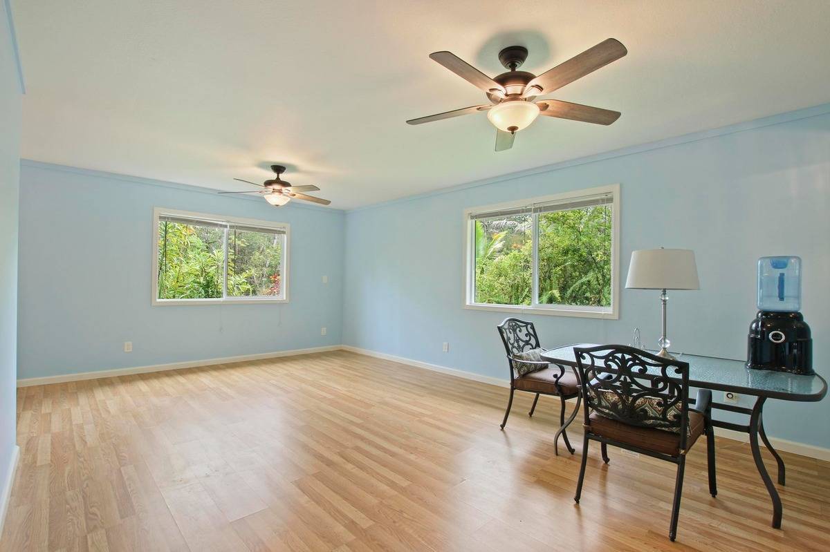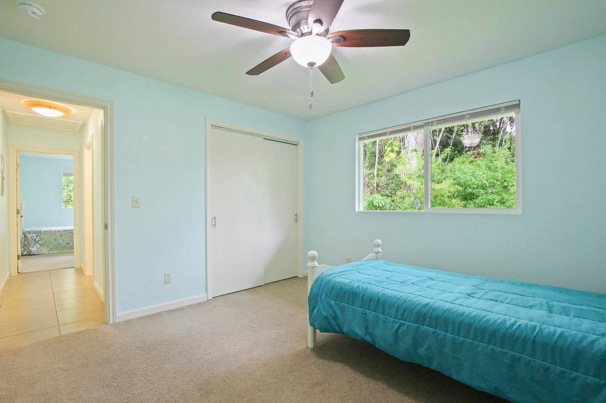 Outside, enjoy tropical trade winds and fruiting trees on a fully usable lot with a newly lined 10,000-gallon catchment tank. Parking is a breeze with a long driveway accommodating three vehicles. Nestled on a quiet, low-traffic street, the home is just minutes from Puna Kai Shopping Center, outdoor recreation, and a 25-minute drive to Kehena black sand beach. Hilo is conveniently close for an easy commute.