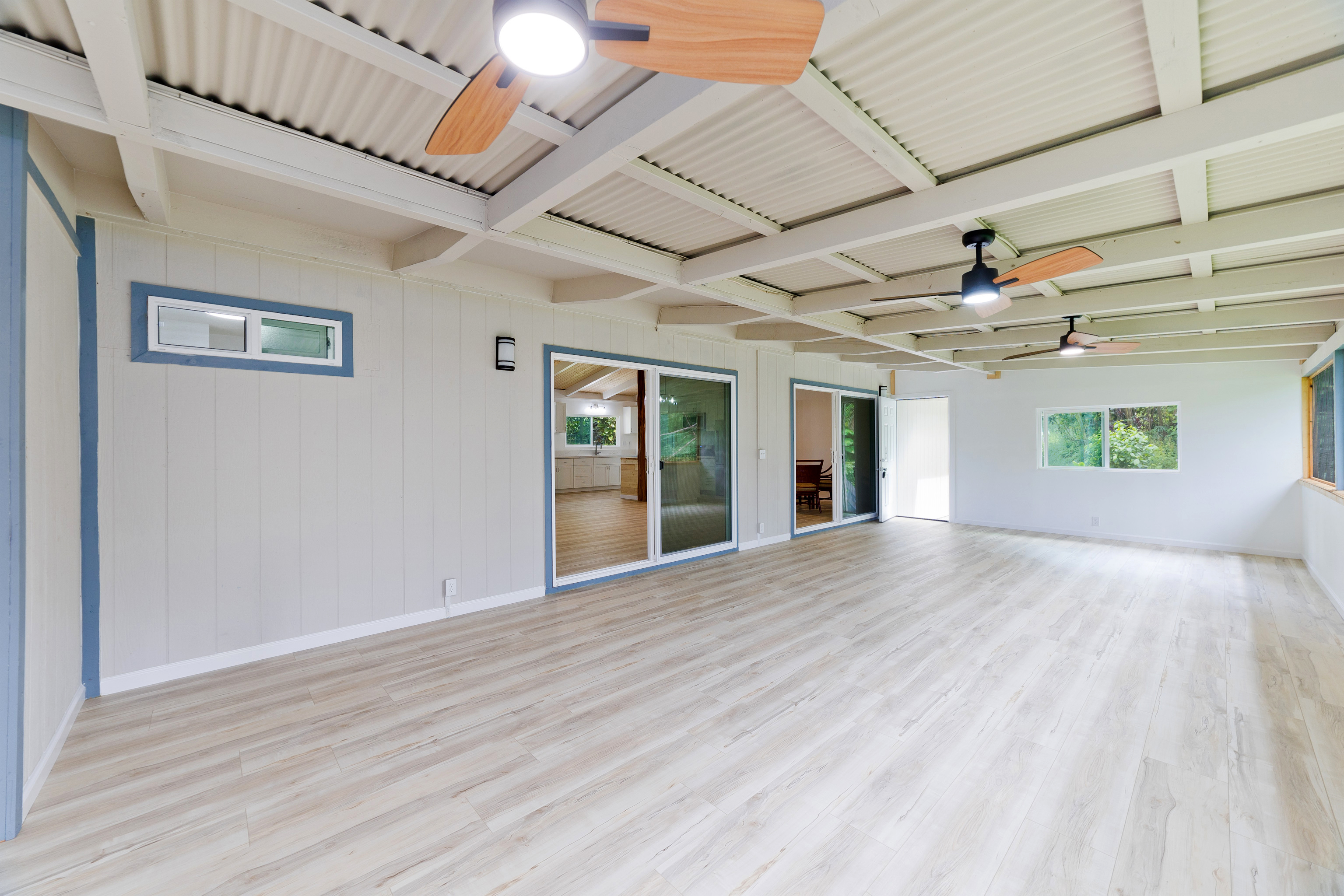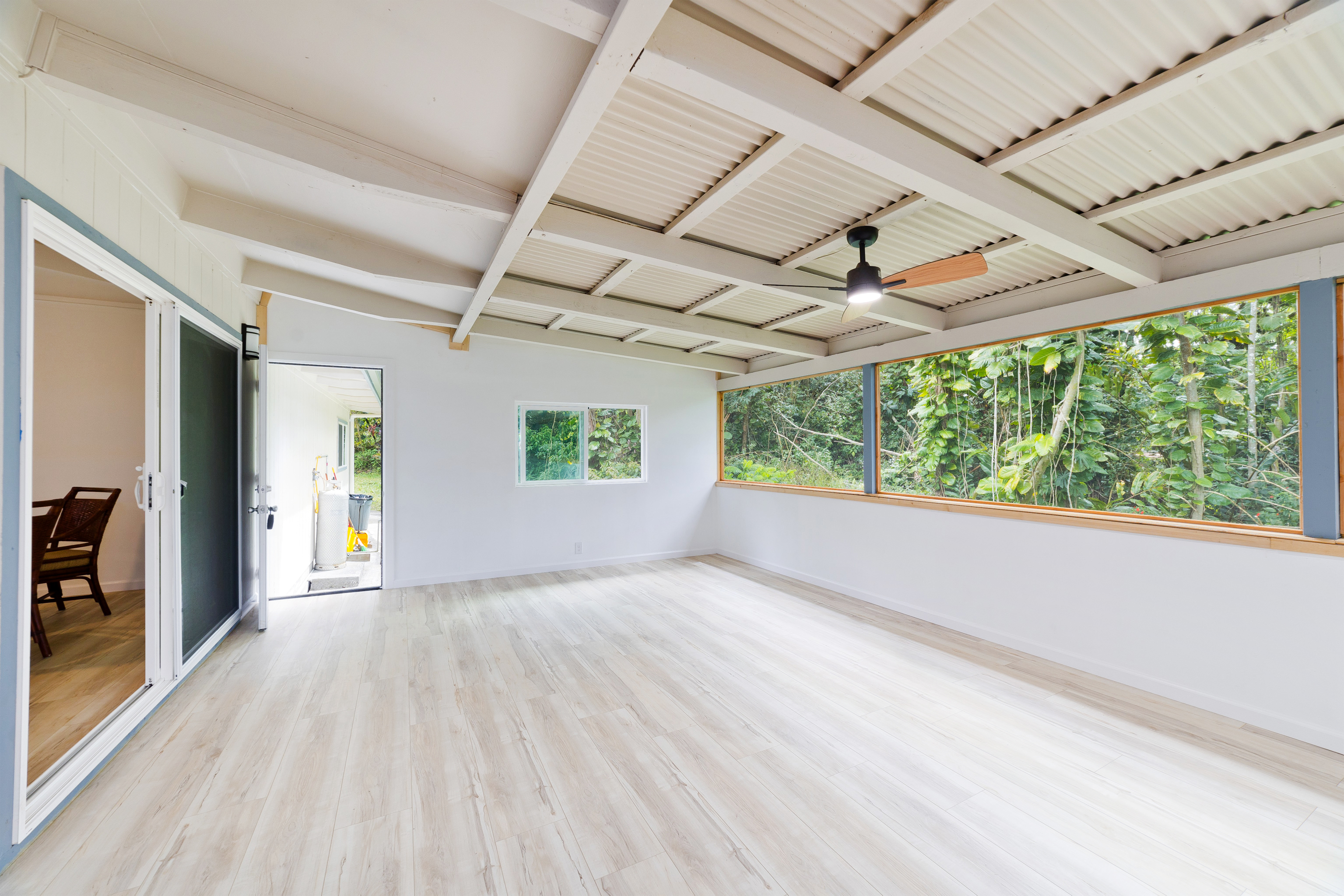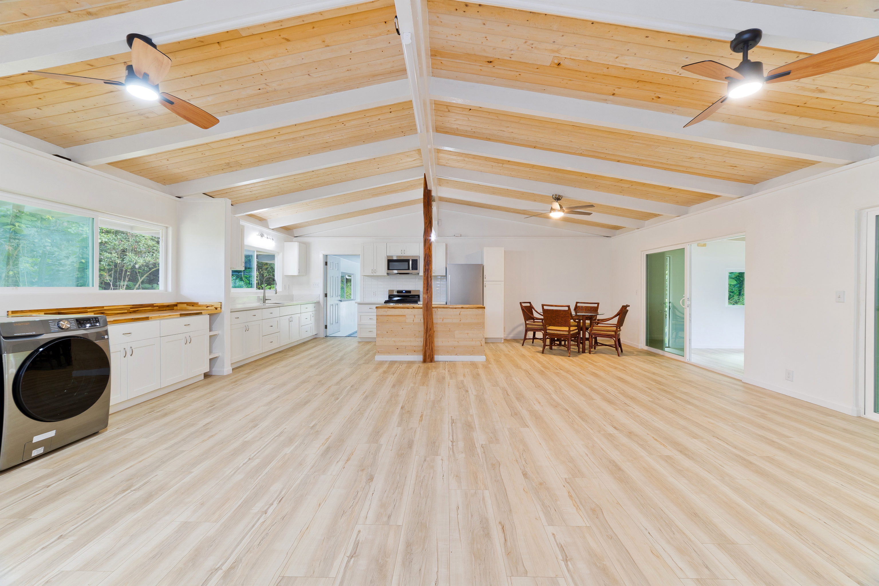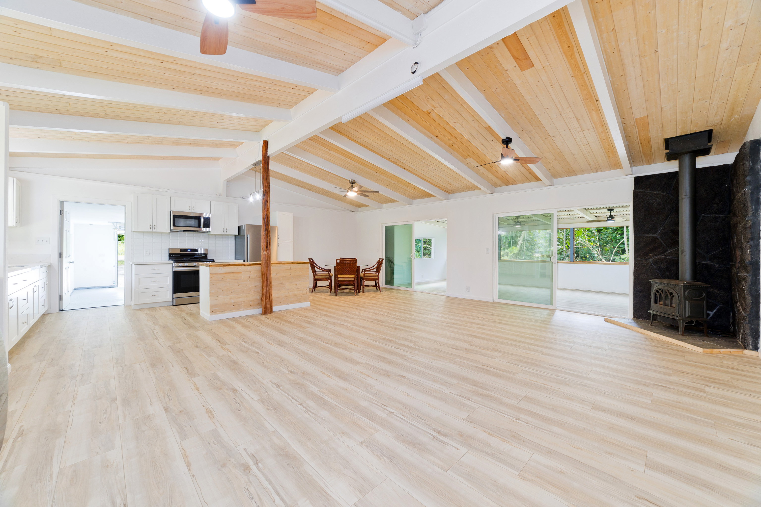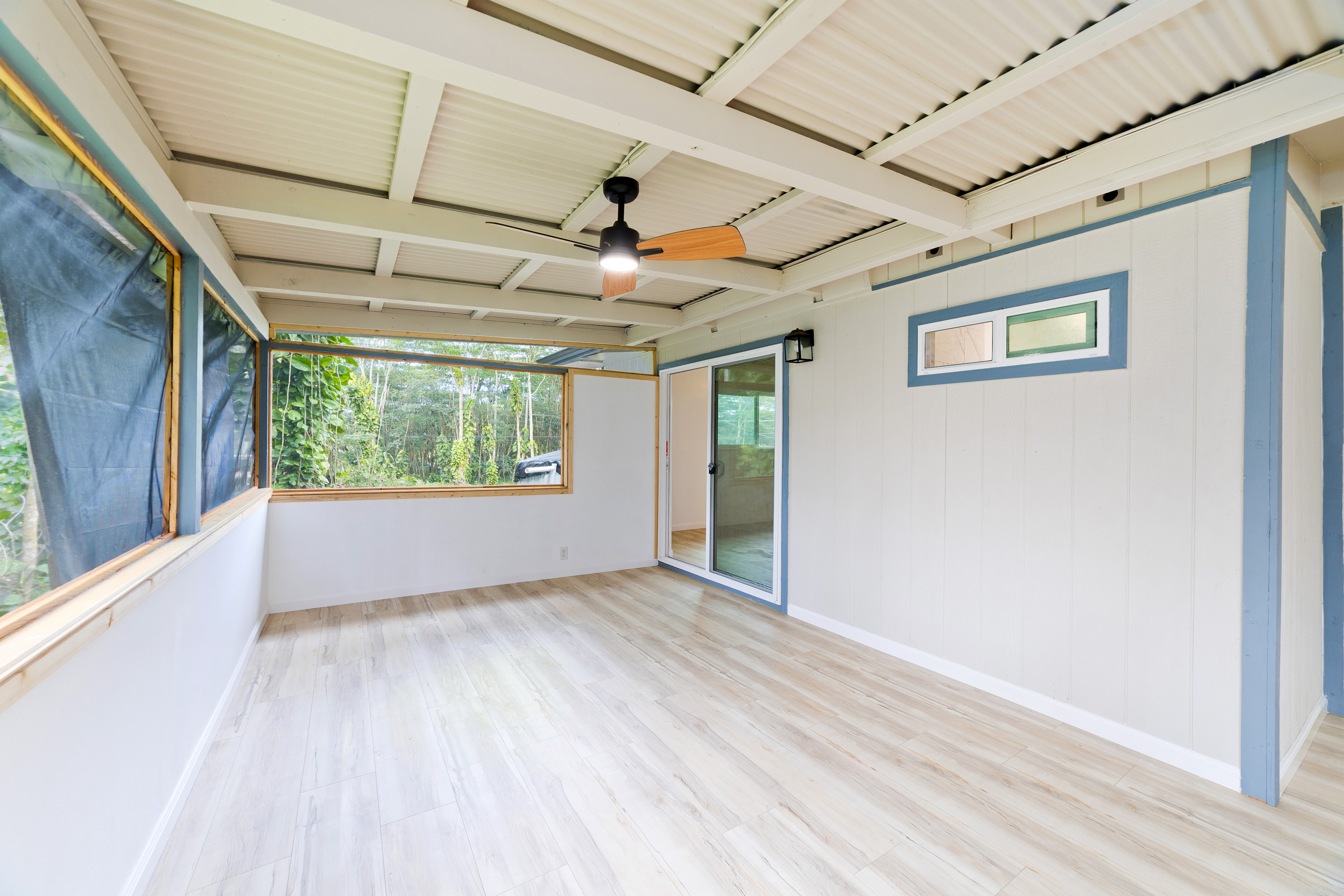 Welina mai! Discover your dream turnkey oasis, situated on .37 acres in tranquil Nanawale Estates. While providing a sense of seclusion this home is also conveniently located near the new Puna Kai Shopping Center and Hawai’i Volcanoes National Park. This bright and airy 3 bedroom 2 bath single family home showcases stunning views of the lush volcanic rainforest. Boasting over 1400 sqft of living space this unique Hawaiian Bungalow offers indoor and outdoor retreat-style living. Step inside to an open concept living area where vaulted ceilings, luxury plank flooring and sleek quartz countertops offer craftsmanship and endless potential. The updated kitchen shines with new stainless steel appliances and an interior laundry room for ease and access. The two and a half car garage with epoxy coating comes ready to work with a new garage door. Both bathrooms come equipped with luxurious walk-in showers as well. Outside, the yard comes ready to harvest with mature fruit trees(avocado, mango and banana) garden beds, space for pets and future expansion. New gutters and water tank ensure low maintenance living with peace of mind. This home is slice of paradise you don’t wanna miss out on! All comments, data is provided by seller or seller's representatives. Buyer to confirm all & hold all parties harmless from any discrepancy data in the mls and advertising. Limited Service—Data Entry Addendum signed by seller/s must be signed by buyer/s with Purchase Contract.