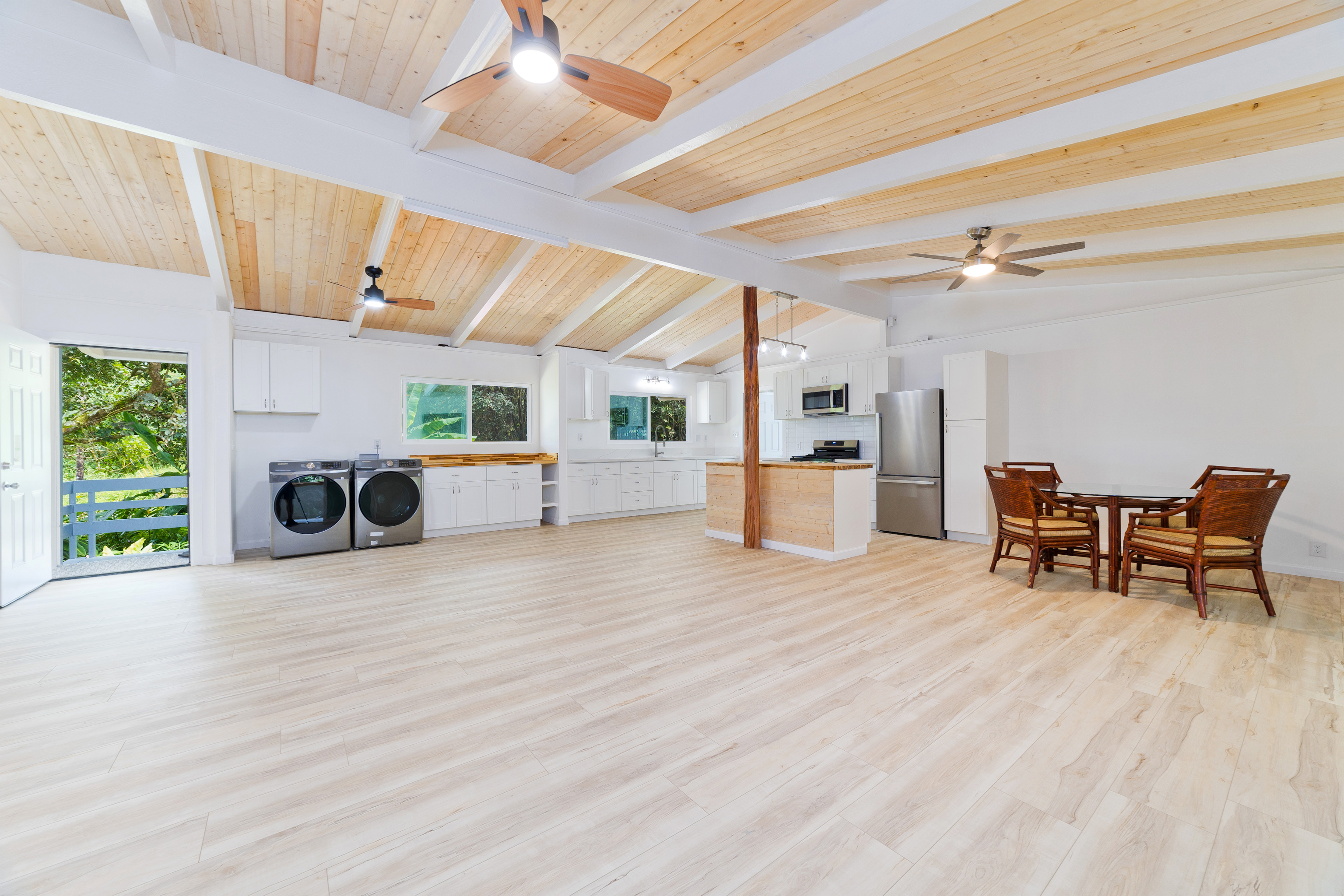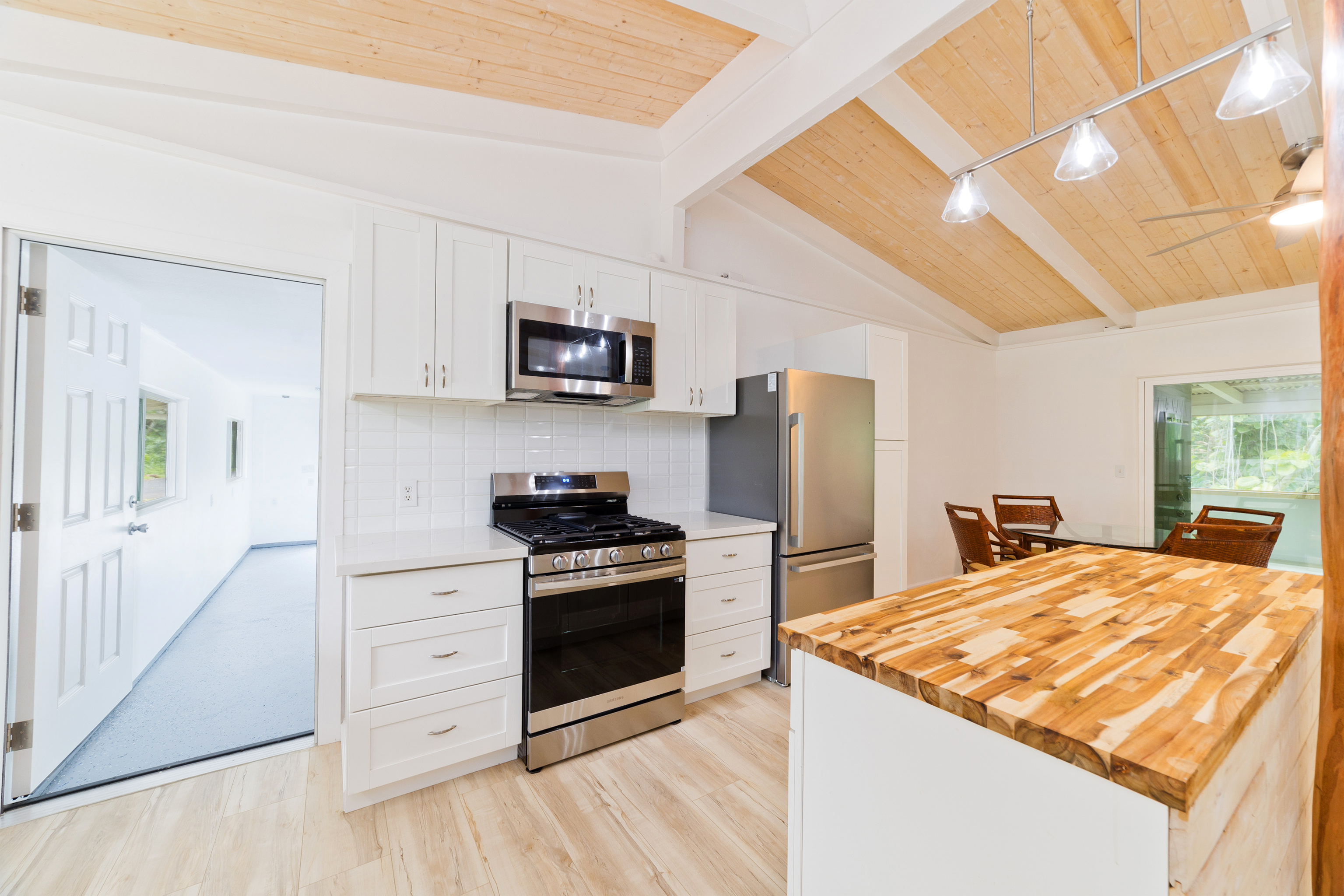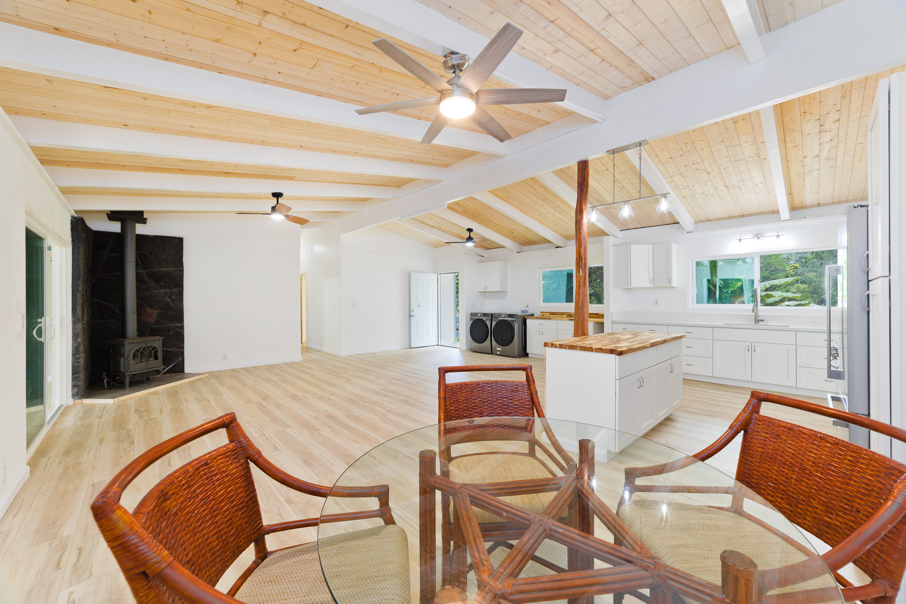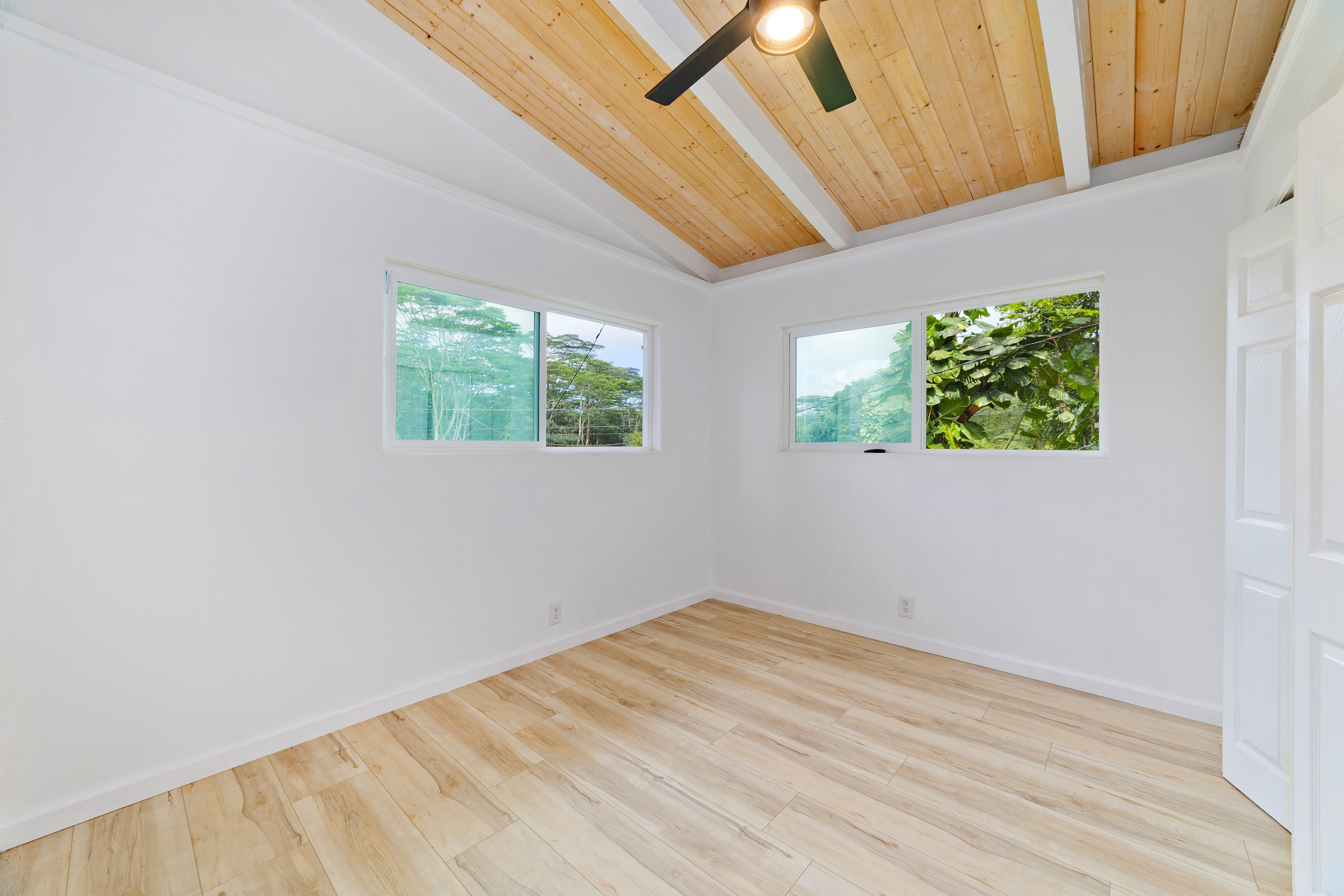Welina mai! Discover your dream turnkey oasis, situated on .37 acres in tranquil Nanawale Estates. While providing a sense of seclusion this home is also conveniently located near the new Puna Kai Shopping Center and Hawai’i Volcanoes National Park. This bright and airy 3 bedroom 2 bath single family home showcases stunning views of the lush volcanic rainforest. Boasting over 1400 sqft of living space this unique Hawaiian Bungalow offers indoor and outdoor retreat-style living. Step inside to an open concept living area where vaulted ceilings, luxury plank flooring and sleek quartz countertops offer craftsmanship and endless potential. The updated kitchen shines with new stainless steel appliances and an interior laundry room for ease and access. The two and a half car garage with epoxy coating comes ready to work with a new garage door. Both bathrooms come equipped with luxurious walk-in showers as well. Outside, the yard comes ready to harvest with mature fruit trees(avocado, mango and banana) garden beds, space for pets and future expansion. New gutters and water tank ensure low maintenance living with peace of mind. This home is slice of paradise you don’t wanna miss out on! All comments, data is provided by seller or seller's representatives. Buyer to confirm all & hold all parties harmless from any discrepancy data in the mls and advertising. Limited Service—Data Entry Addendum signed by seller/s must be signed by buyer/s with Purchase Contract.