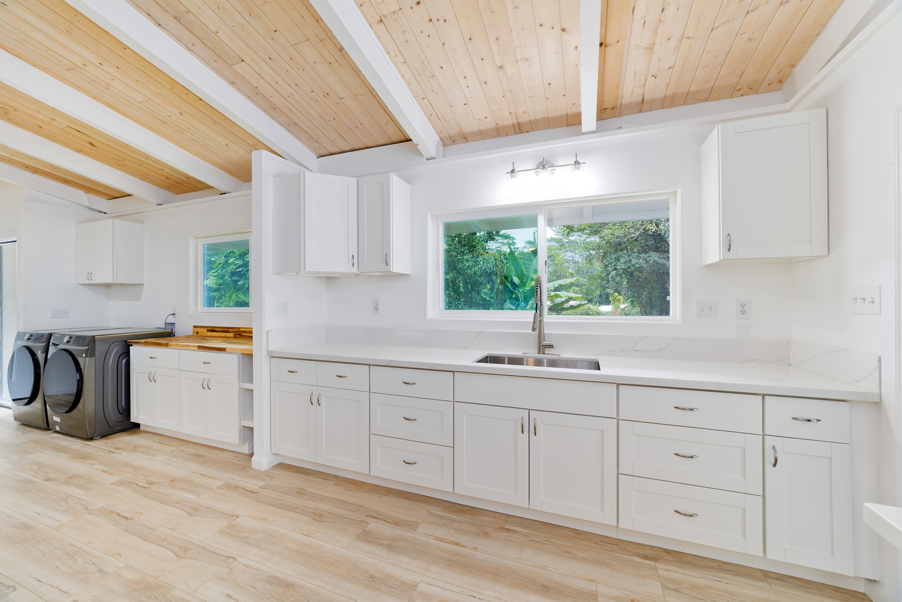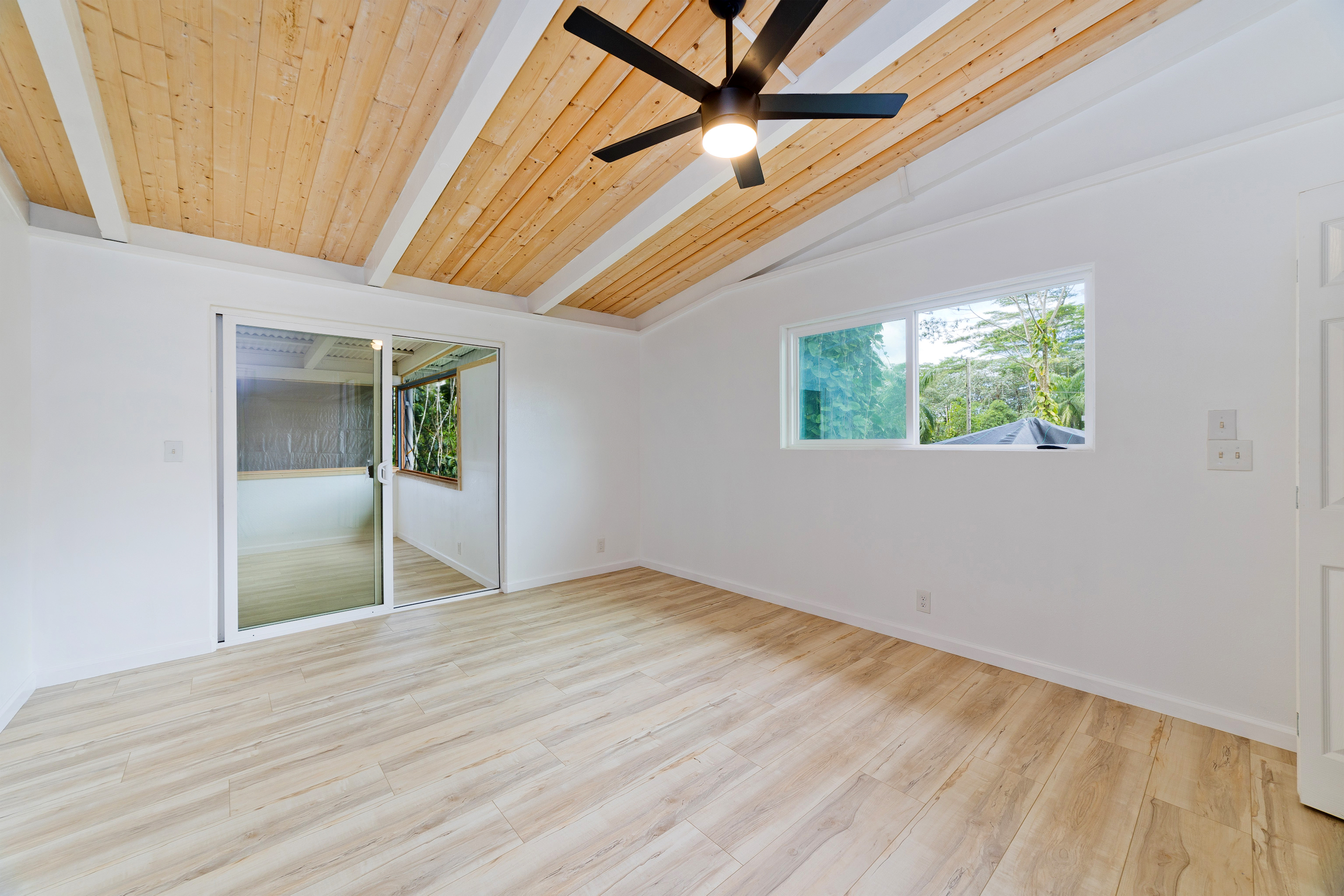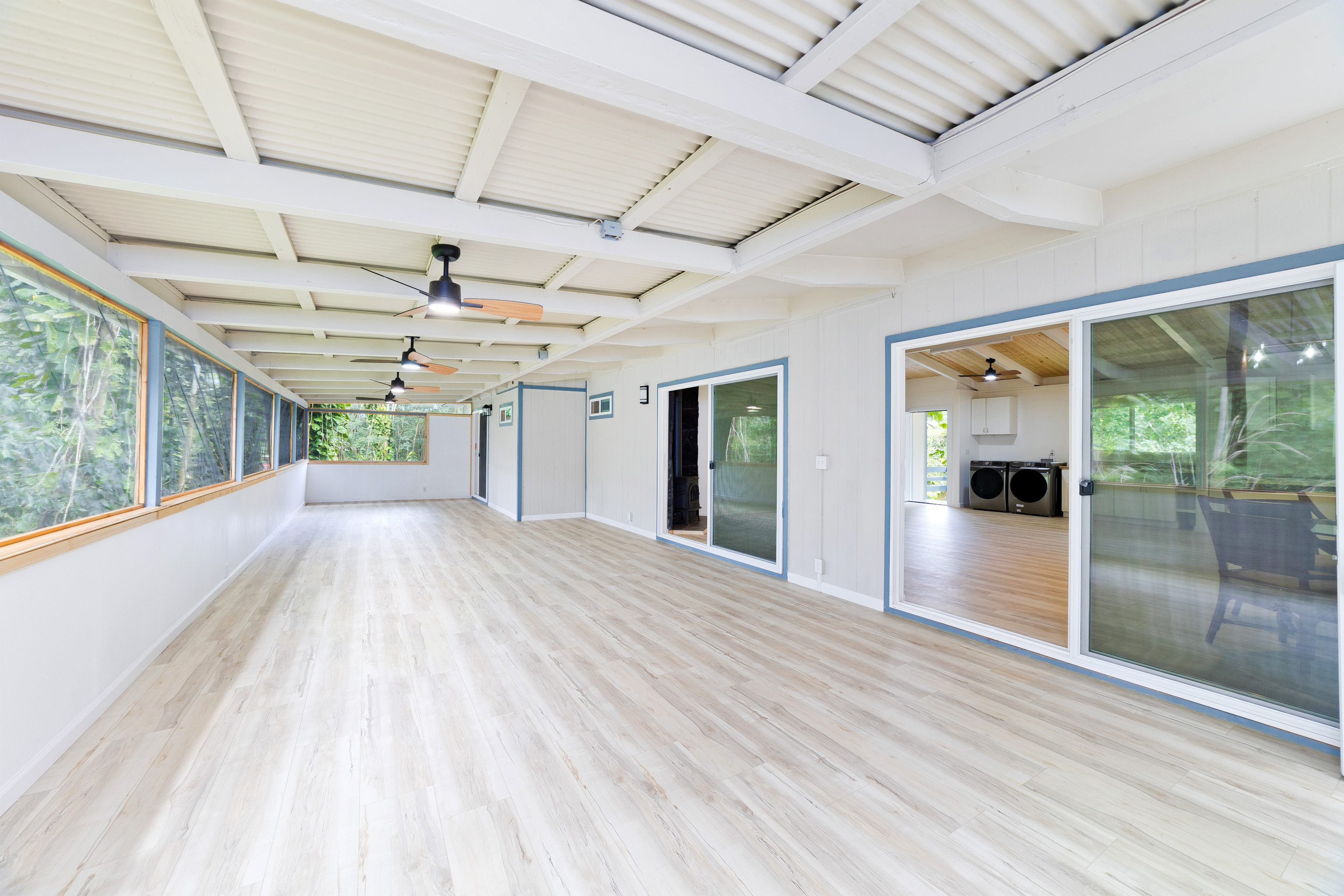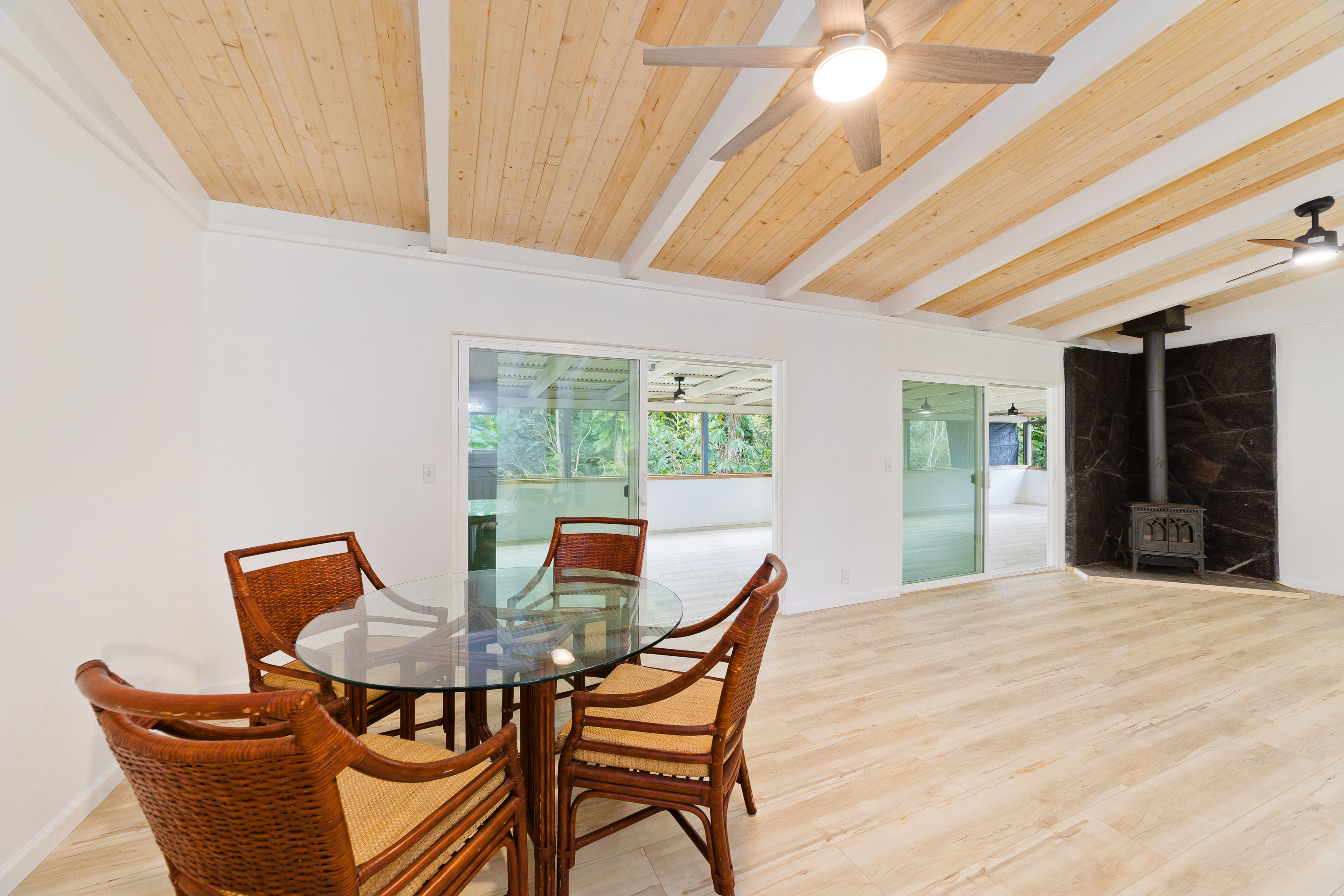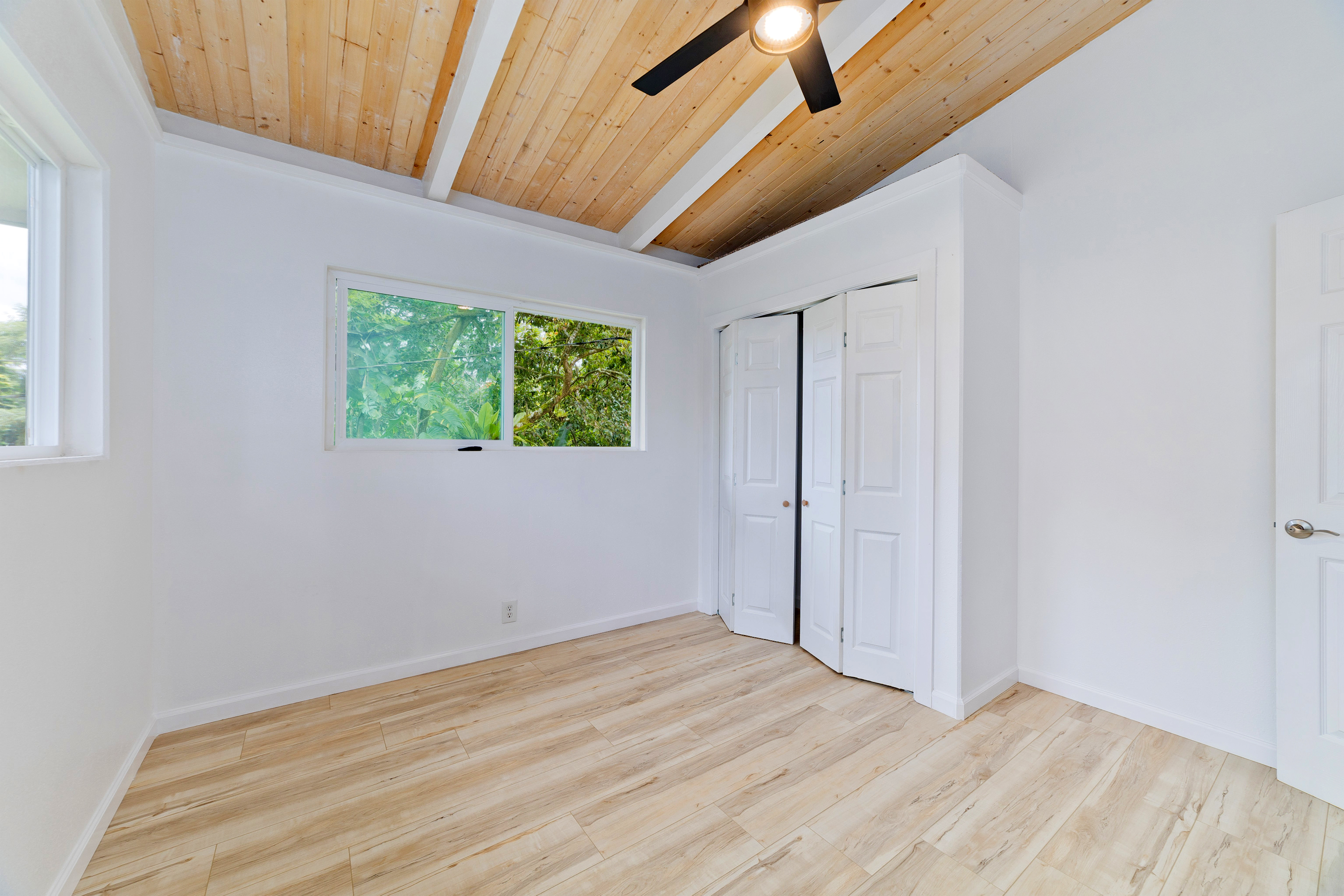 Welina mai! Discover your dream turnkey oasis, situated on .37 acres in tranquil Nanawale Estates. While providing a sense of seclusion this home is also conveniently located near the new Puna Kai Shopping Center and Hawai’i Volcanoes National Park. This bright and airy 3 bedroom 2 bath single family home showcases stunning views of the lush volcanic rainforest. Boasting over 1400 sqft of living space this unique Hawaiian Bungalow offers indoor and outdoor retreat-style living. Step inside to an open concept living area where vaulted ceilings, luxury plank flooring and sleek quartz countertops offer craftsmanship and endless potential. The updated kitchen shines with new stainless steel appliances and an interior laundry room for ease and access. The two and a half car garage with epoxy coating comes ready to work with a new garage door. Both bathrooms come equipped with luxurious walk-in showers as well. Outside, the yard comes ready to harvest with mature fruit trees(avocado, mango and banana) garden beds, space for pets and future expansion. New gutters and water tank ensure low maintenance living with peace of mind. This home is slice of paradise you don’t wanna miss out on! All comments, data is provided by seller or seller's representatives. Buyer to confirm all & hold all parties harmless from any discrepancy data in the mls and advertising. Limited Service—Data Entry Addendum signed by seller/s must be signed by buyer/s with Purchase Contract.