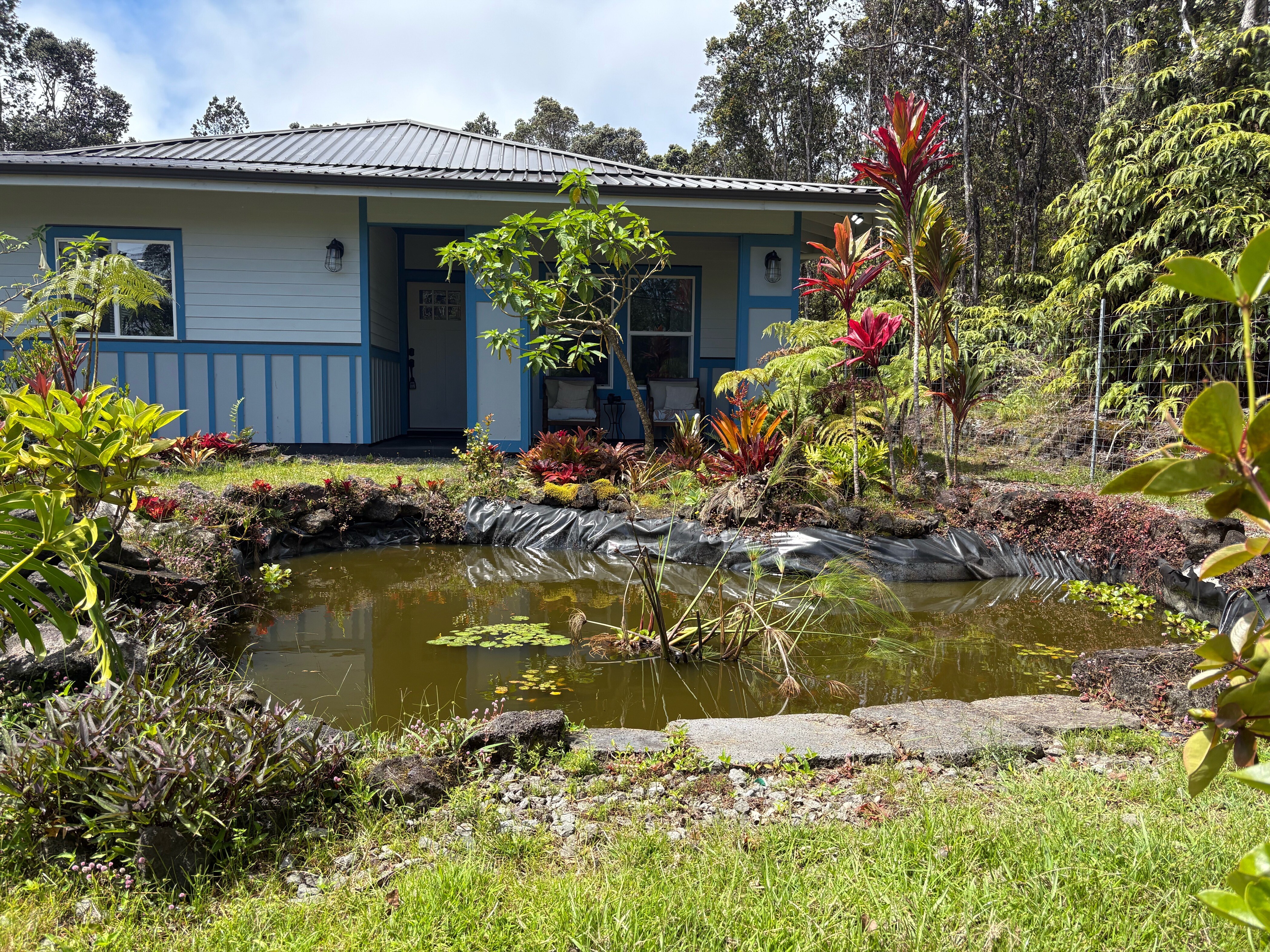 Discover this turn key newly built, two-bedroom, one-bathroom home located in the beautiful Ohia Estates subdivision. This property features a fully fenced 9,150-square-foot lot with a charming koi pond, a beautiful wood-burning stove, a garden area, and not to mention the beautiful butcher block countertops throughout the kitchen. Plus, an enjoyable beautiful covered lanai sitting area to take in the backyard view of the garden!!