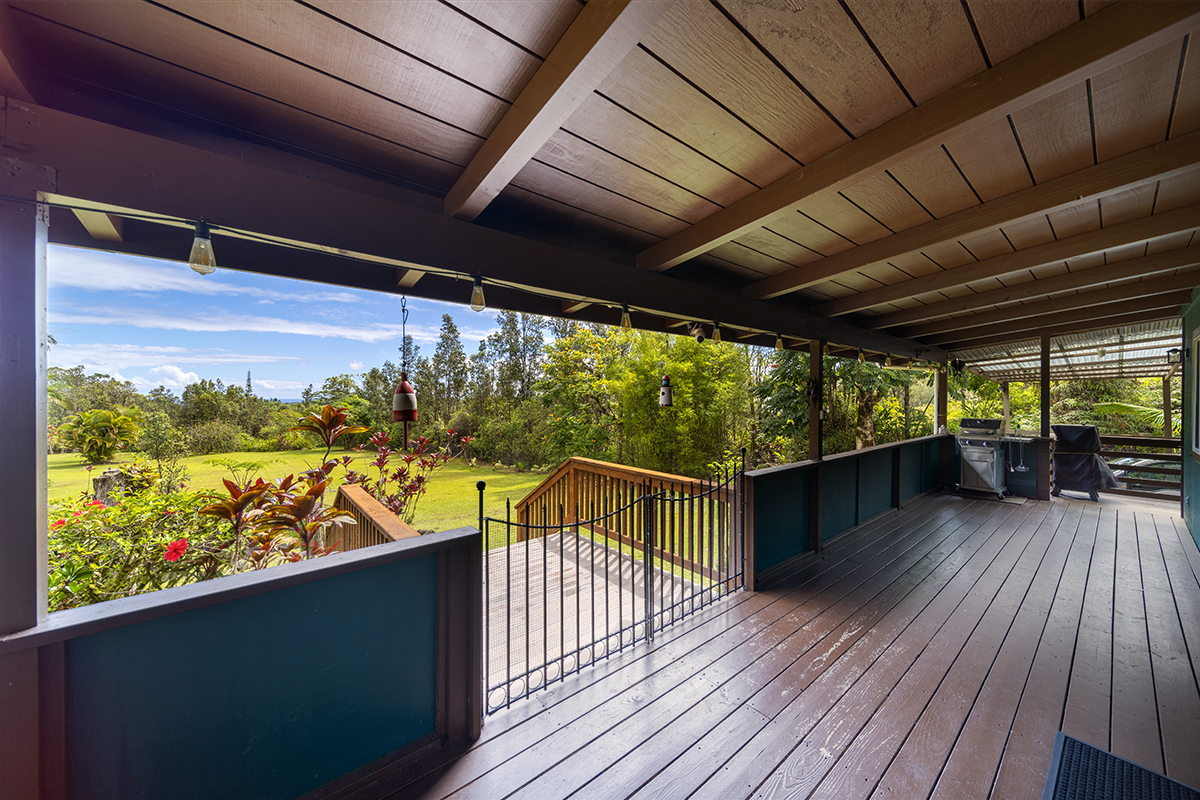 No other homes or structures are visible from the large and covered lanai that spans the entire front of the house.