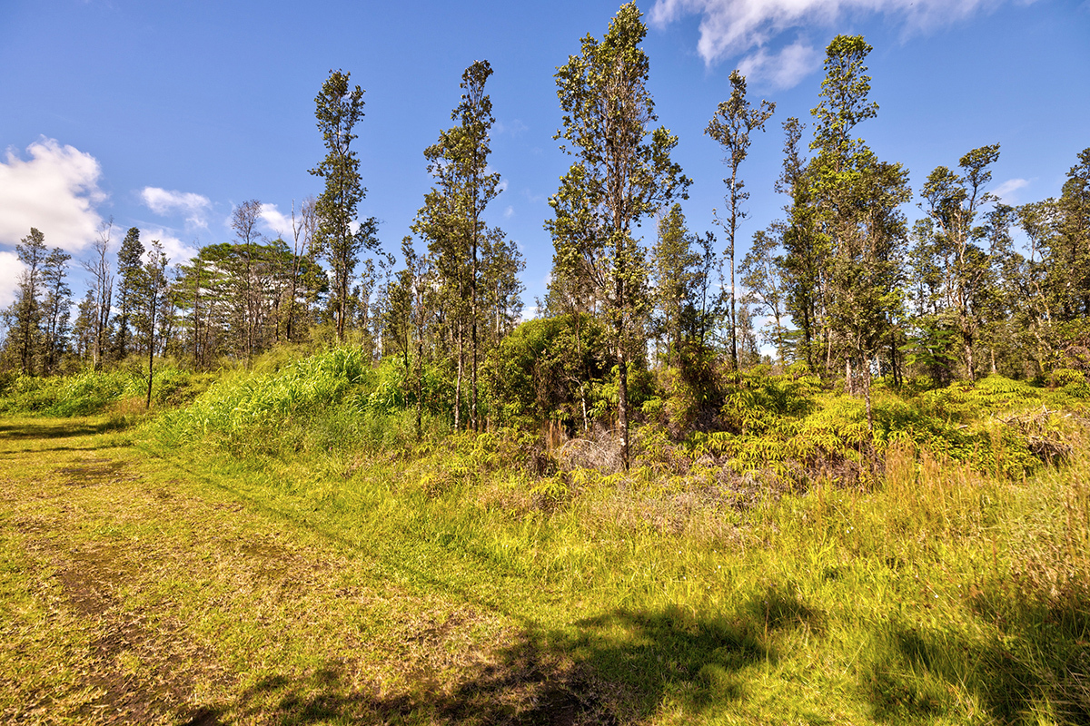 Aloha & E Komo Mai — Welcome to Your Own Lush Piece of Hawaiian Paradise! This is a very unique opportunity to purchase a large peak size pinnacle 4.94 acre parcel of beautiful tropical land, located in a prime location in Keaau on the East side of the Big Island - the ultimate Orchidland apex of Aulii Street parcel! The property is zoned A-3A, and is the highest, largest and the last lot on the street. There is a border of native Ohia forest surrounding the property, with an expansive clearing that opens up to many house pad options and home sites. The seller has already cleared a driveway with gravel added and the front half of the lot has also been cleared including the fence line. The Seller has uncovered 9 Avocado trees, a Lychee tree and a Star fruit tree upon clearing the land. Also since the lot borders Hawaiian acres there is an approximate 3 foot gap in between the lot and the next, that according to the survey is not owned by anyone and therefore gives increased privacy to the property along its border. The seller has already completed a K1 property survey with all four corners marked with 2 additional points on the east side line, and one on the west side line. This property has an excellent location, tucked right into the heart of Orchidland, but simultaneously large enough to allow for complete privacy and peacefulness . It is only a short fifteen minute drive to Pahoa Town and twenty five minute drive to Hilo and all of its conveniences . A beautiful scenic fifteen minute drive across the highway, will get you to the magical blue Pacific Ocean at the Hawaiian Paradise Park sea cliffs, where there are are various hikes, and tide pools awaiting for your exploration.