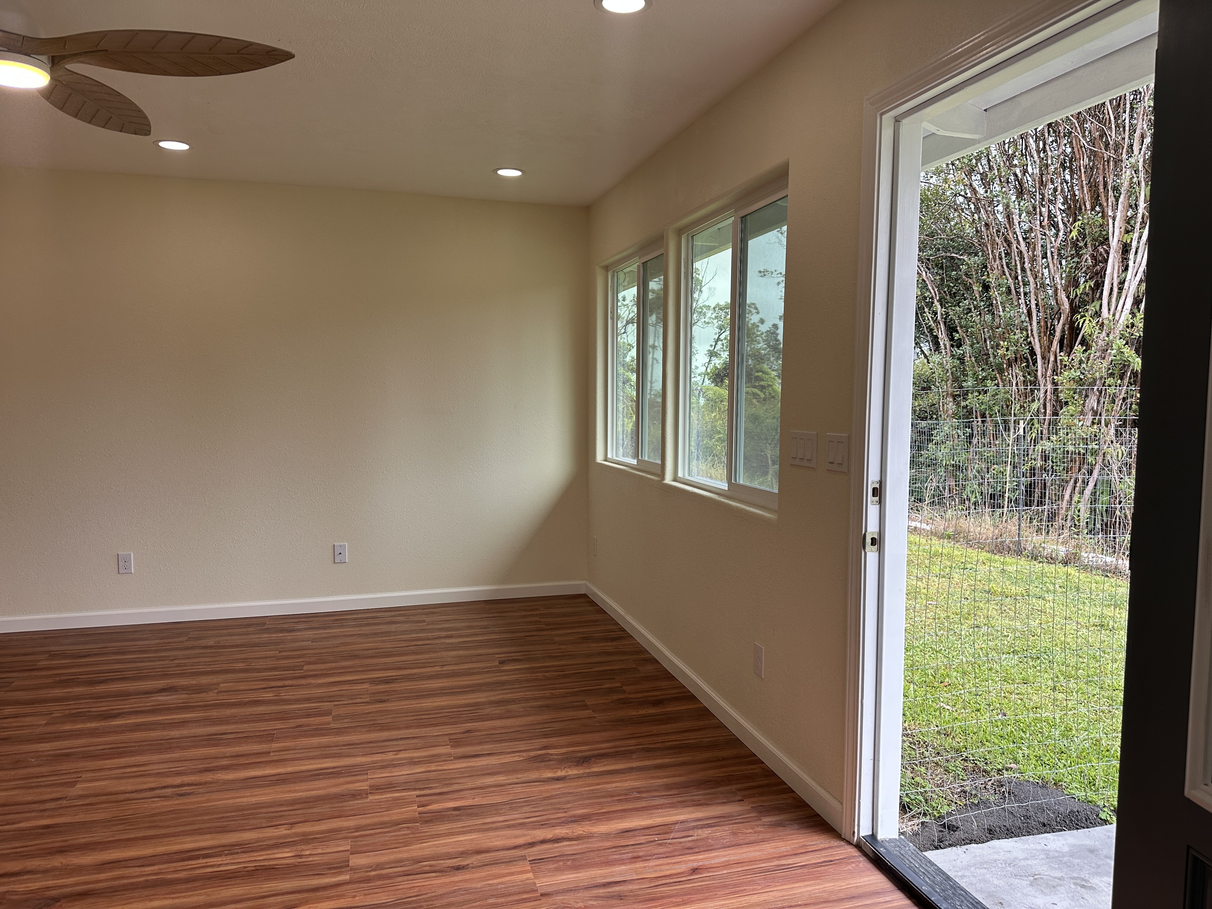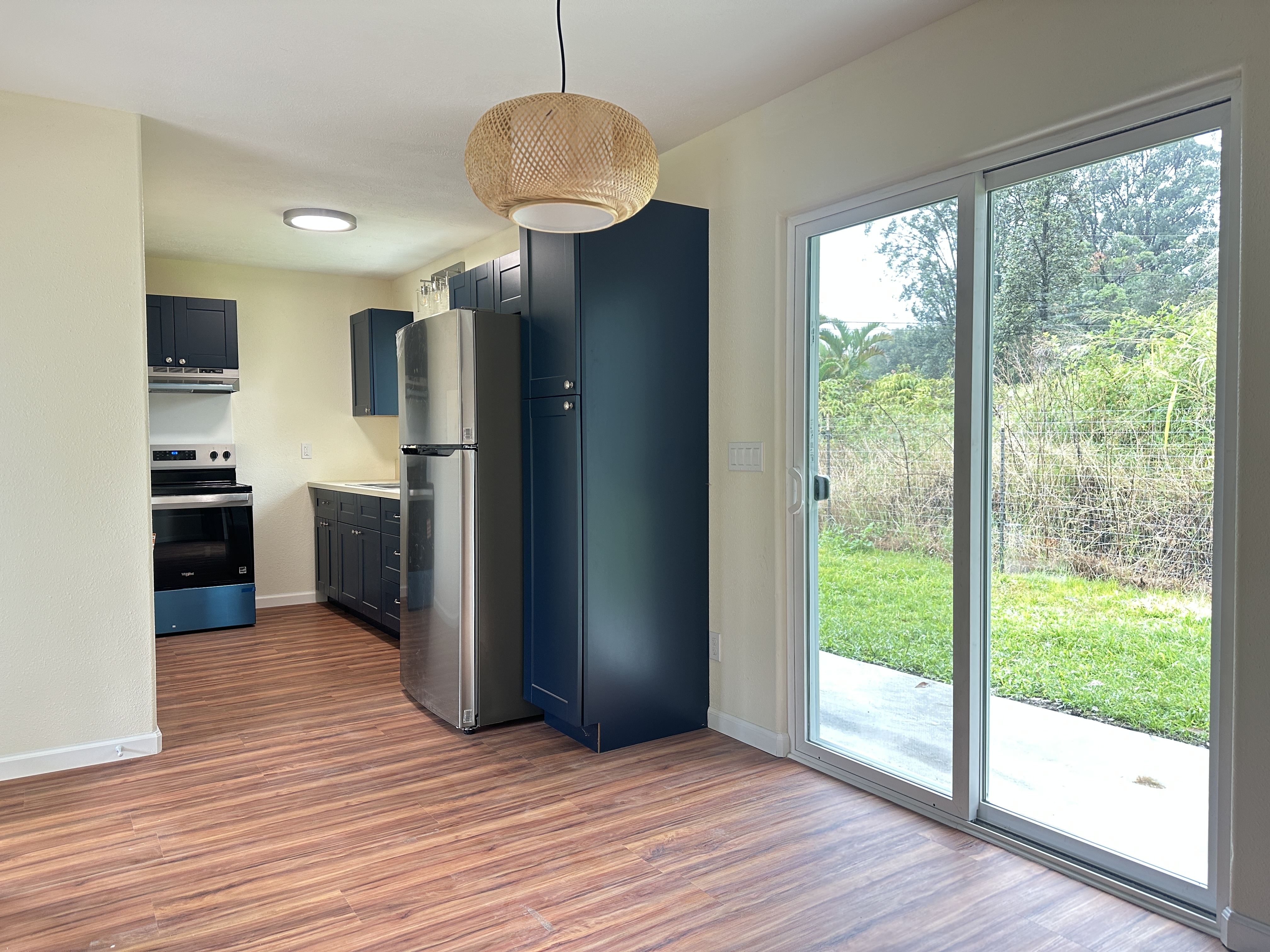 Welcome to Pacific Paradise Manor in Mountain View a close knit community with pride ownerships. This brand new renovated 2 bedrooms and 1 full bath. New Kitchen cabinets, granite countertop with stainless double sink. New Stainless glass Range and exhaust hood. Brand new Refrigerator. All new sliding picture windows throughout brings in fresh mountain breezes and brightness in the home. Carport lead in 2 separate new entry doors into kitchen and living room. Brand new bathroom shower wall to ceiling tiles with dual sliding glass shower doors. His and her dual set of cabinets and sinks. Recessed lightings and tropical ceiling fans in every rooms. Brand new vinyl flooring and baseboard, drywall texture and paint. New water Heater, catchment tank, gutters and pump system. Fully fenced side and back yard ready for your landscaping touch and pets. Come make this yours lovely home in paradise.