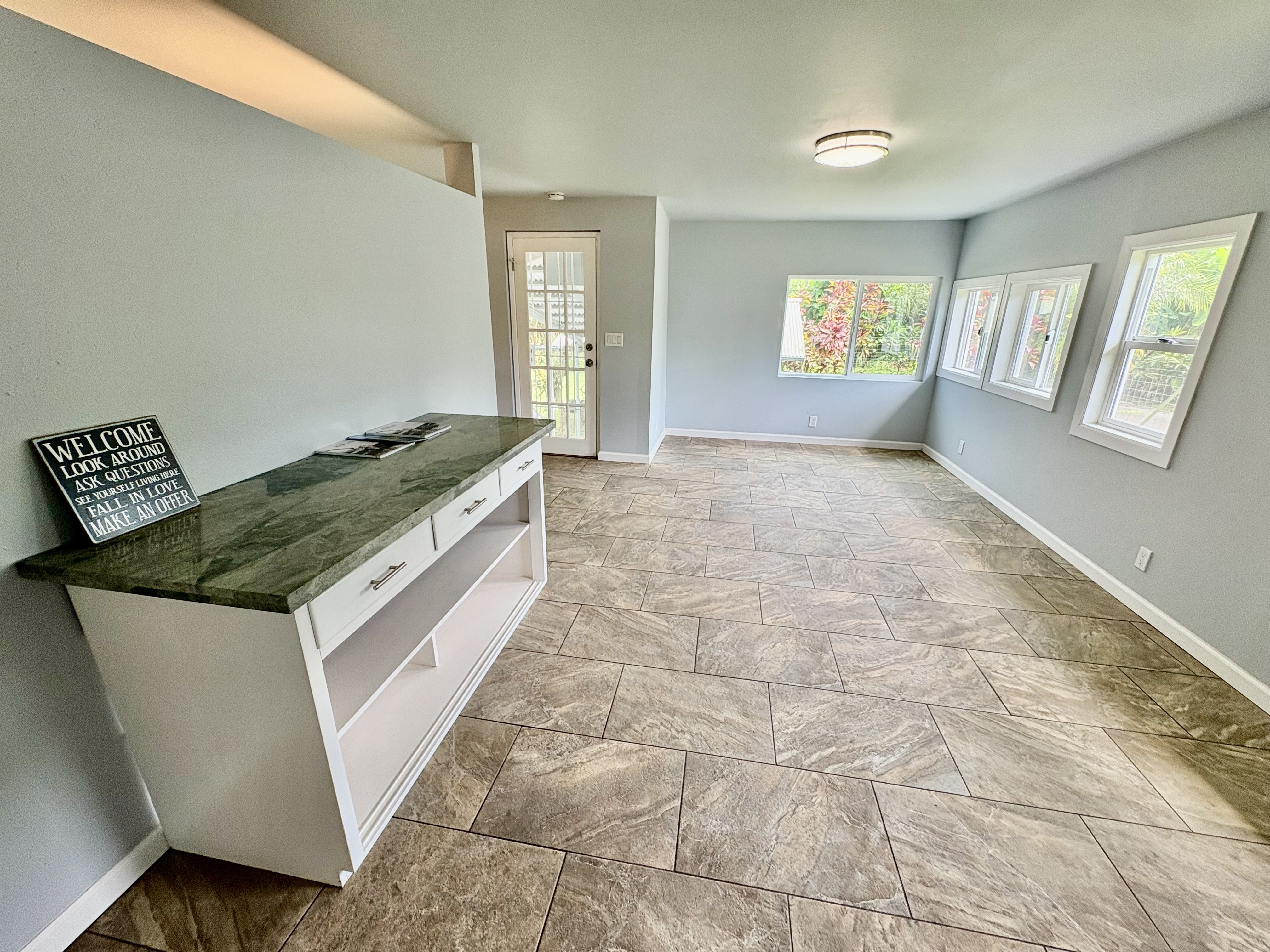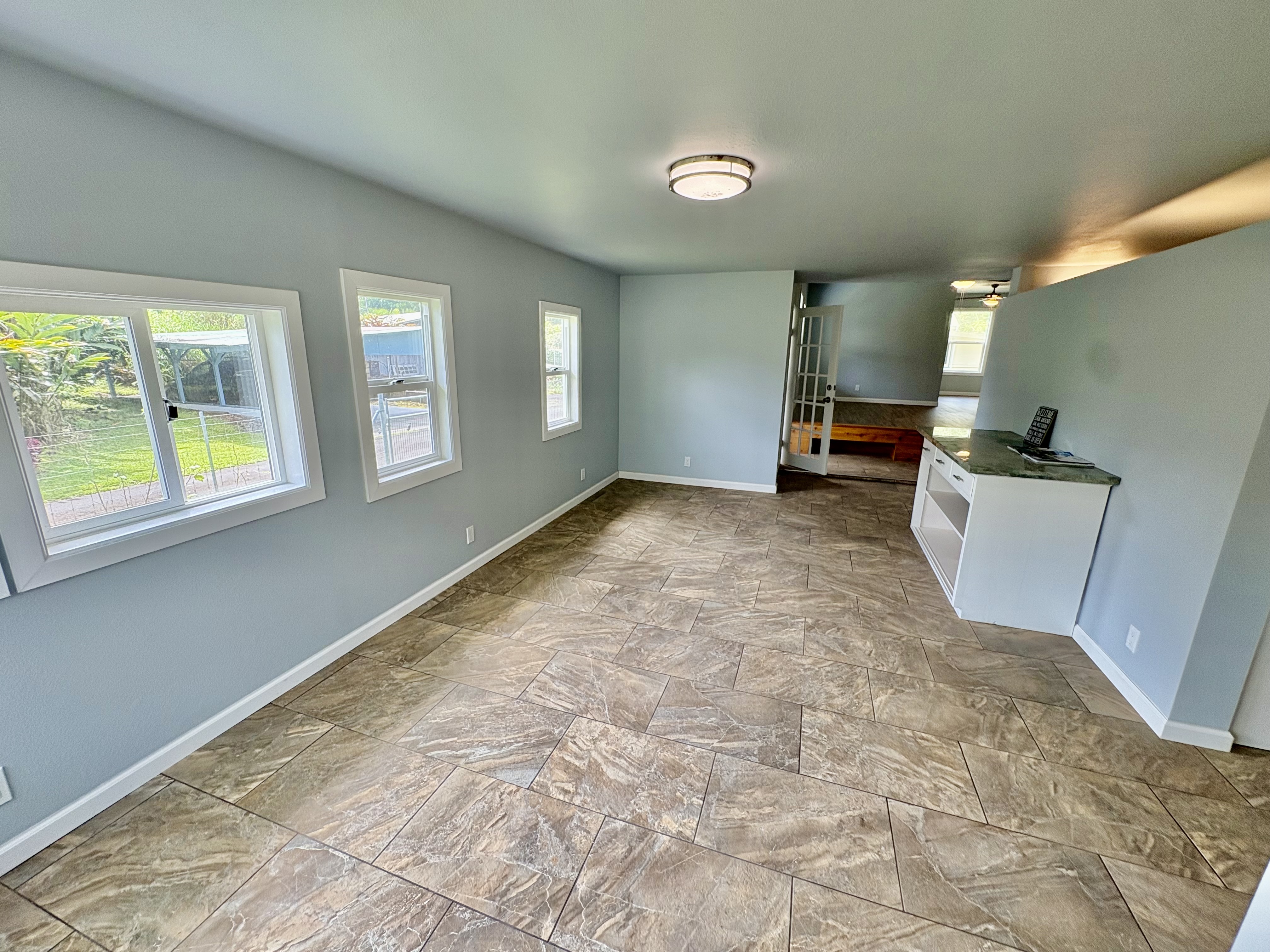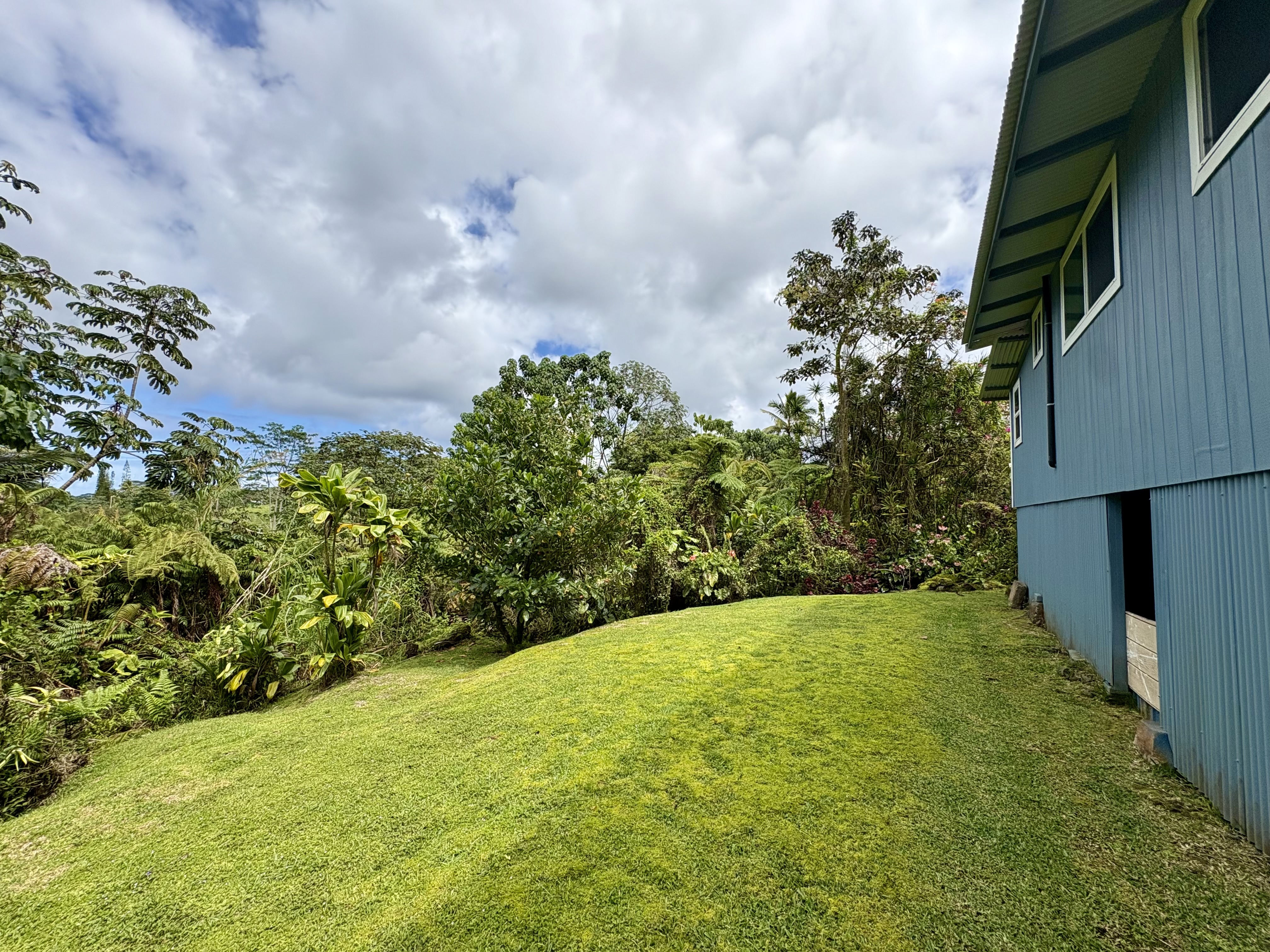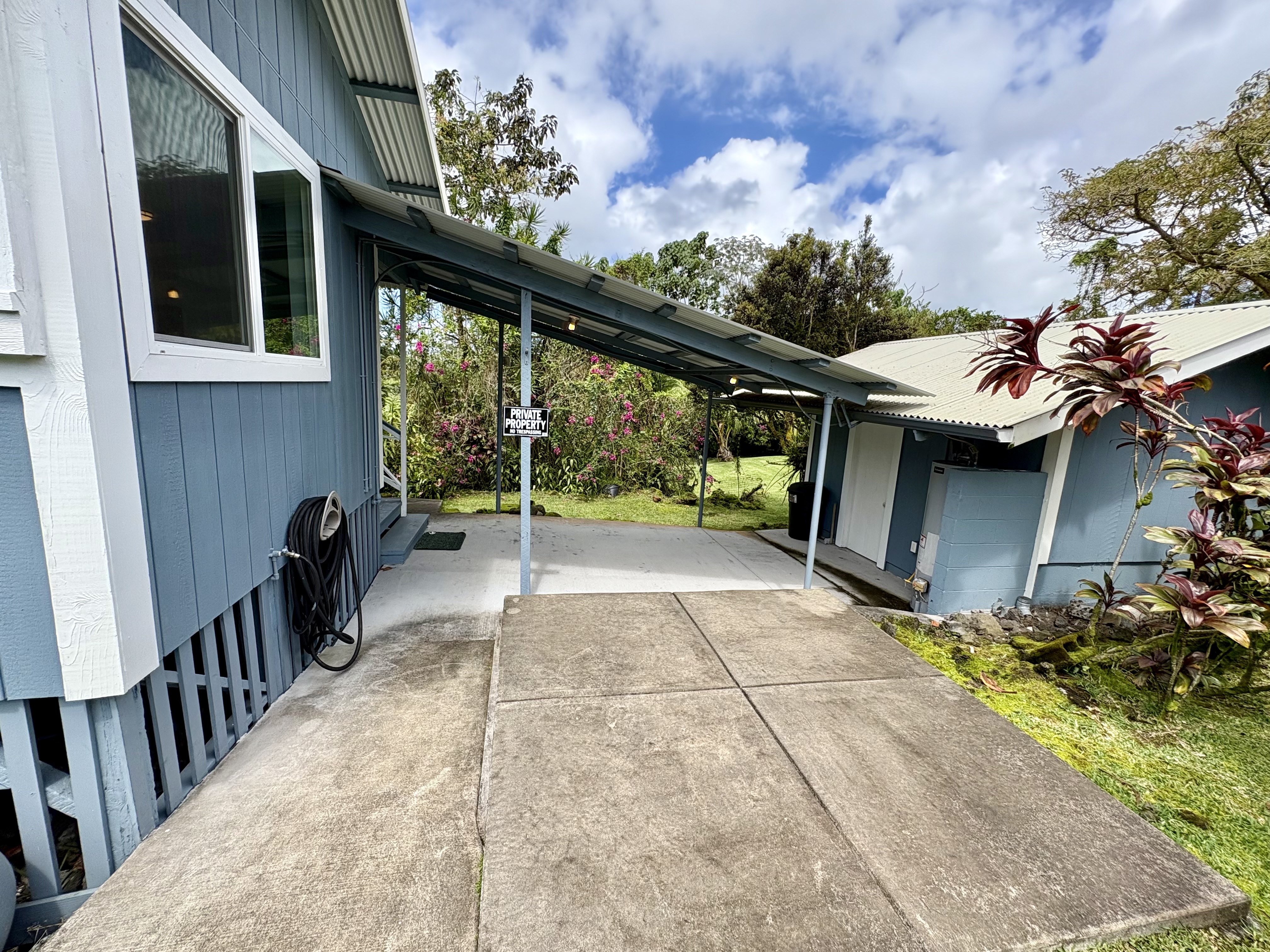 Sale includes TMKS 3-1-5-12-34 and 3-1-5-12-62. Unique opportunity to own two parcels in the heart of Pahoa Town. This renovated plantation-style 2-bedroom, 1-bath home sits on a 12,915 sq ft lot surrounded by lush tropical landscaping and a peaceful forest backdrop, with an additional TMK located across the road that includes a covered parking structure. The home has been extensively upgraded with a new roof and rafters, new interior and exterior paint, updated plumbing and electrical, storm windows and screens, and security screen doors. Interior features include mosaic stone tile flooring, luxury laminate flooring, tiled bathroom showers, and an updated kitchen with new appliances, cabinets, and countertops. A movable granite-top island adds flexibility to the dining space. The property features mature tropical landscaping including anthuriums, yellow ohia trees, lychee, avocado, citrus, tree ferns and liliko'i. The spacious living area offers abundant natural light and refreshing island breezes, while the primary bedroom enjoys peaceful forest views through newly installed windows. A major benefit is that the property is serviced by county water. The second TMK across the road provides a two-car covered parking area with a concrete base, offering additional flexibility for parking, storage, or future use. Conveniently located within walking distance to Pahoa town, shops, dining, and local amenities. Sale includes two TMKs, providing additional space and value with this unique property.