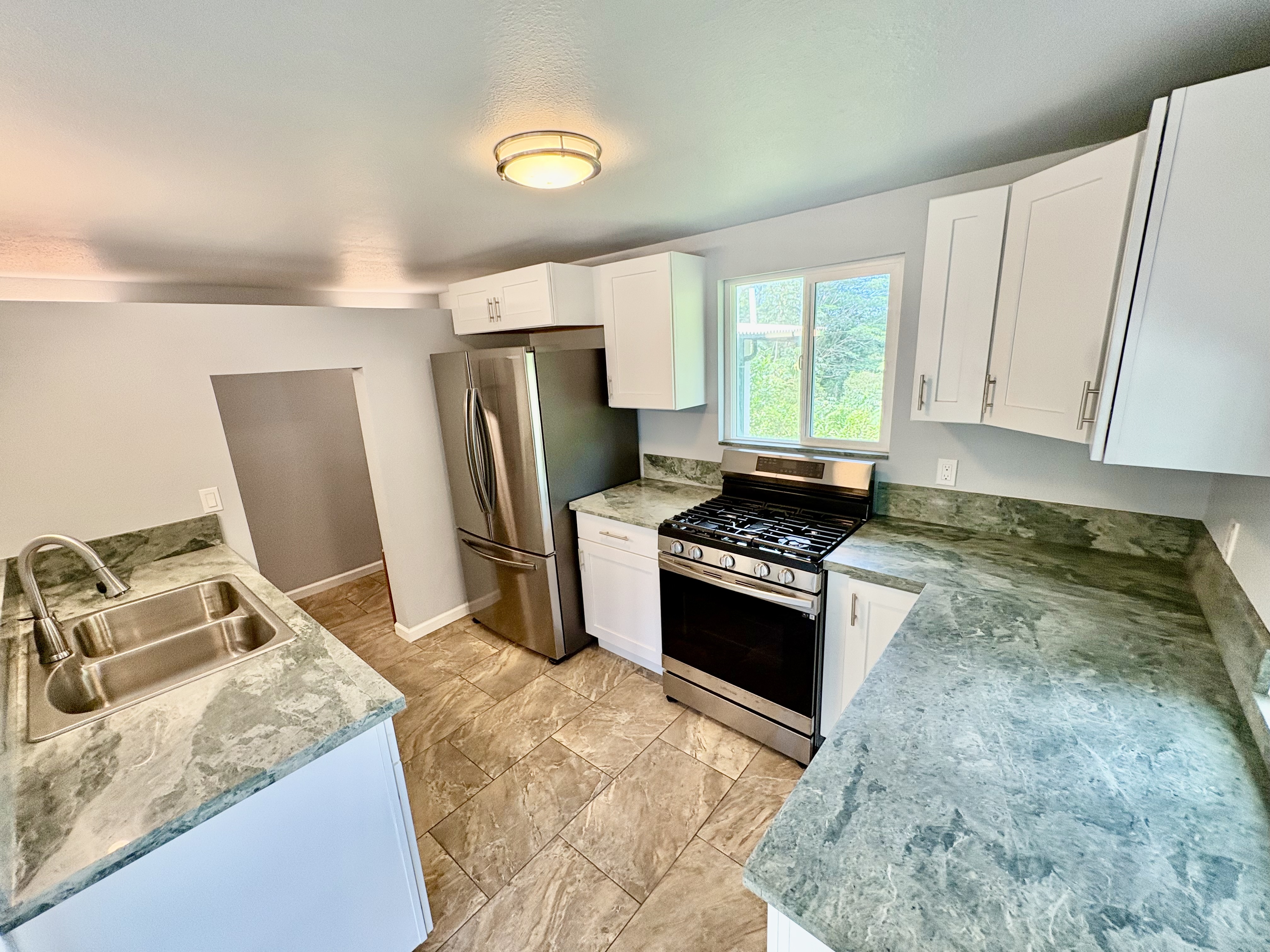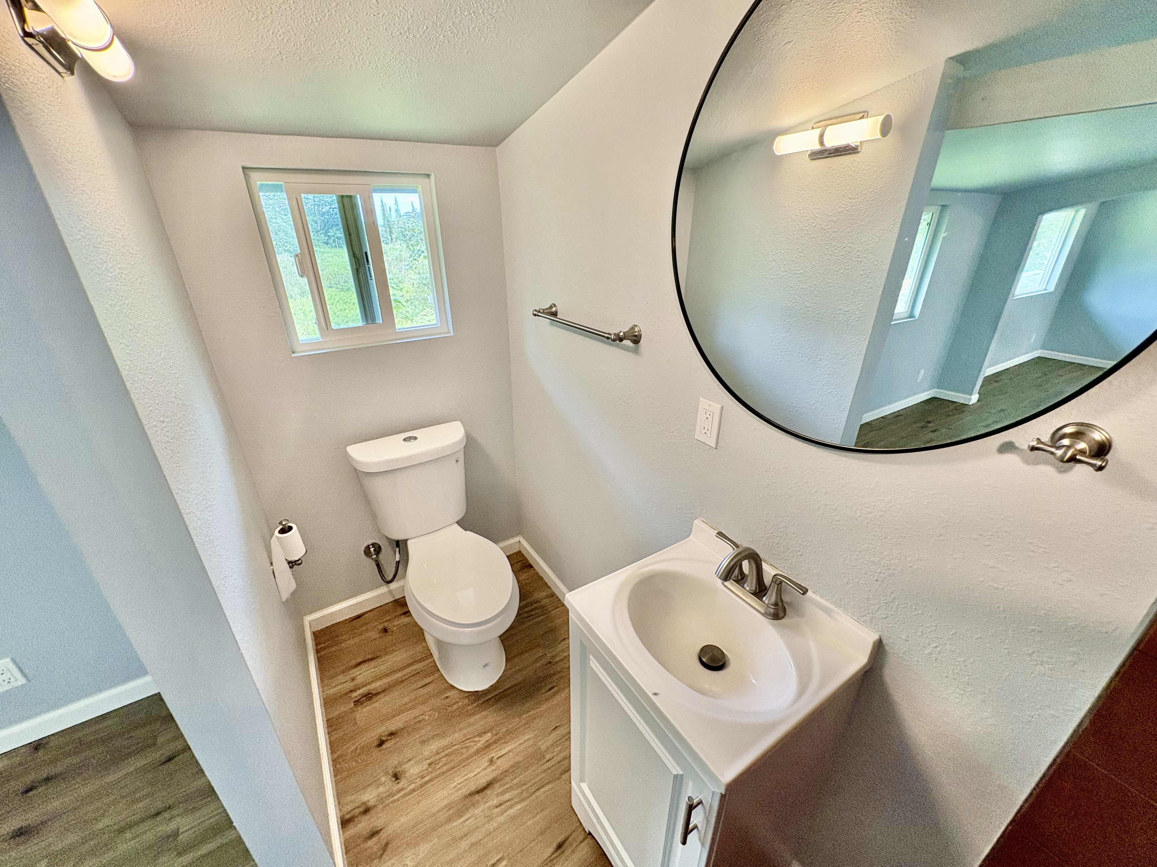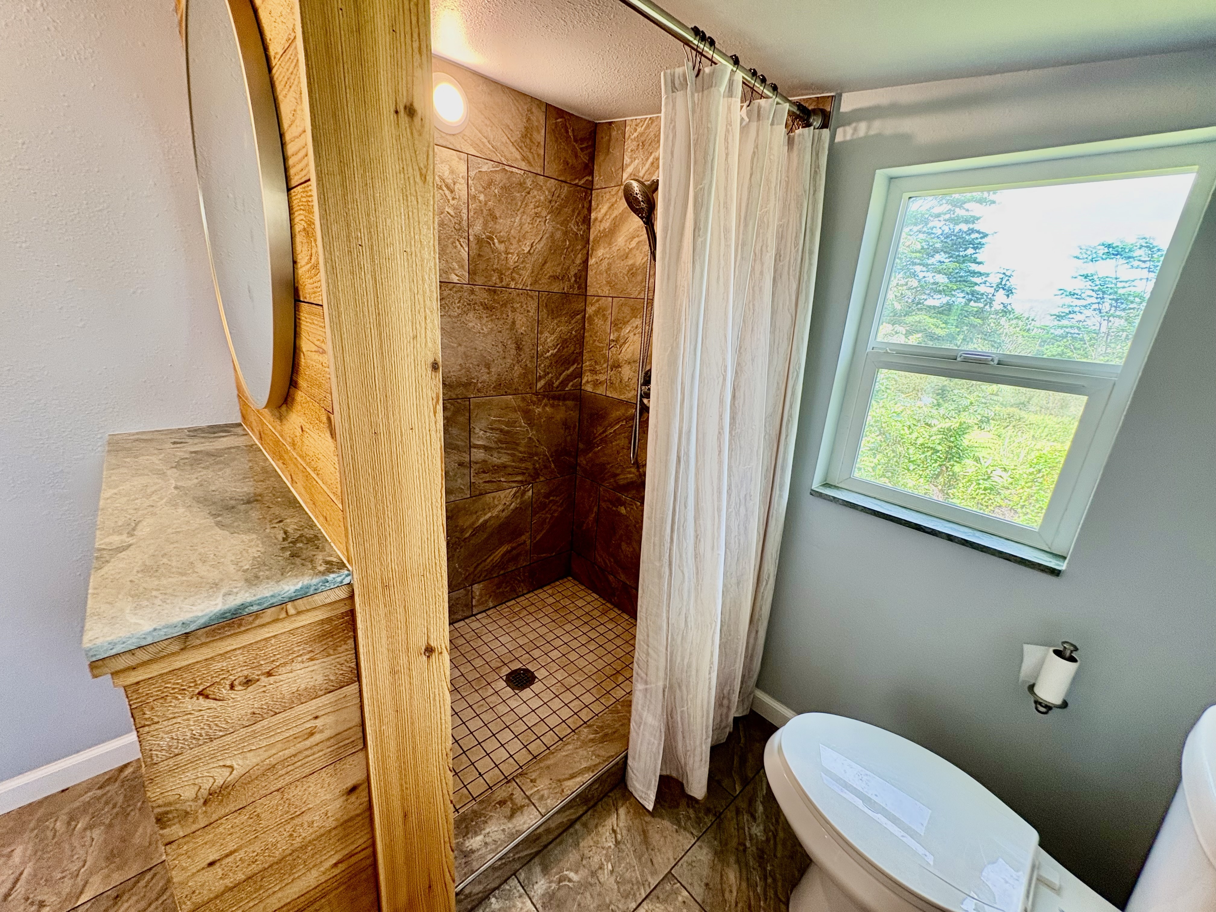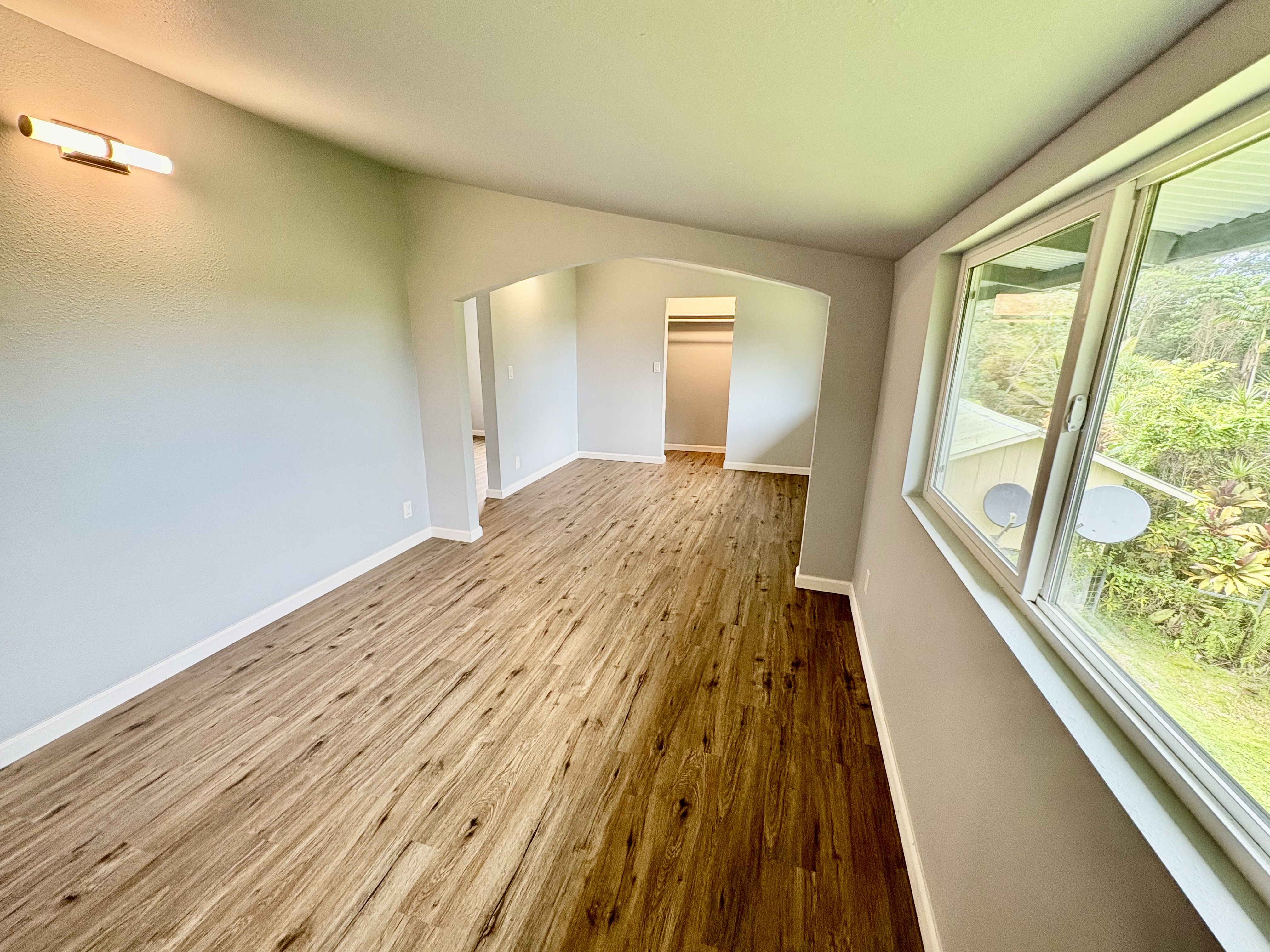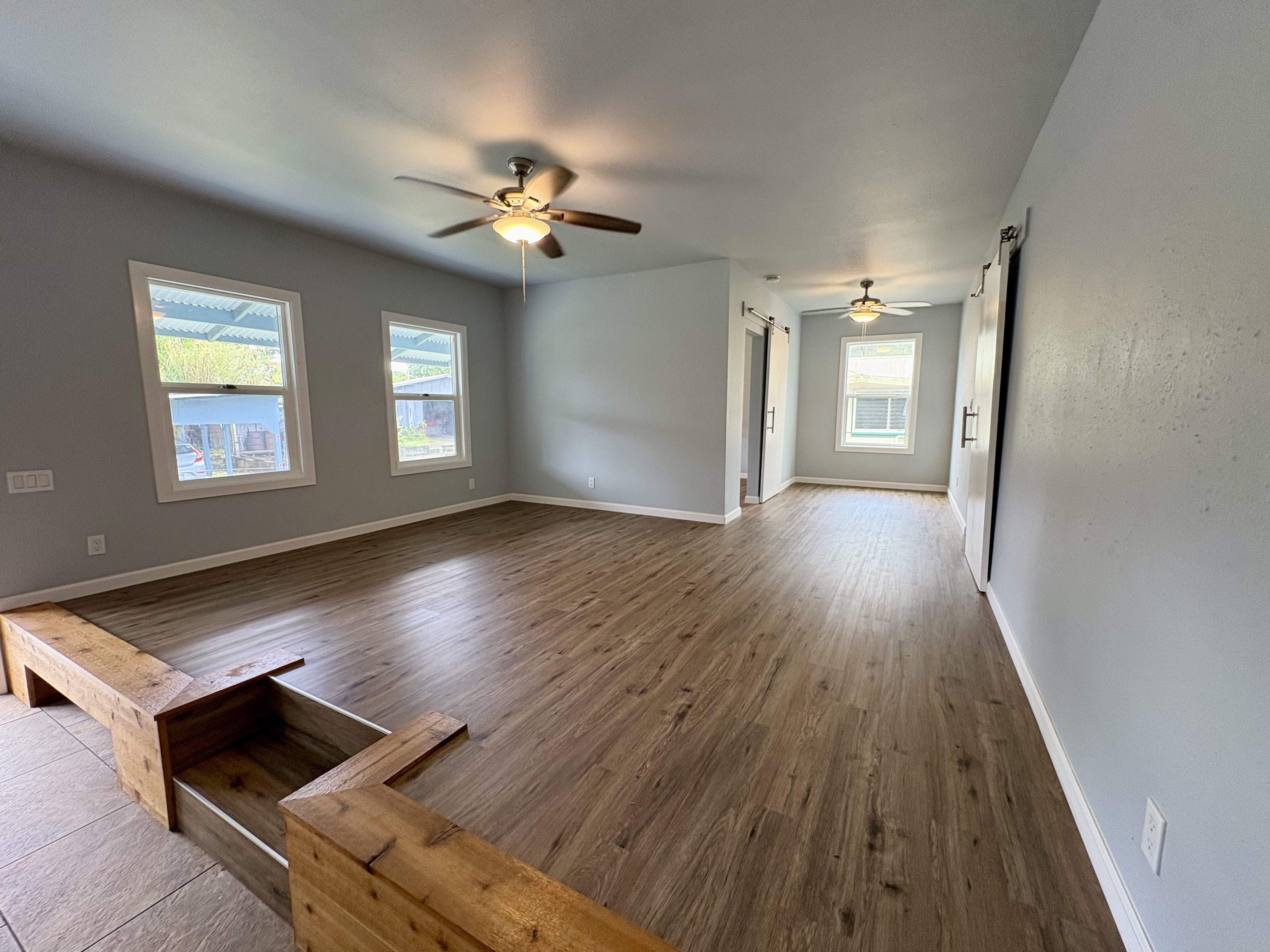 Sale includes TMKS 3-1-5-12-34 and 3-1-5-12-62. Unique opportunity to own two parcels in the heart of Pahoa Town. This renovated plantation-style 2-bedroom, 1-bath home sits on a 12,915 sq ft lot surrounded by lush tropical landscaping and a peaceful forest backdrop, with an additional TMK located across the road that includes a covered parking structure. The home has been extensively upgraded with a new roof and rafters, new interior and exterior paint, updated plumbing and electrical, storm windows and screens, and security screen doors. Interior features include mosaic stone tile flooring, luxury laminate flooring, tiled bathroom showers, and an updated kitchen with new appliances, cabinets, and countertops. A movable granite-top island adds flexibility to the dining space. The property features mature tropical landscaping including anthuriums, yellow ohia trees, lychee, avocado, citrus, tree ferns and liliko'i. The spacious living area offers abundant natural light and refreshing island breezes, while the primary bedroom enjoys peaceful forest views through newly installed windows. A major benefit is that the property is serviced by county water. The second TMK across the road provides a two-car covered parking area with a concrete base, offering additional flexibility for parking, storage, or future use. Conveniently located within walking distance to Pahoa town, shops, dining, and local amenities. Sale includes two TMKs, providing additional space and value with this unique property.
