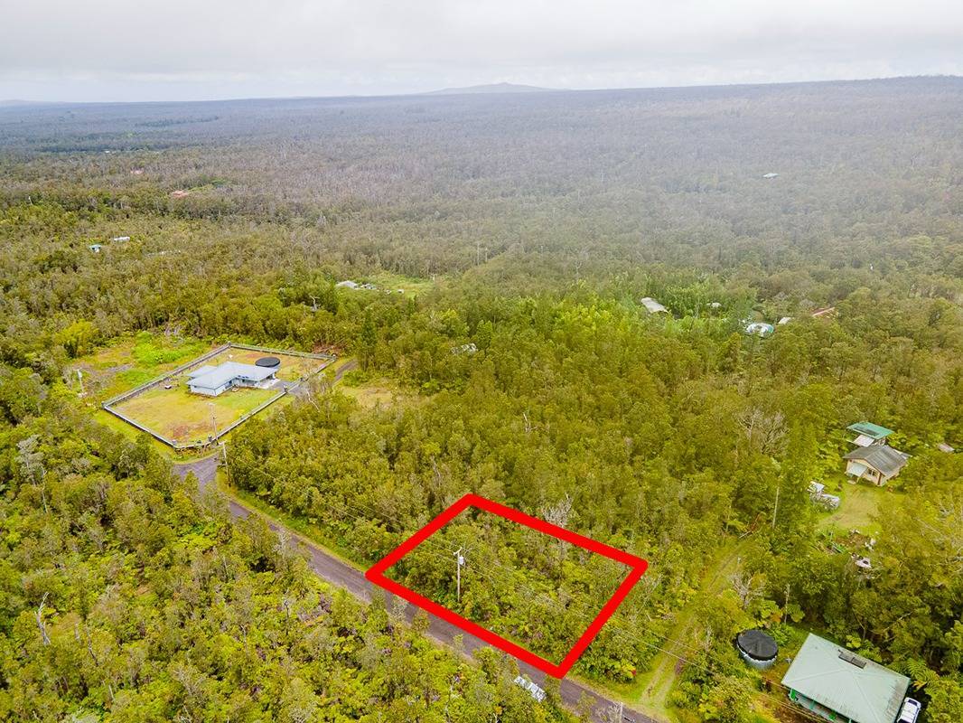 Build your dream home on this front lot in Royal Hawaiian Estates that has already been staked. You can also buy the two adjacent flag lots to create a larger lot or build three homes on the three lots for a little housing compound (TMK 3-1-1-56-109, a 14,072 sq ft flag lot for $50,000; and TMK 3-1-1-56-110, a 12,529 sq ft front lot for $50,000). The possibilities are only limited by your imagination! Enjoy cooler climate, paved roads, access to overhead power, no CC&R's. Listen to birdsong as you take walks in the quiet neighborhood or explore numerous trails at nearby Volcano National Park. Volcano Village is a short drive away for restaurants, general stores, and gas. Go bowling or take in a movie at Kilauea Military Camp, attend special programs at Volcano National Park, develop your artistic side by taking classes at the Volcano Art Center, play a round of golf at Volcano Golf & Country Club, or go wine tasting at Volcano Winery. Punalu'u Beach is a 40-minute drive away and offers a beautiful expanse of high-quality black sand, along with picnic tables and amenities for a relaxing day. Hilo is a 50-minute drive away should you miss the hustle and bustle.