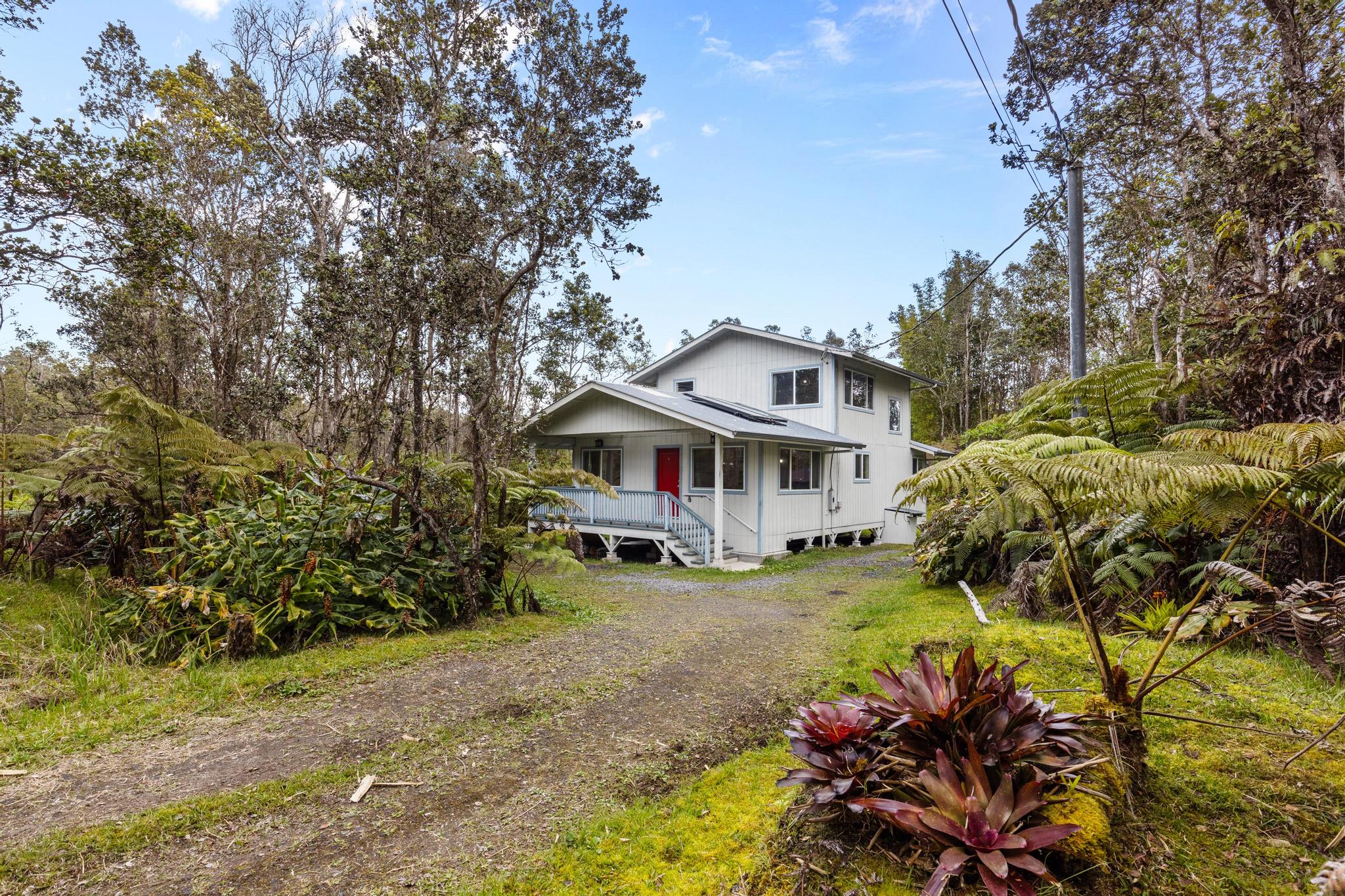 Unlike it's new neighbors with flatten lots and cookie cutter new build homes this property brings you back to what Volcano is all about, unique homes, privacy, greenery, solitude and serenity. 2 living/sitting rooms, 2 bedrooms, and 2 full baths are split between the two floors which offers you room to enjoy this home on your own or invite some guests for a long weekend, the choice is yours.